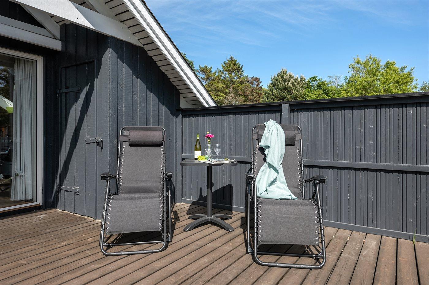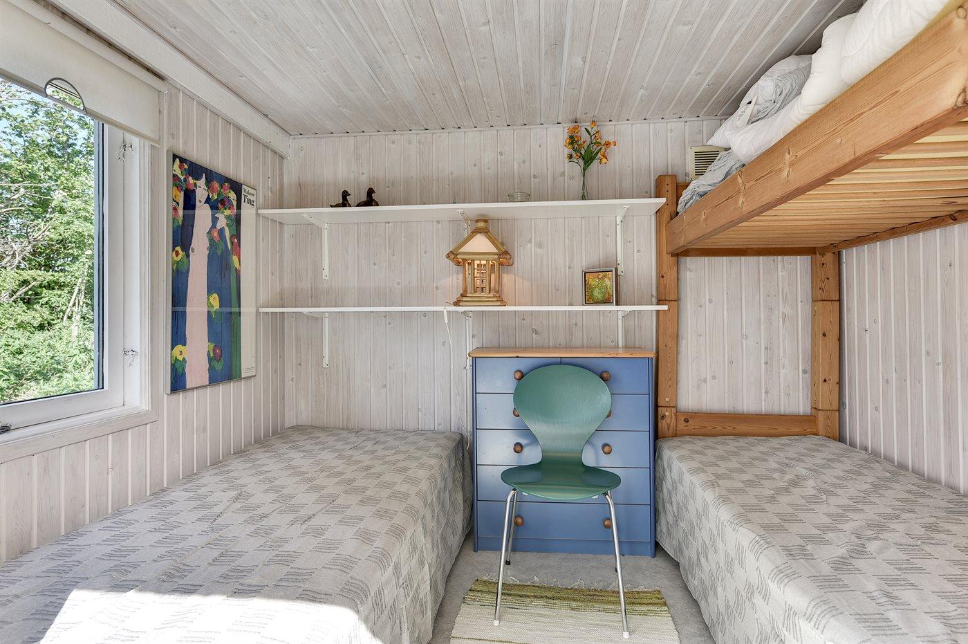 Pænt og velholdt sommerhus i træ, bygget i 1980 og renoveret i 2011, beliggende 700 m. fra vandet på en dejlig velanlagt havegrund med havkig fra både hus og grund. Til huset hører en solrig, delvist overdækket og afskærmet terrasse med havemøbler, hvorfra der er en skøn udsigt. Indvendigt fremtræder huset lyst og venligt med lofter til kip og en hyggelig indretning. Det åbne køkken er bl.a. udstyret med opvaskemaskine, varmluftovn, komfur med keramiske kogeplader samt fryser. I opholdsstuen findes der brændeovn, TV, DVD-afspiller, PlayStation2 spillekonsol samt radio. Sovepladserne fordeler sig på 1 værelse med dobbeltseng og 1 værelse med 2 enkeltsenge i huset samt 2 sovepladser i annekset i henholdsvis en enkeltseng eller i en køjeseng. Husets badeværelse har bruseniche. Der er installeret energibesparende varmepumpe i huset og gulvbelægningen er af både træ, klinker og linoleum. Til børnene findes der gynge på grunden. Et skønt sommerhus beliggende i et naturskønt område tæt på badestrand og med gode fiskemuligheder i nærheden.