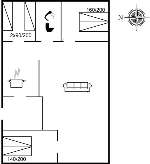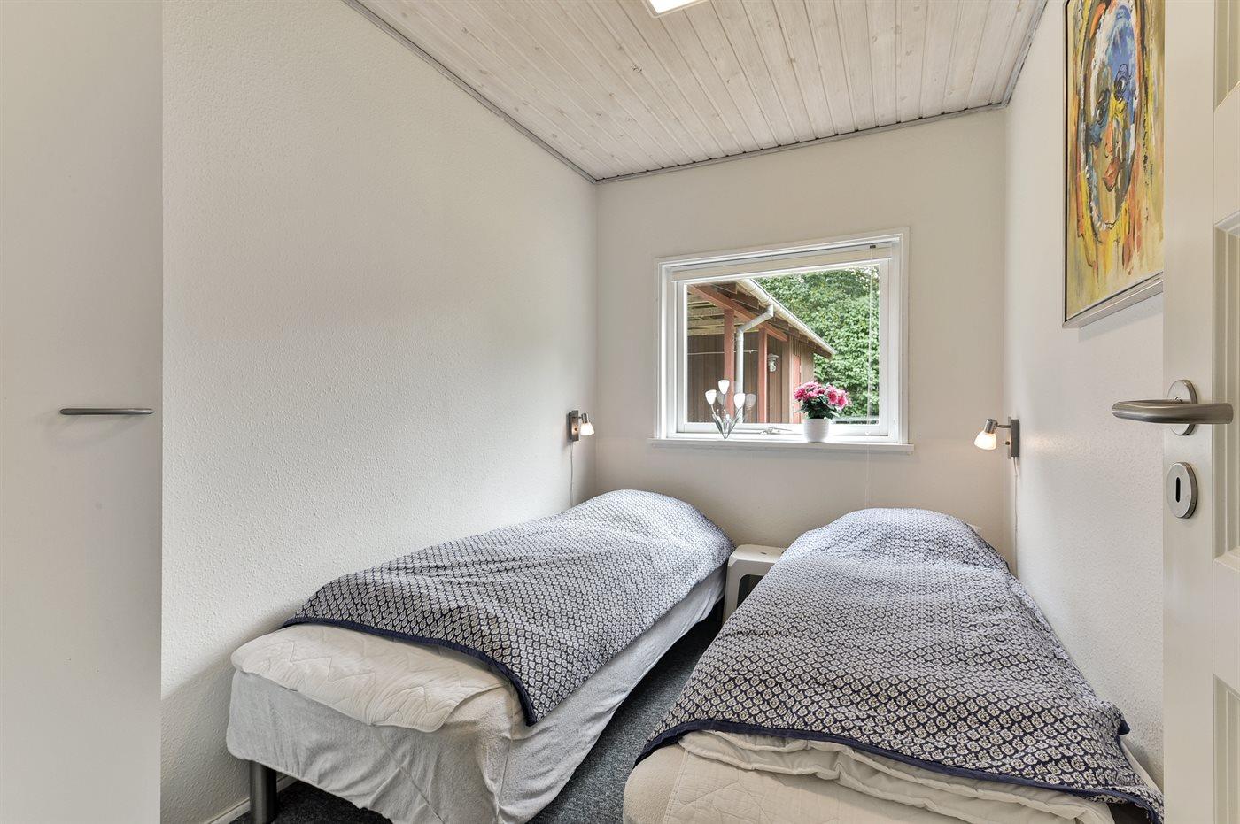 Der er i alt 3 soveværelser. Sovepladserne fordeler sig på: 4 sovepladser i dobbeltsenge. 2 sovepladser i enkeltsenge. Derudover er der 1 stk. barneseng.