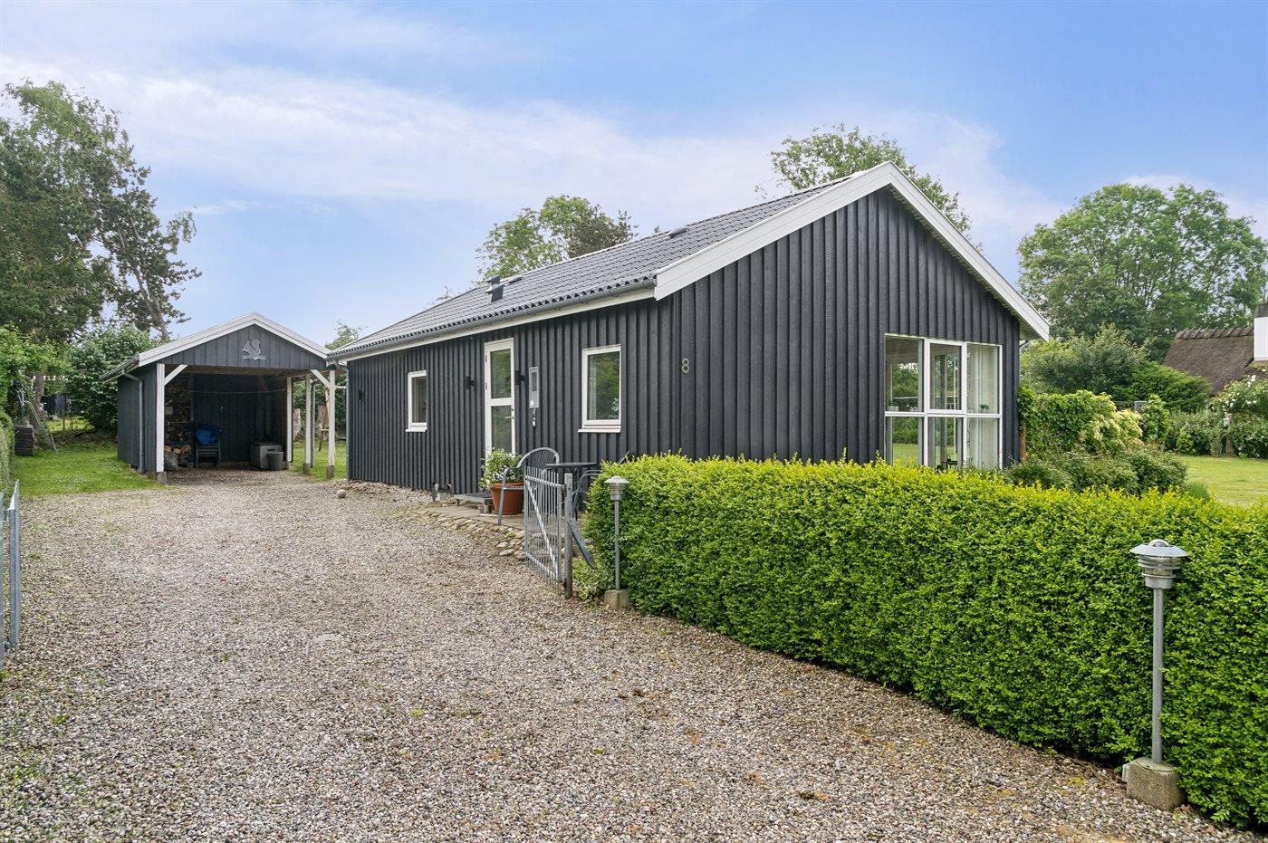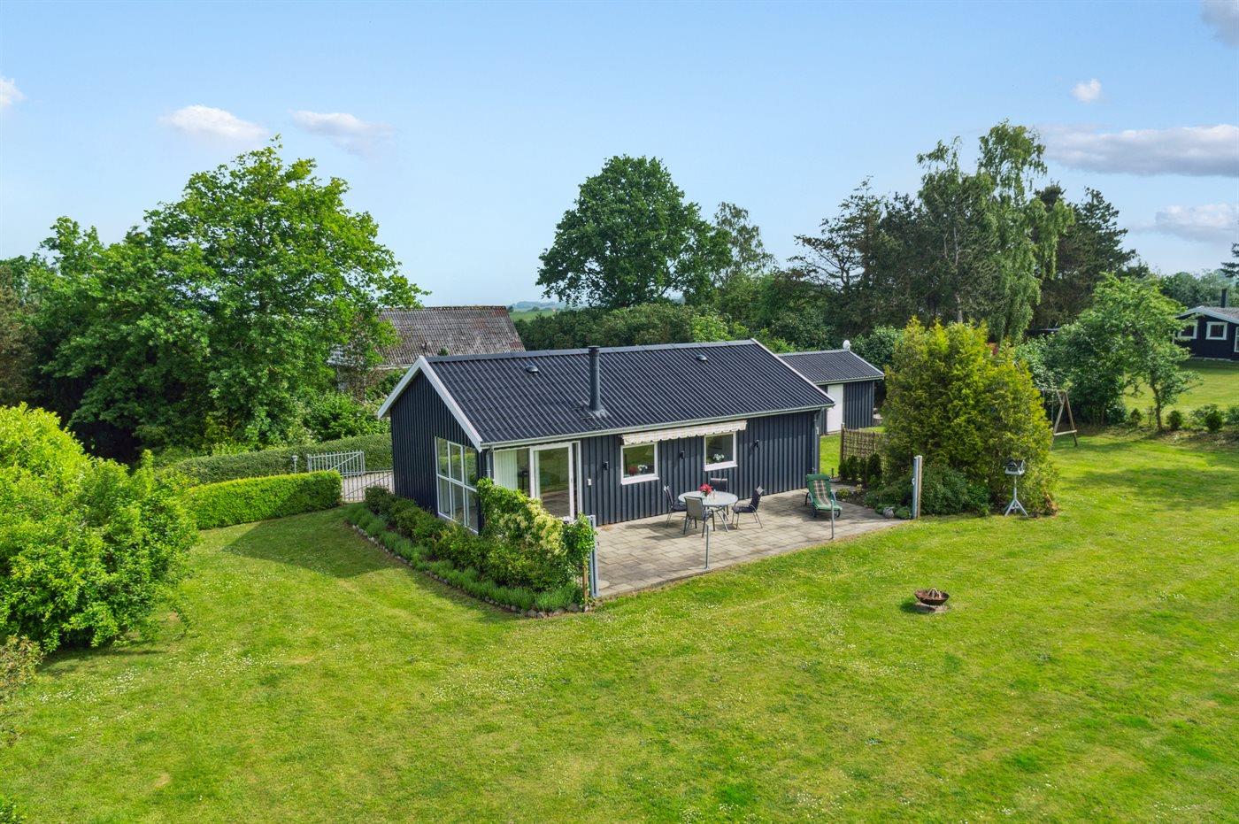 På en grund med god plads til boldspil og leg finder I dette sommerhus.