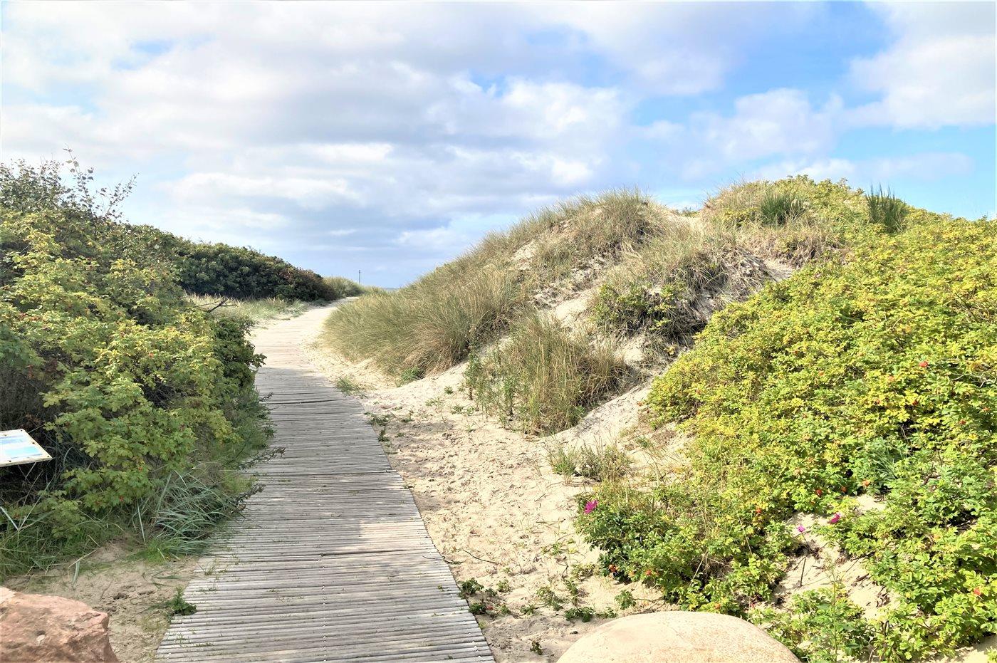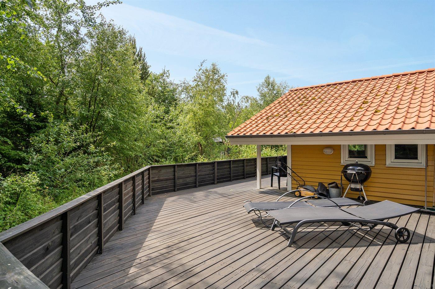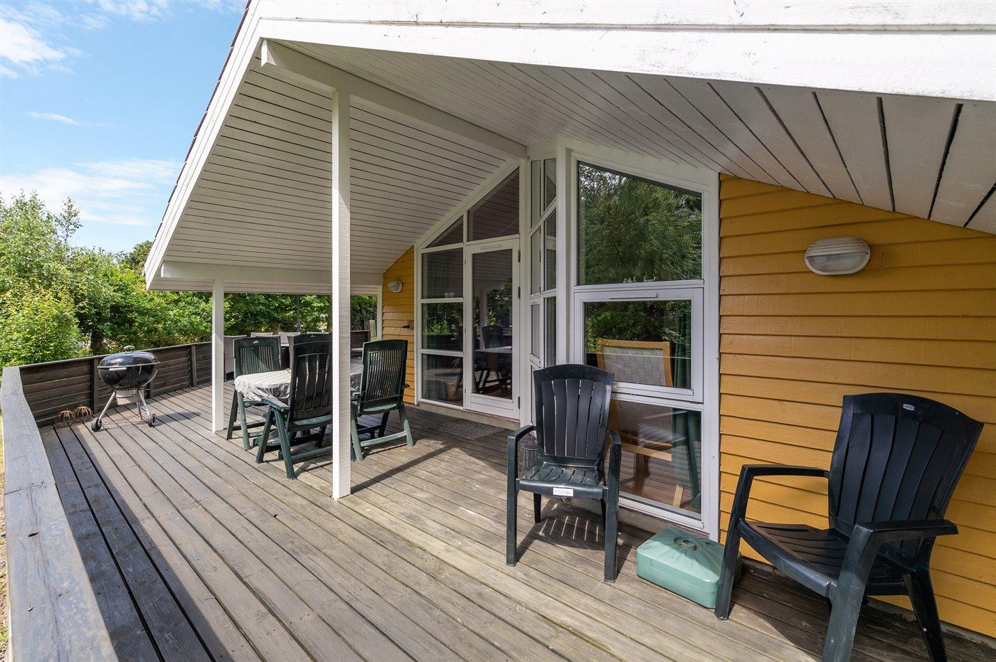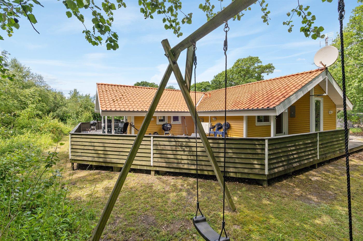 Ferieboligen er beliggende på en 1200 m² stor havegrund. Der er 230 m til havet. Nærmeste forretning er beliggende i en afstand af 3500 m. Der er en golfbane i en afstand af 6200 m. Til ferieboligen hører åbent og overdækket terrasseareal. Til ferieboligen hører åbent terrasseareal. Gynge. Grill til rådighed. Udendørs vask. Udendørs bord. Parkering ved ferieboligen.