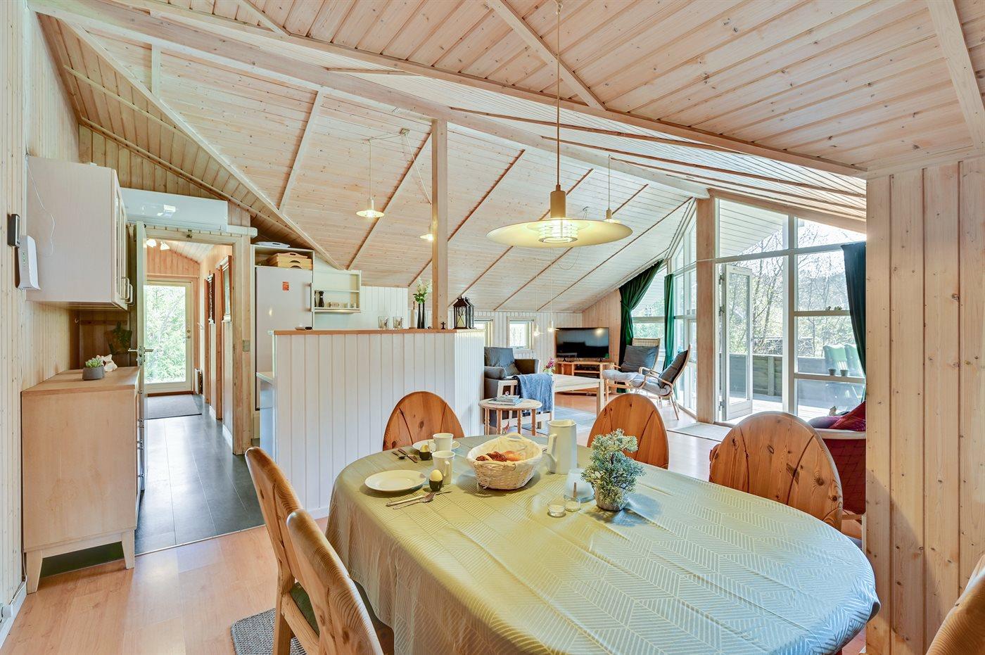 Sommerhuset egner sig til 10 personer samt 1 barn op til 3 år. Ferieboligen er på 112 m² og er bygget i 1994. I 2019 gennemgik ferieboligen en delvis renovering. Det er ikke tilladt at medbringe husdyr. Ferieboligen er udstyret med energibesparende luft til luft varmepumpe. Ferieboligen har vaskemaskine. Tørretumbler. Frysekapacitet på 80 liter. Der er desuden brændeovn. Til de små er der 1 stk. barnestol.