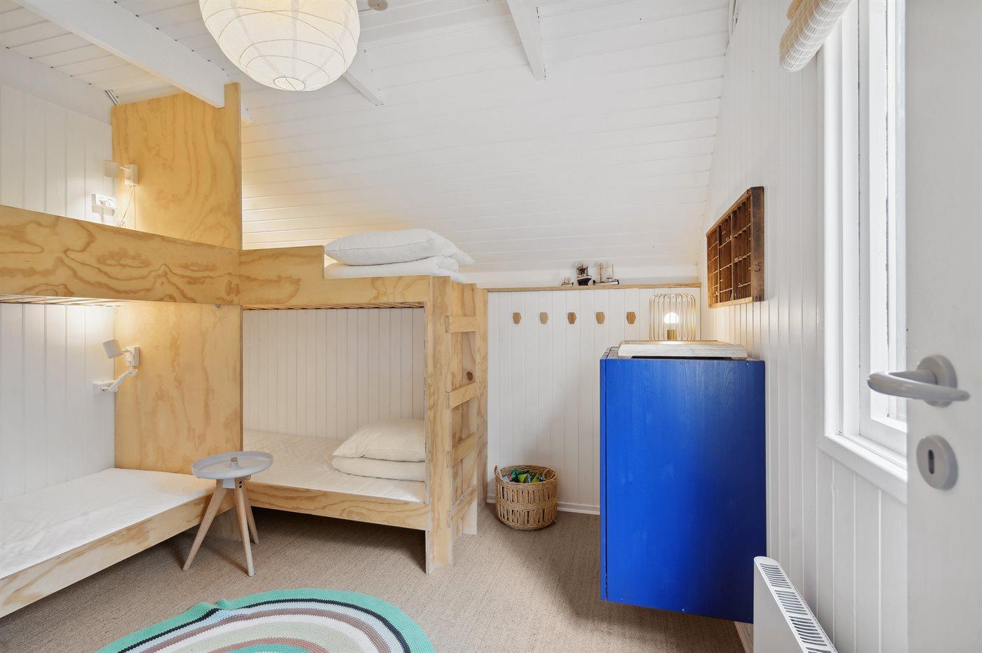 Der er i alt 3 soveværelser. Sovepladserne fordeler sig på: 4 sovepladser i dobbeltsenge. 4 sovepladser i køjesenge.