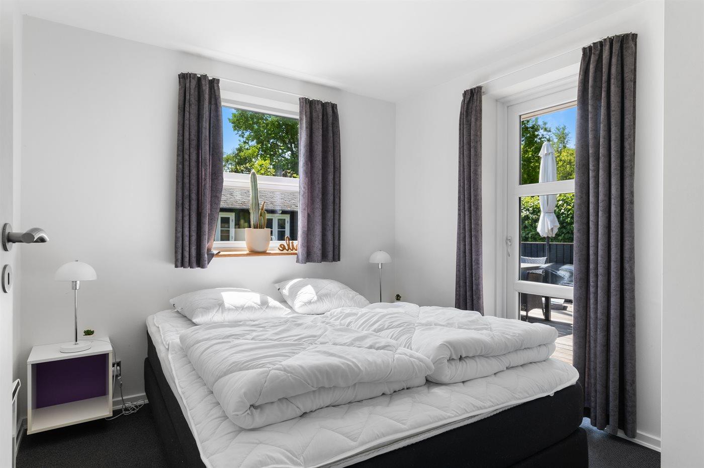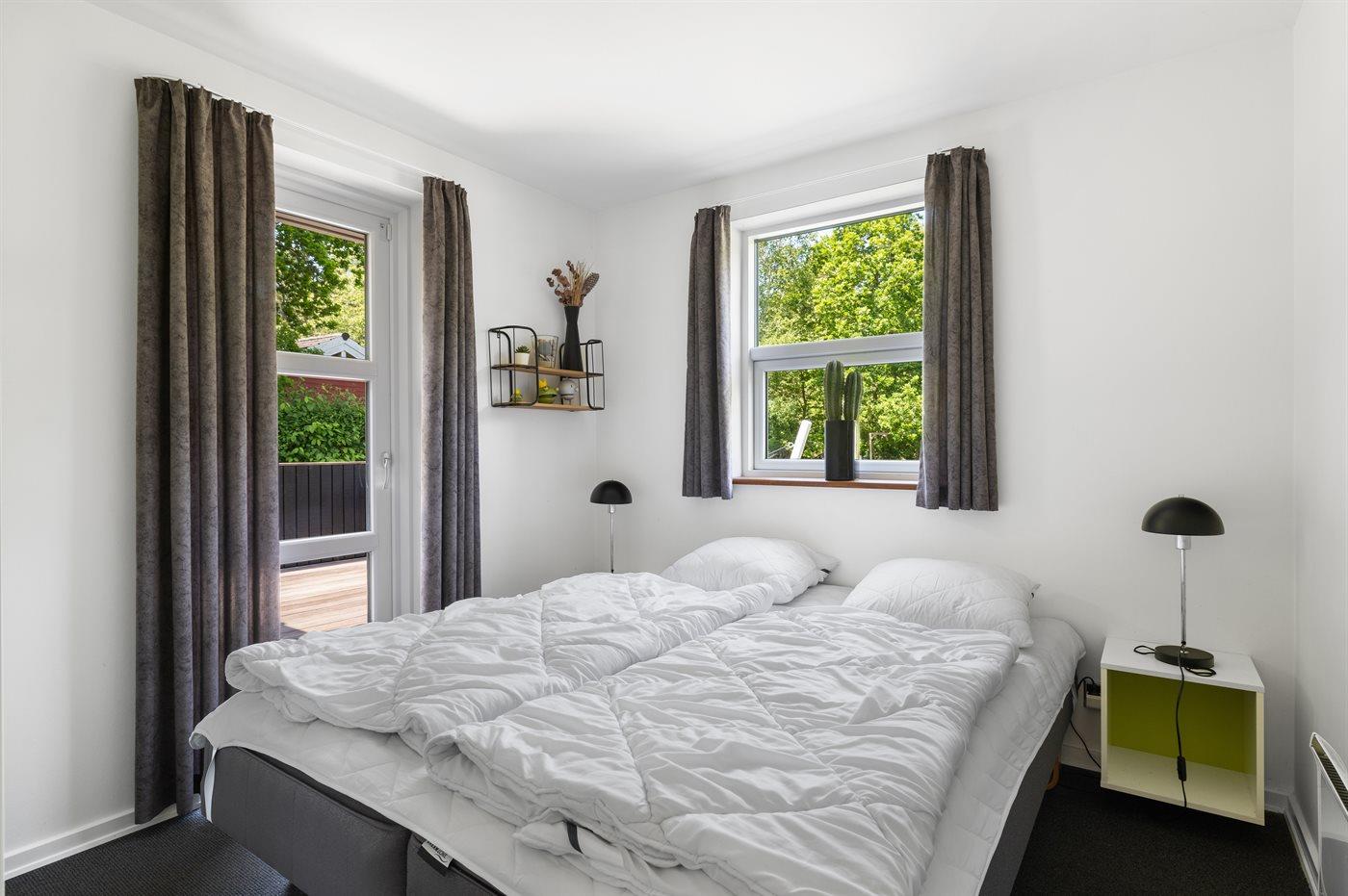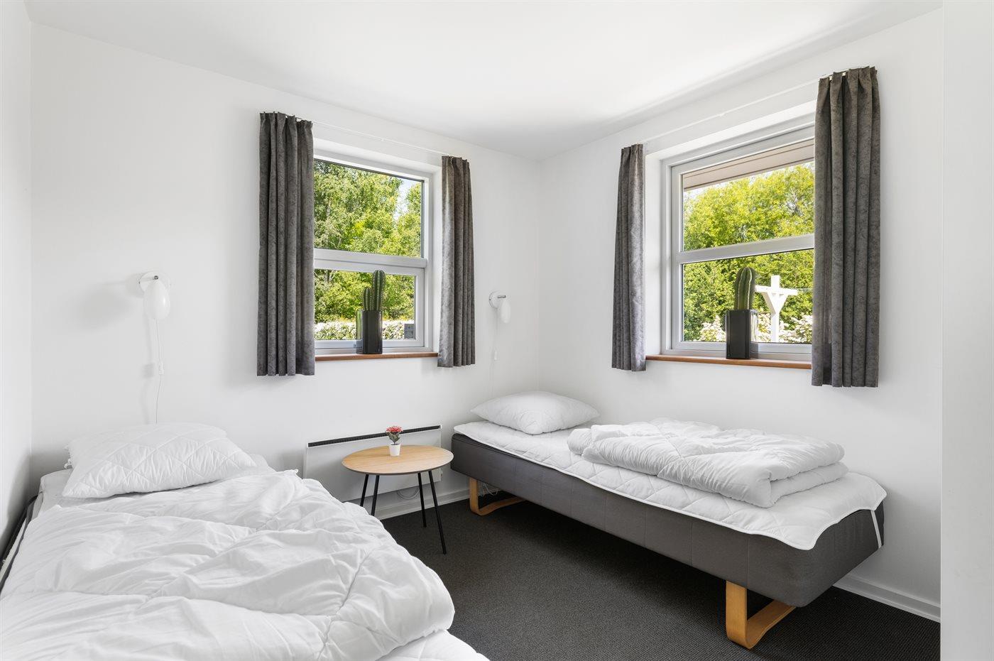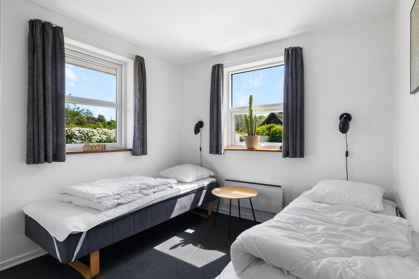 Der er i alt 4 soveværelser. Sovepladserne fordeler sig på: 4 sovepladser i dobbeltsenge. 4 sovepladser i enkeltsenge. Derudover er der 1 stk. barneseng.