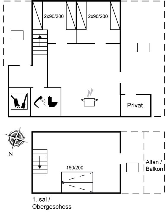 Bemærk at der er enkeltsenge i de to soveværelser, men de kan stilles sammen, så man får dobbeltseng. I stuen på 1. salen er der en kvalitets-sovesofaen, som kan slås ud som en rigtig seng.