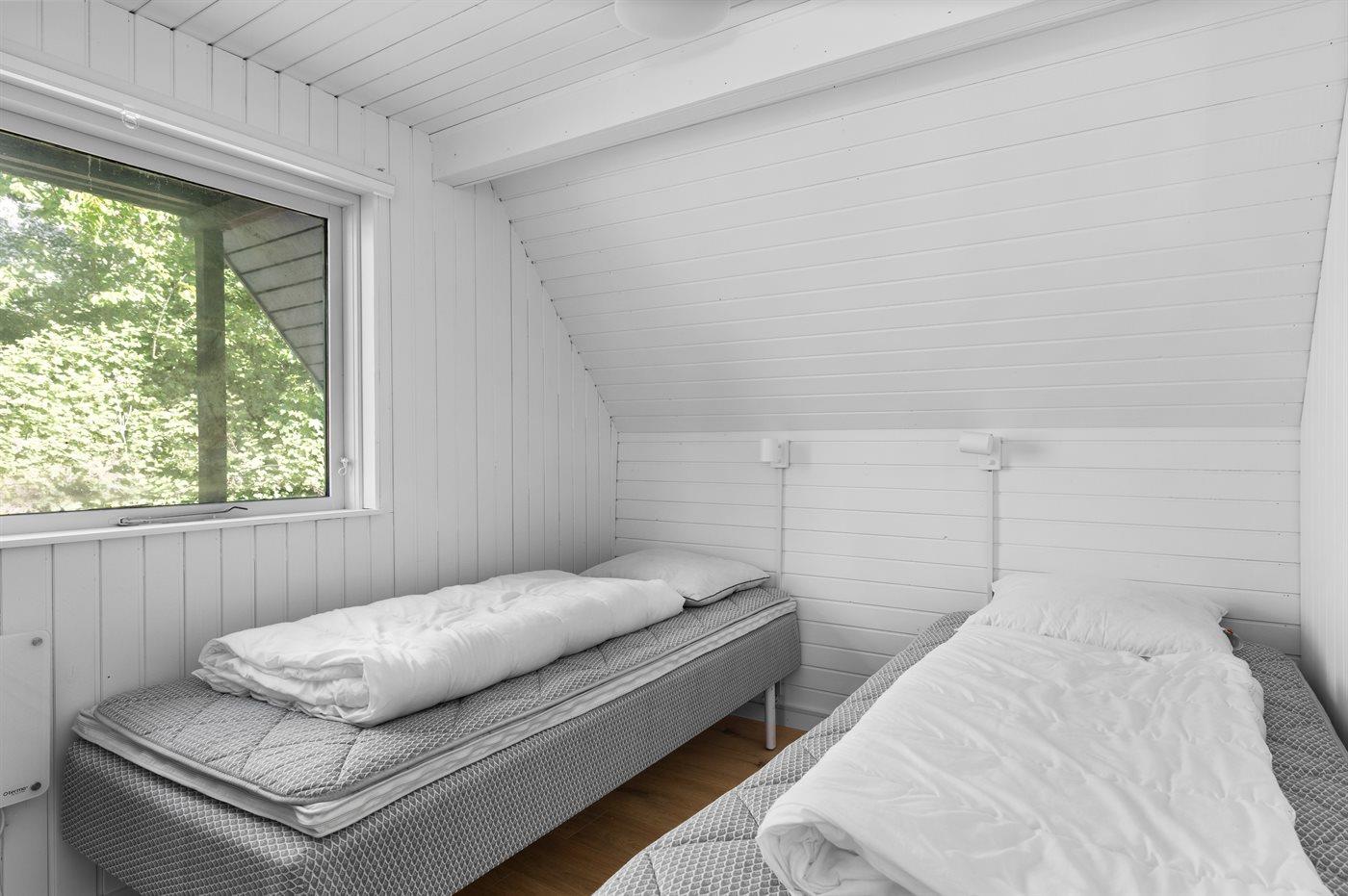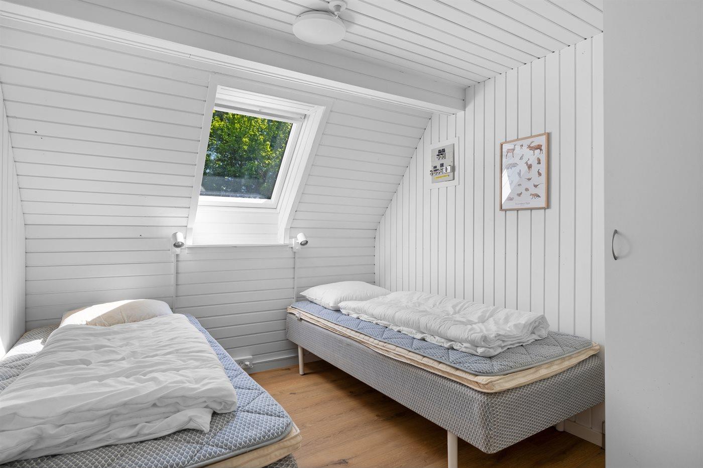 Der er i alt 2 soveværelser. Sovepladserne fordeler sig på: 4 sovepladser i enkeltsenge. 2 sovepladser i sovesofa (dobbelt). 2 af disse sovepladser befinder sig i stuen. Derudover er der 1 stk. barneseng.