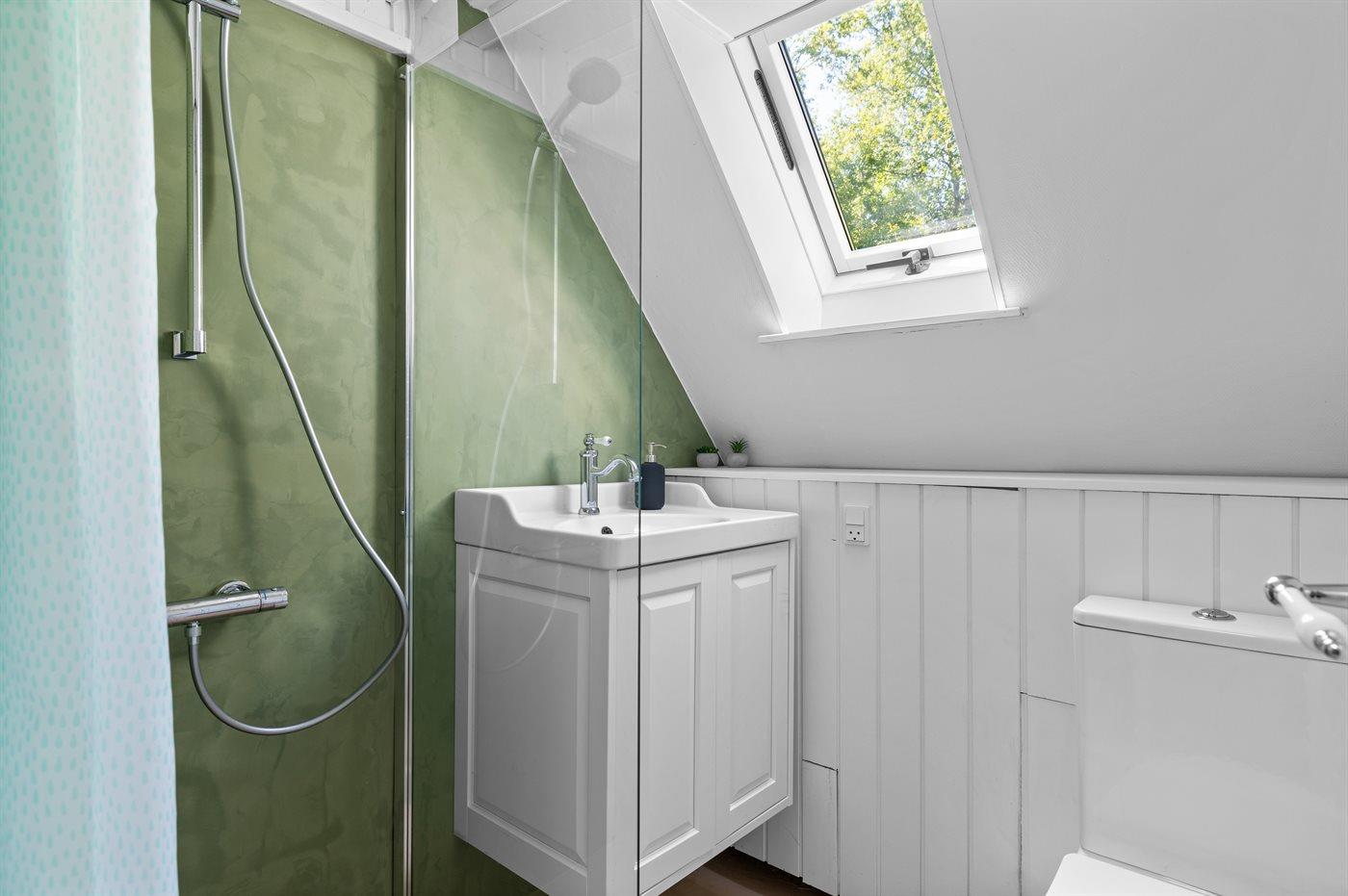 Der er 1 badeværelse med bruseniche og 1 toilet.