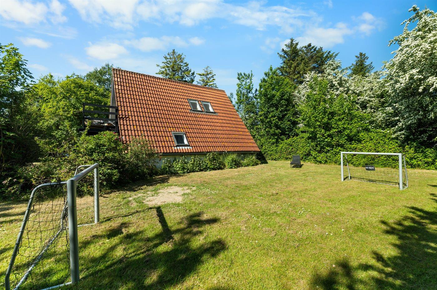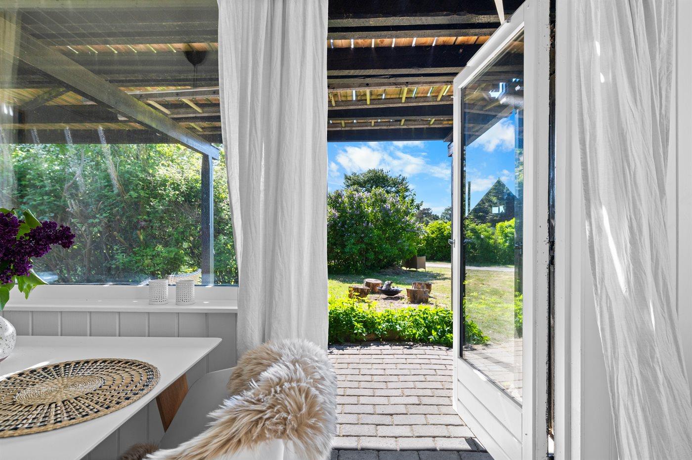 Ferieboligen er beliggende på en 1208 m² stor havegrund. Der er 1000 m til havet. Nærmeste forretning er beliggende i en afstand af 2500 m. Til ferieboligen hører åbent terrasseareal. Desuden er der overdækket terrasse. Udgang til altan. Grill til rådighed. Parkering ved ferieboligen.