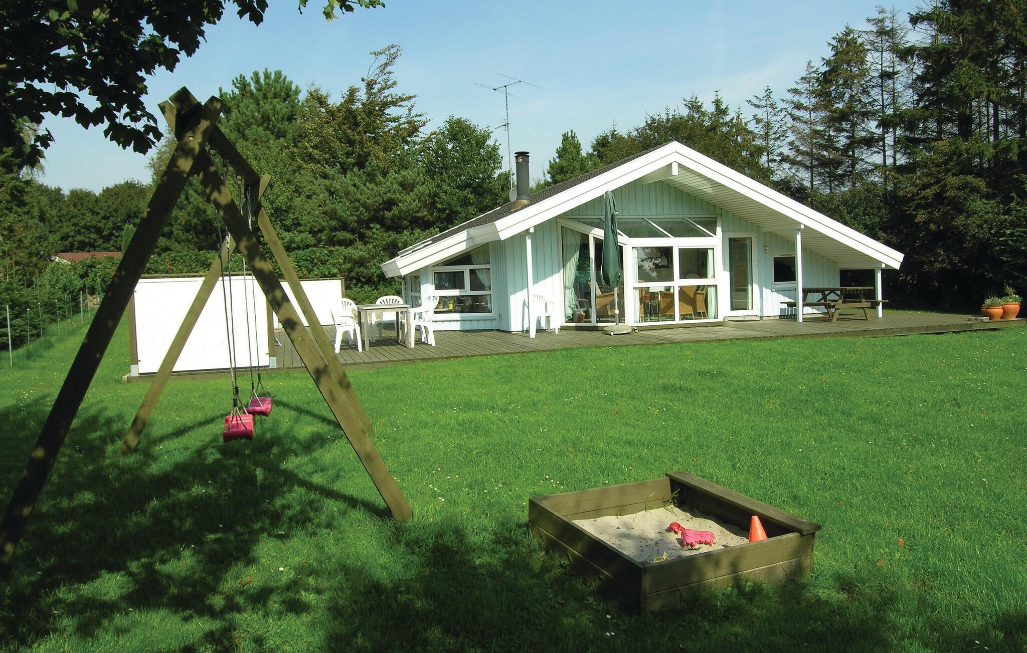 Charmerende træhus ved familievenlig strand