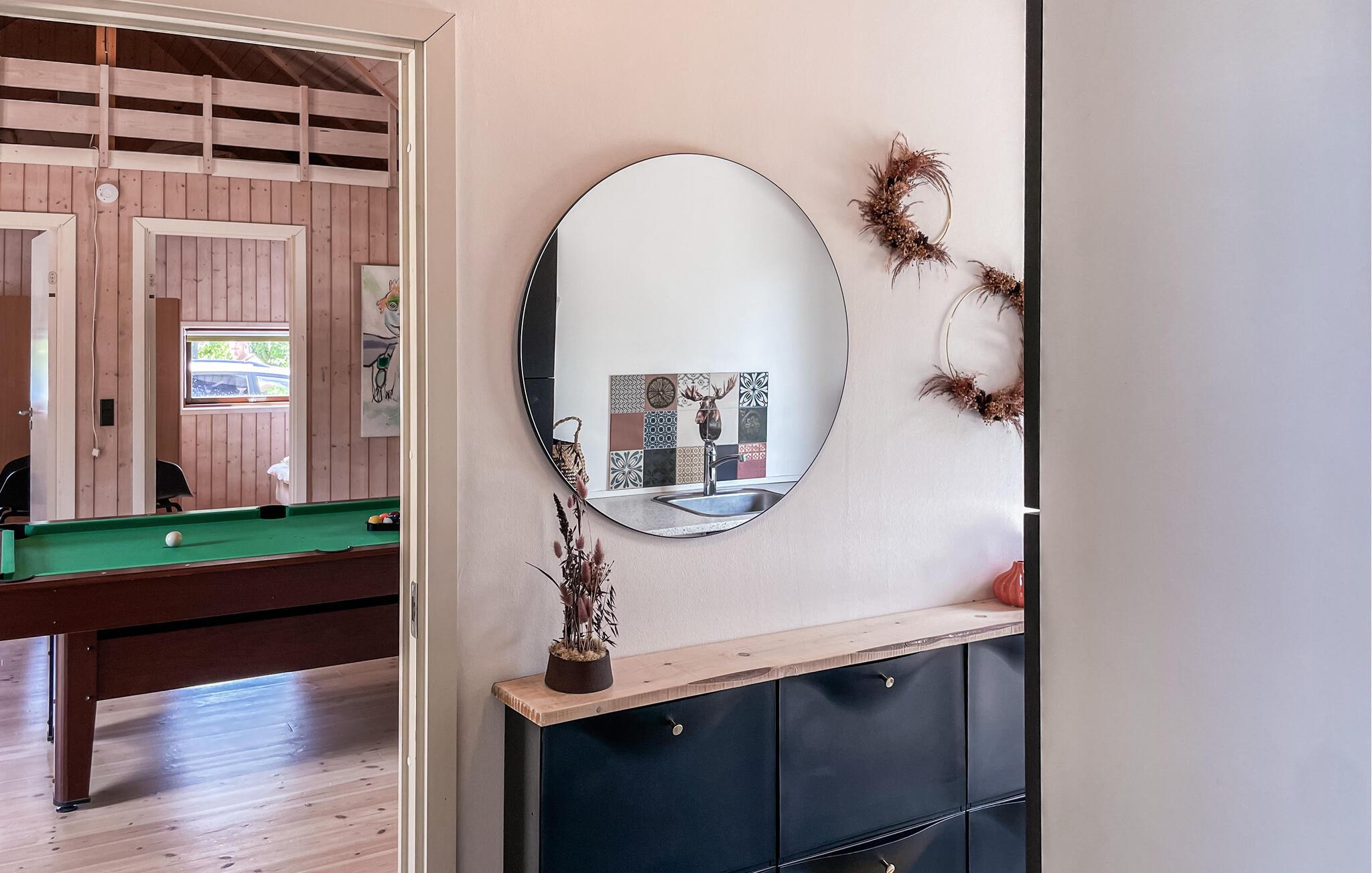 Dette dejlige feriehus af træ ligger ved Ristinge Strand, hvor der er sandklitter og en bred sandstrand, som gør den særlig børnevenlig. Huset er meget rummeligt og funktionelt indrettet med en kombineret opholds- og spisestue som har direkte adgang til husets terrasse. Desuden findes der et aktivitetsrum med poolbord og andre indendørs spil. Den store naturgrund indbyder også til udendørs aktiviteter, og efter en lang dag vil det store badeværelse med spabad og sauna helt sikkert være populært blandt både børn og voksne. I nærheden af feriehuset er der endvidere mulighed for at spille golf eller tage på fisketur. Det kan også anbefales at besøge Rudkøbing eller et af de mange utallige historiske monumenter, som findes på Langeland. På sydspidsen kan man i øvrigt opleve vilde heste, som afgræsser et større naturområde.