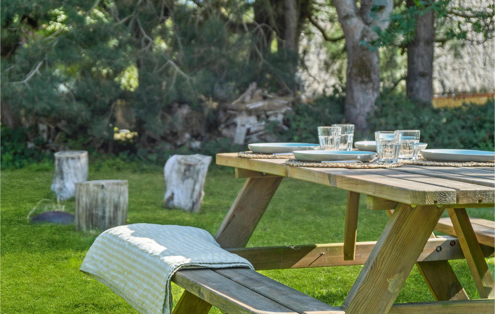 Glæd jer til skønne aftener med varme fra brændeovnen, brætspil og lækker mad i selskab med jeres yndlingsmennesker. Føl jer godt tilpas i denne bolig, og glem alle jeres daglige bekymringer. Den idylliske have med mange træer inviterer jer til at slå jer ned og slappe af. Nyd jeres måltider på den store træterrasse, mens I lægger planer for feriens aktiviteter og udflugter.