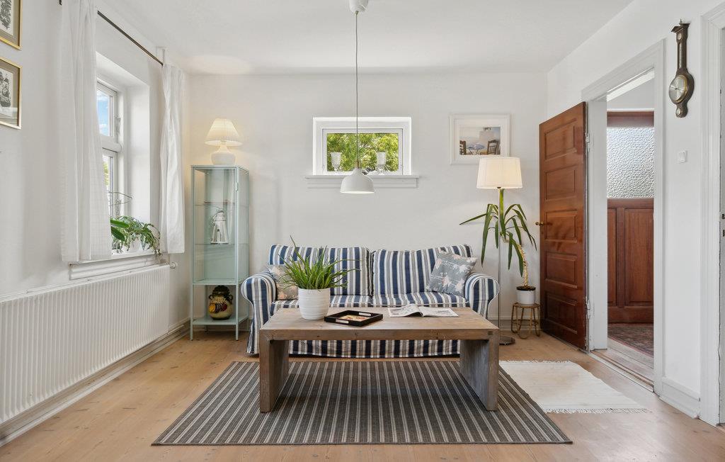 Lige ved den smukke sø i den sydlige del af Langeland ligger dette hjemlige feriehus i to etager. Der er kælet for detaljerne, og de lyse, smagfulde rum skaber de rette rammer til at sænke skuldrene og tanke ny energi. Her finder I alt, hvad I behøver for at føle jer godt tilpas. Begynd dagene med et brusebad på det lille badeværelse, hvor der er lidt lavt til loftet. På kølige aftener kan I tænde op i brændeovnen, sætte lidt god musik på og nyde en kop kaffe i sofaen. Også haven med flere skønne siddekroge, herunder en terrasse med loungemøbler, er et vidunderligt sted til at nyde roen og beliggenheden. Fra terrassen kan I beundre Nørreballe Sø, og I får sikkert også øje på de imponerende havørne.