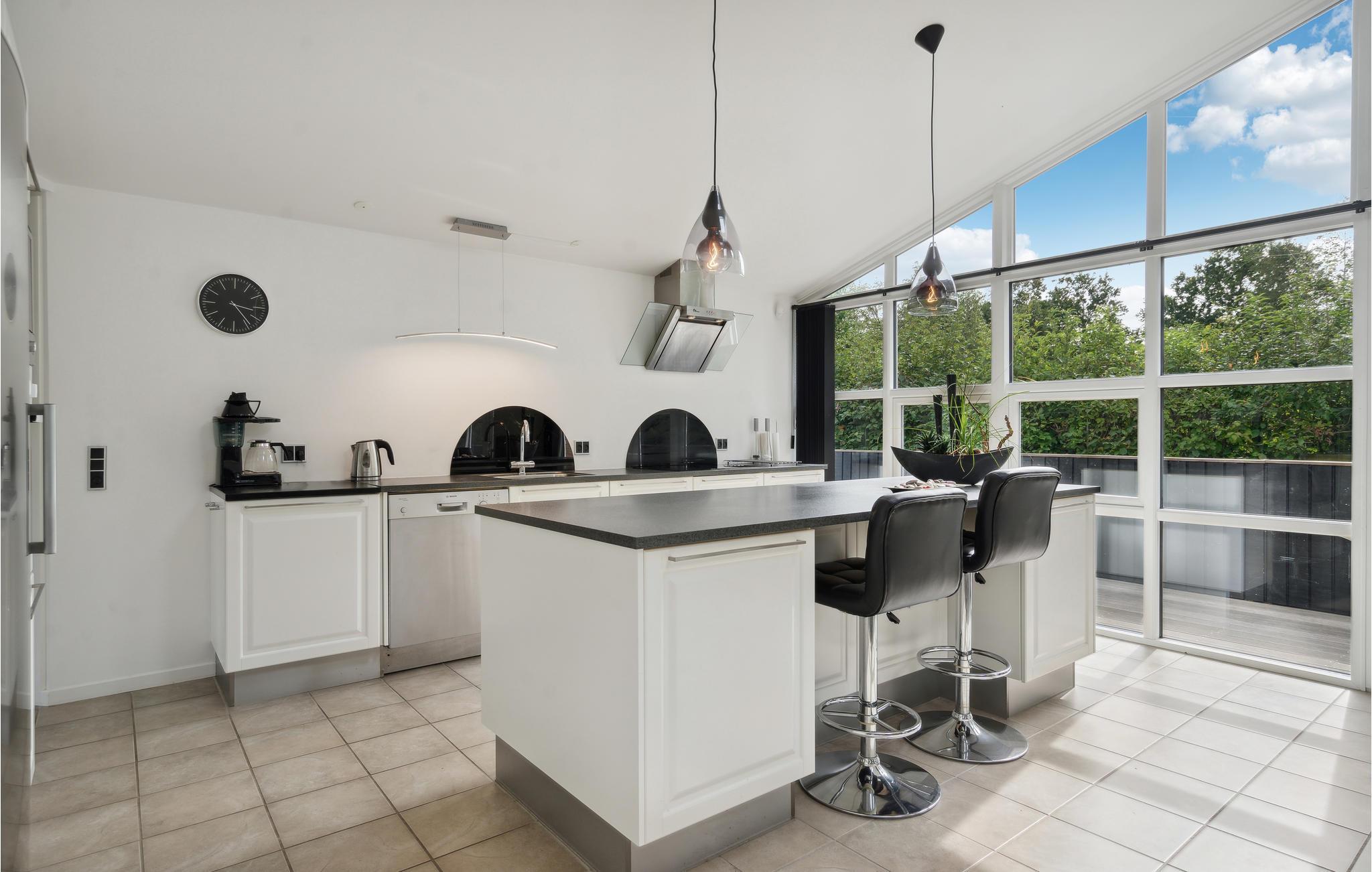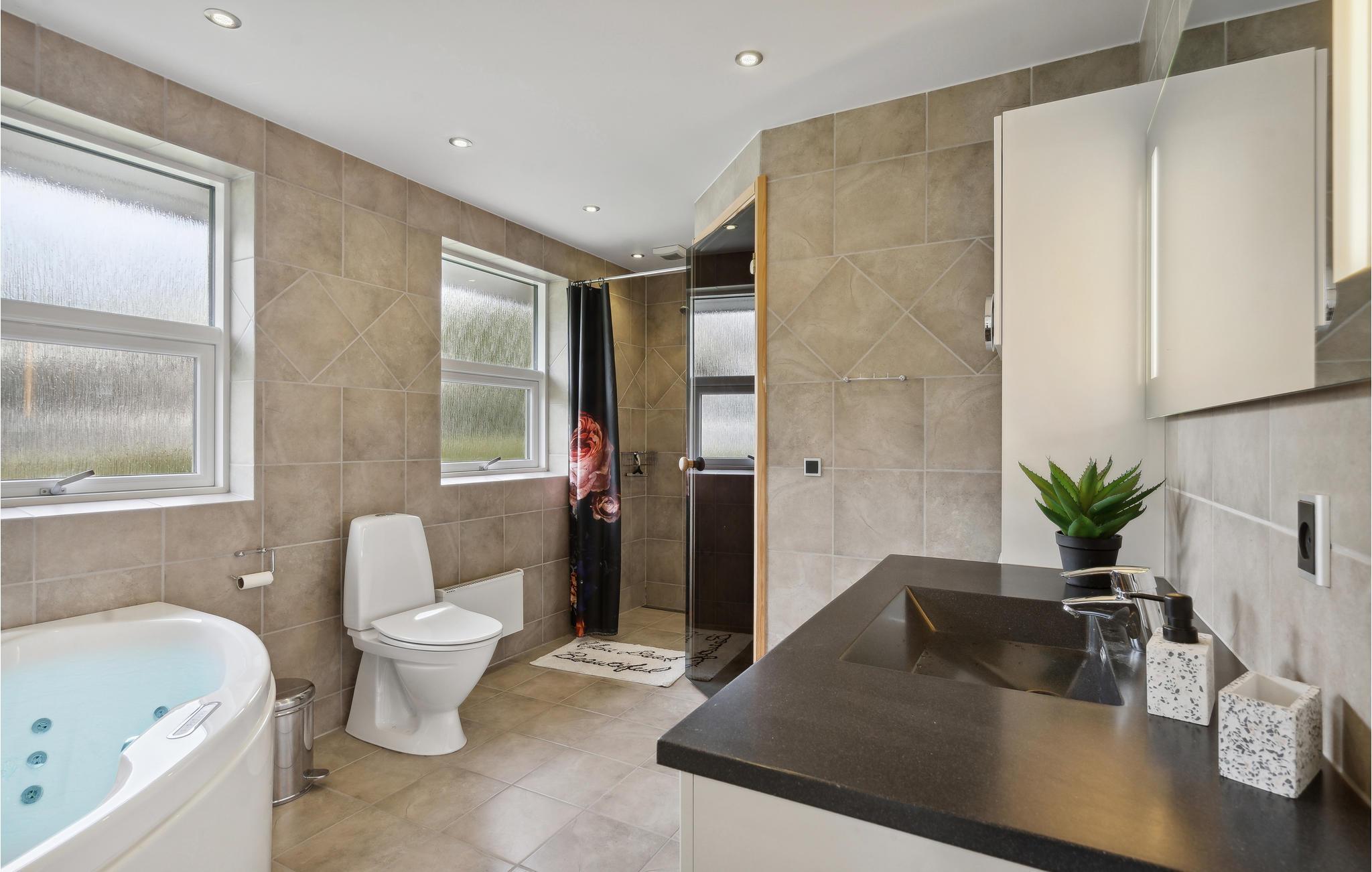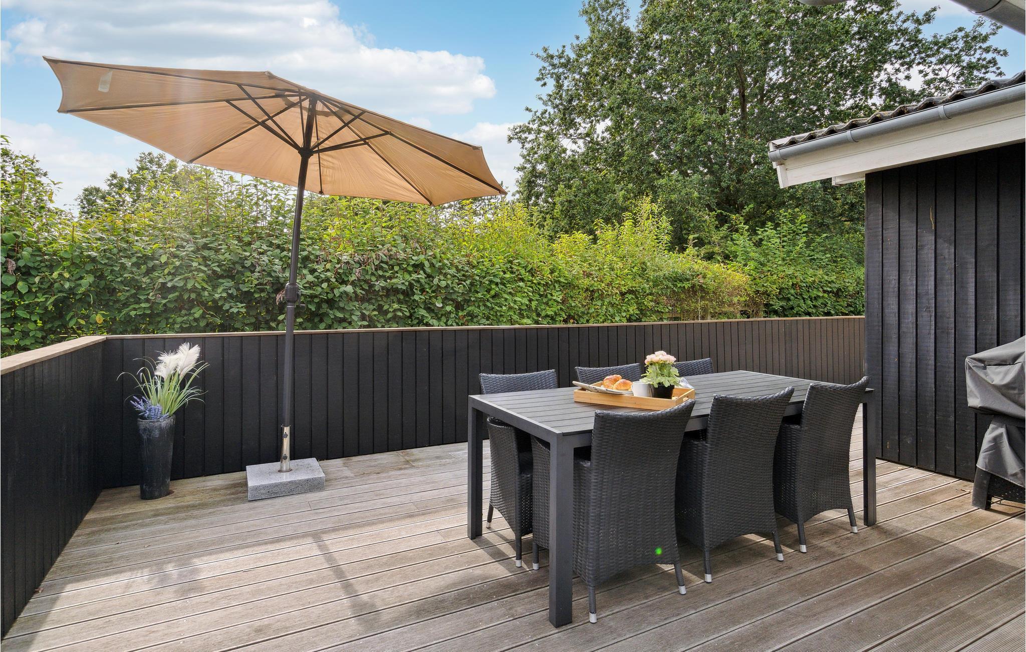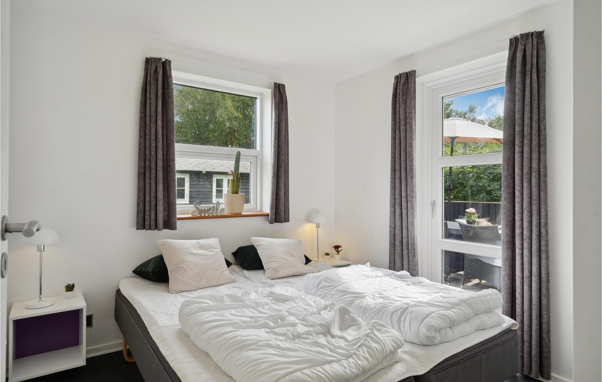Forkæl jer selv med en afslappende ferie på Langeland og tilbring en vellykket familieferie i dette lyse feriehus med en smart åben planløsning. Det rummelige opholdsrum overbeviser med sine store panorama- og ovenlysvinduer og kombinerer køkken, spisestue og opholdsstue i ét, så I altid kan deltage i andres samtaler. Hvorfor ikke dyste i brætspil ved spisebordet om aftenen og lægge planer for de næste par dage, mens ilden gnistrer i brændeovnen? Huset er veludstyret, så det er en fornøjelse at lave mad i det åbne køkken. Wellness er der også nok af. I kan se frem til en sauna og et boblebad integreret i badeværelset. I haven kan I nyde solen, og på græsplænen kan hele familien tumle. Når vejret er varmt, er det oplagt at flytte alle måltider ud på terrassen.