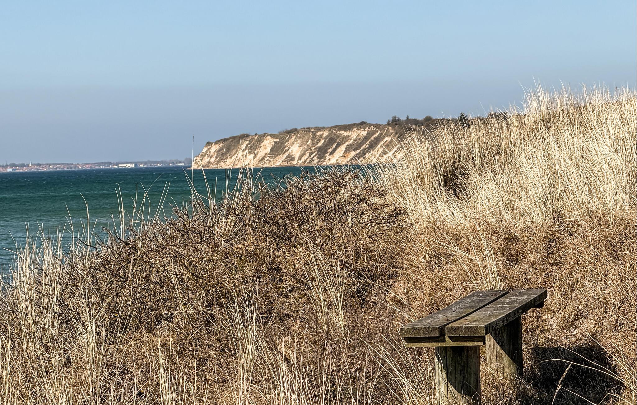 Gå også ud på altanen. Herfra har I en smuk udsigt hele vejen til havet. Begynd dagene med morgenmad på terrassen foran hoveddøren og lyt til vindens susen i træerne. Det rummelige naturområde byder på masser af plads til at lege, solbade eller holde picnic. Udnyt den rolige beliggenhed til at lægge hverdagen bag jer.