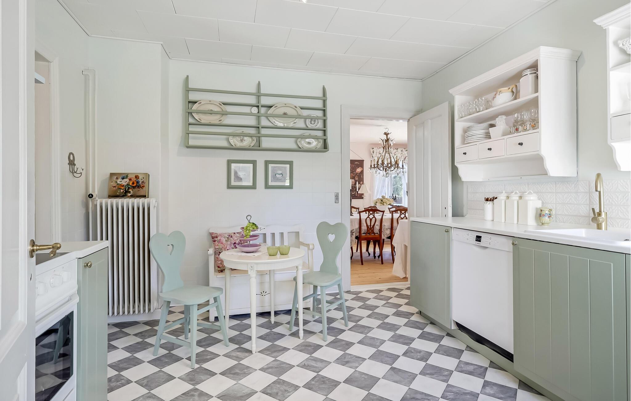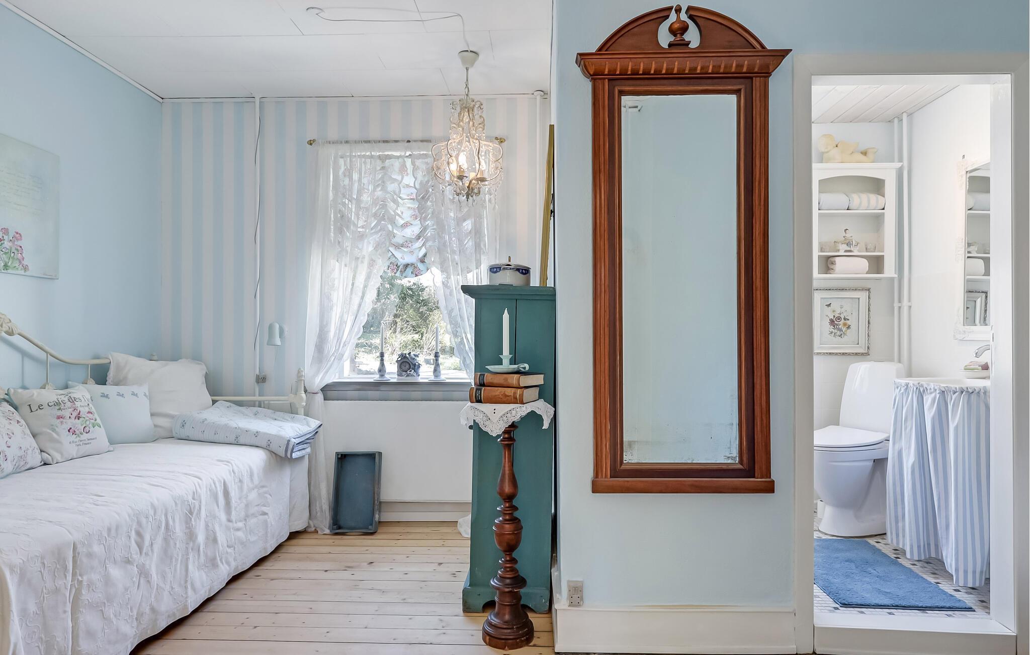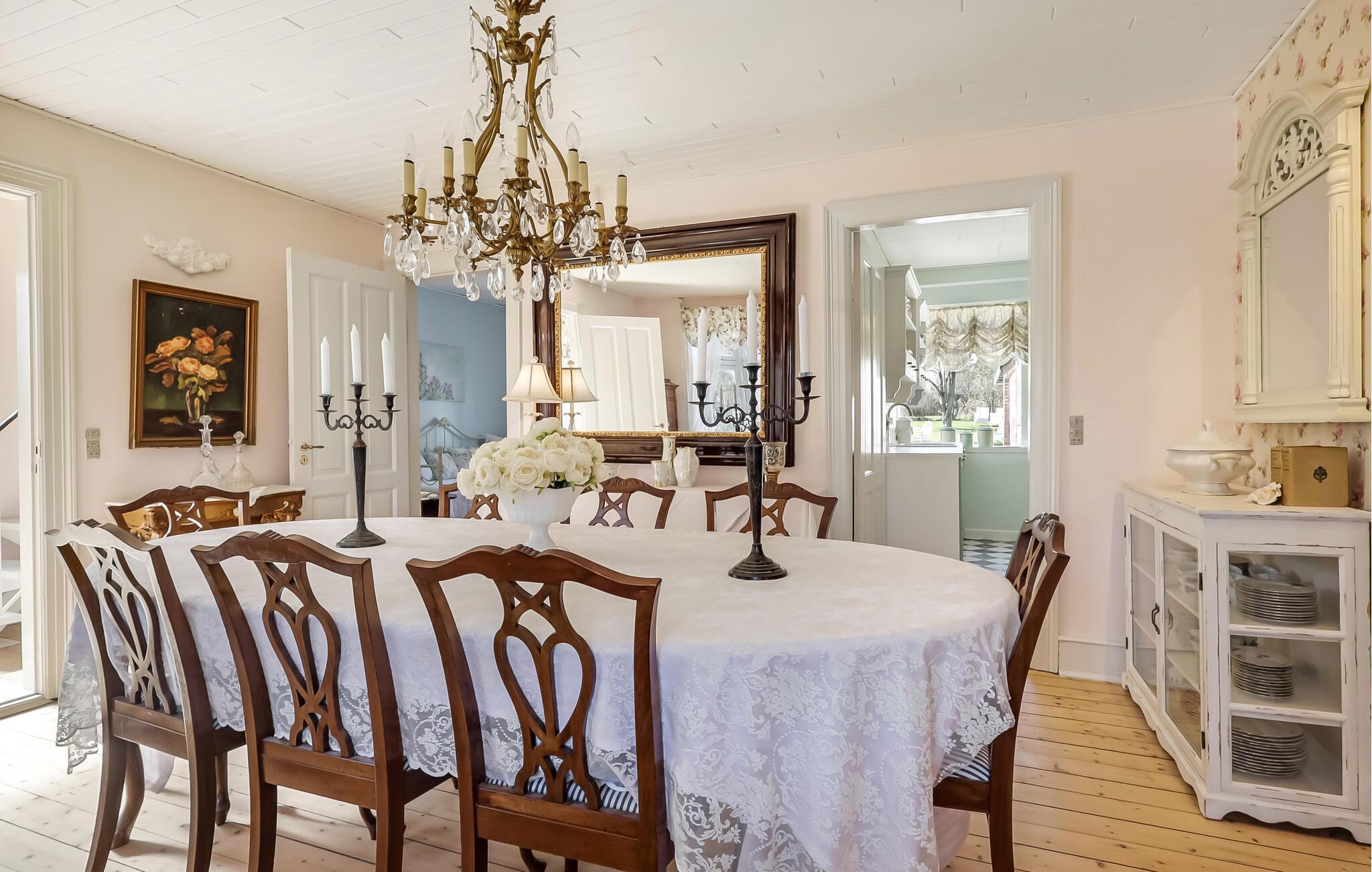 Oplev en helt særlig ferie i et historisk hjem, der kombinerer klassisk elegance med landlig hygge. Mange af rokoko-møblerne i dette romantisk indrettede feriehus stammer fra Broløkke Gods, hvilket giver interiøret en unik charme. Tag plads i stuen, nyd te med stil, eller slap af i stearinlysets skær. Den rummelige spiseplads under lysekronen er perfekt til festlige måltider med familien eller vennerne. Start dagen på en afslappet måde i det charmerende landkøkken.