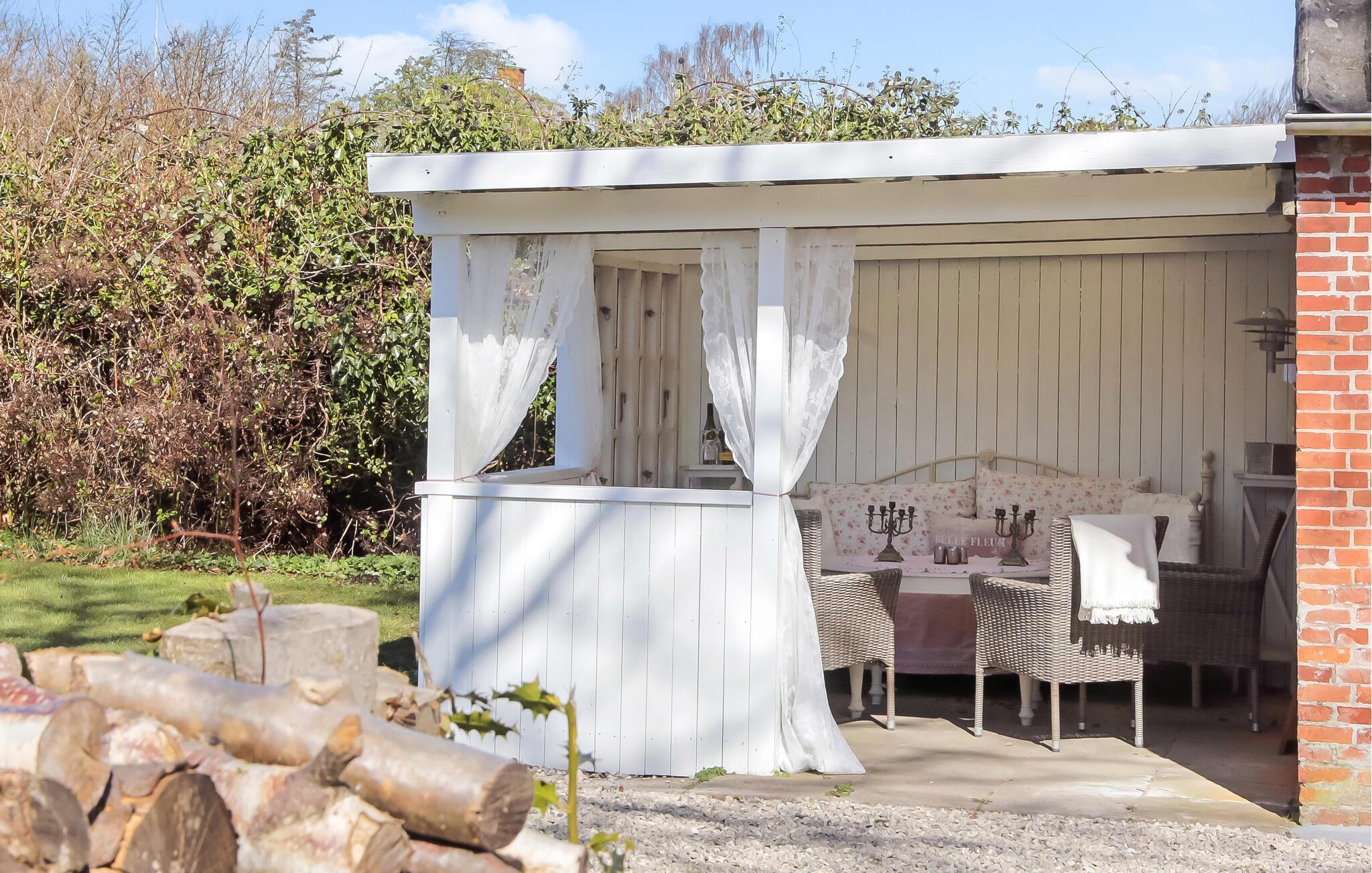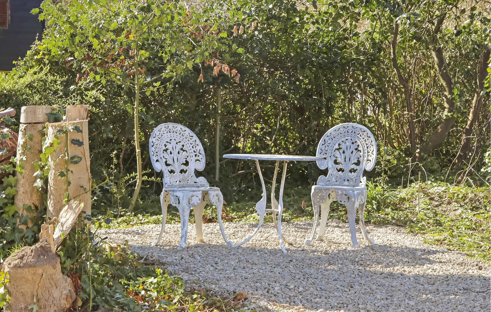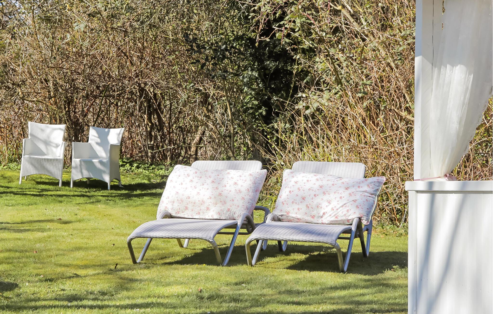 Tilbring rolige timer i den beskyttede have. Sid i den overdækkede lounge med gardiner og romantiske møbler, eller nyd solen på en af liggestolene på græsplænen. Flere siddeområder udenfor er perfekte til afslapning med en bog, et glas vin eller en god samtale.