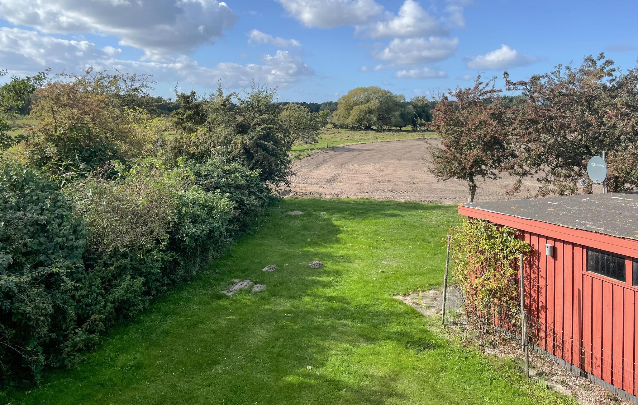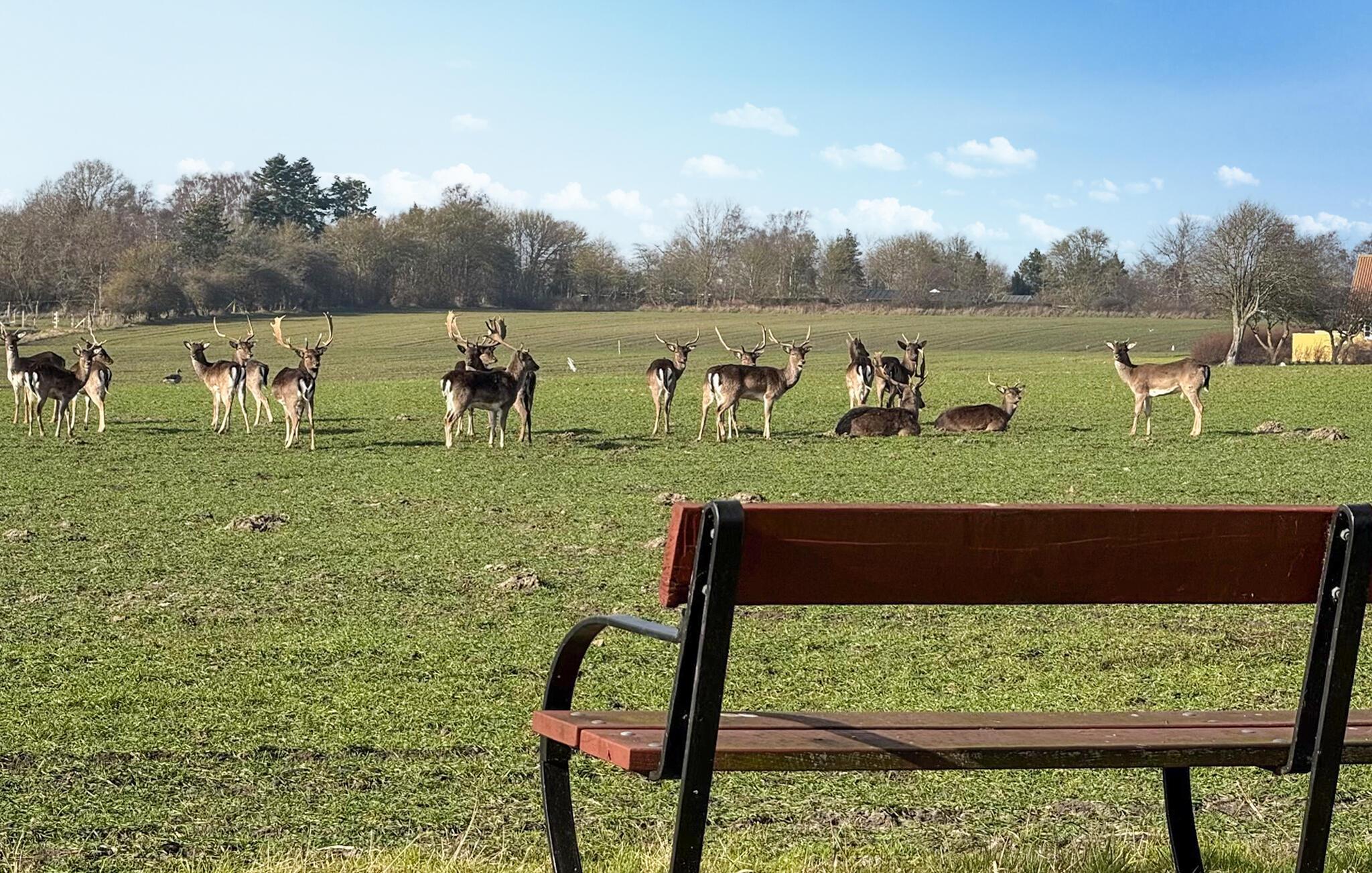 Åbn dørene til terrassen, og lad blikket glide ud over Piledybet, et område med enge og sø, der grænser direkte op til haven. Her kan I observere talrige fuglearter, harer og dådyr. Fra grunden har I også adgang til en badebro. Nyd solnedgangen om aftenen fra jeres egen bænk eller fra terrassen.