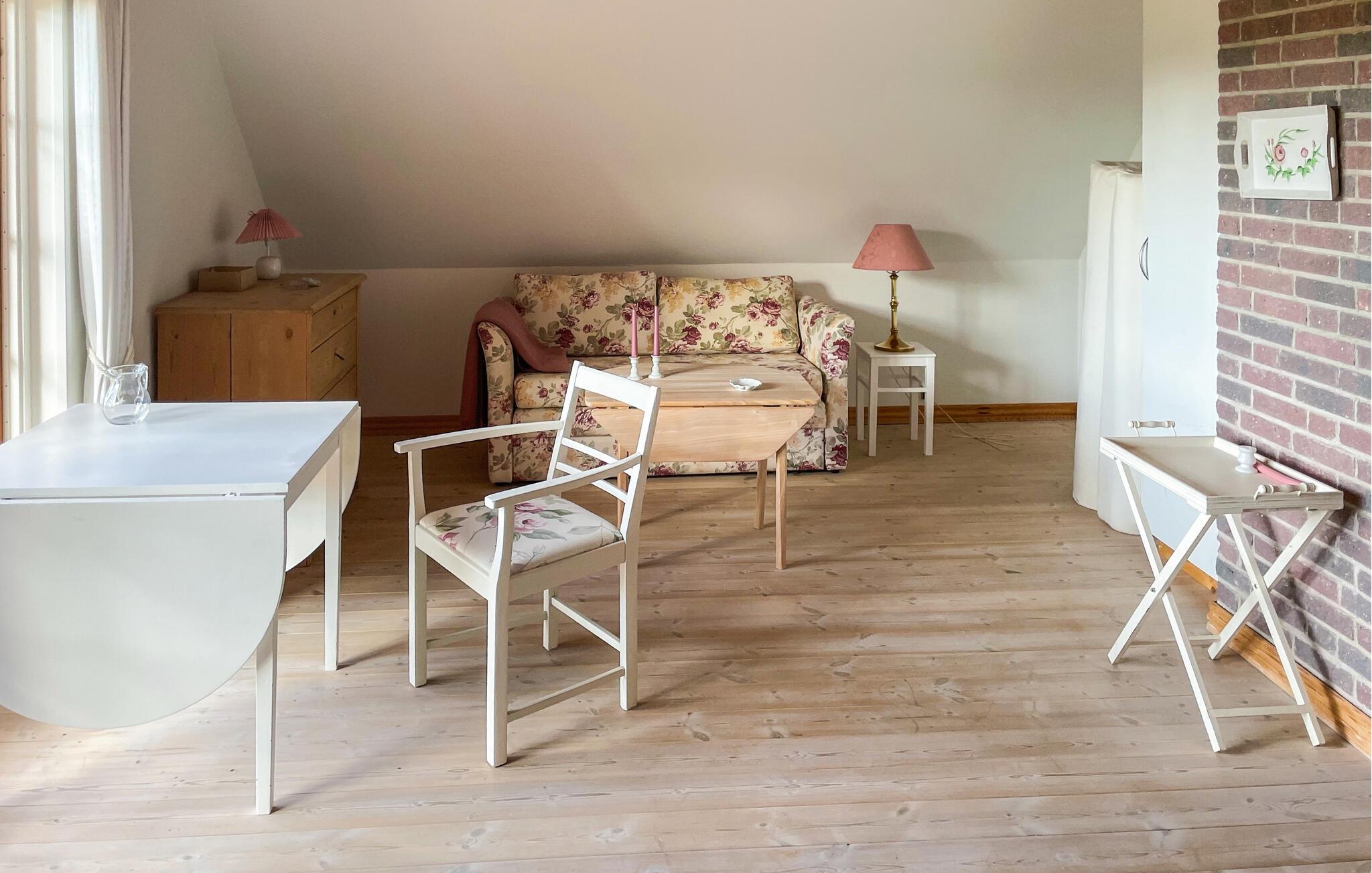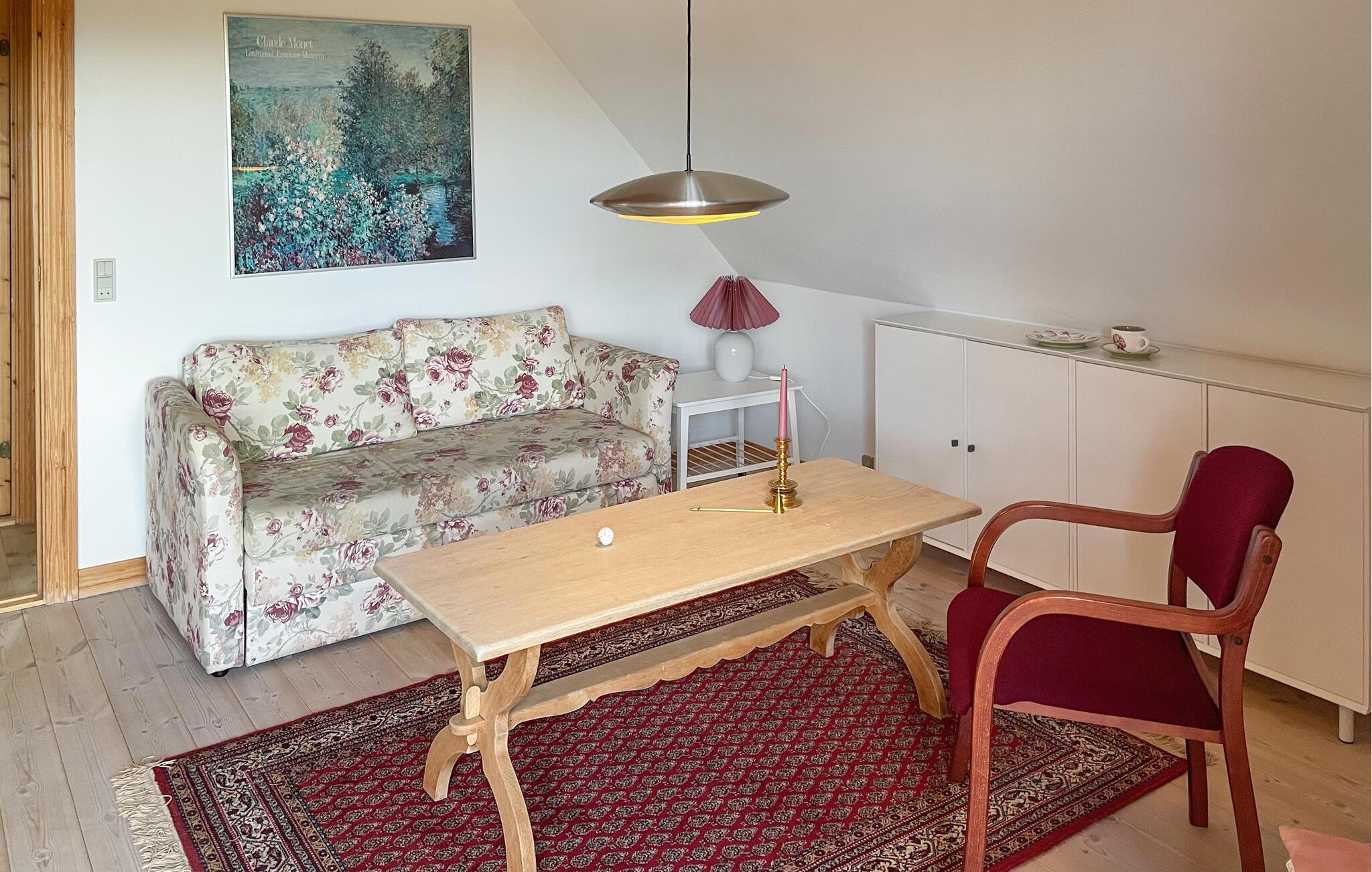 Dette indbydende hus er som skabt til en afslappende pause fra hverdagen. Lyse, venlige rum og en behagelig sofagruppe skaber en ubekymret atmosfære, hvor I hurtigt kan finde ro. Uanset om I nyder en kop kaffe, lytter til musik eller slapper af i saunaens behagelige varme, bestemmer I selv dagens tempo her.