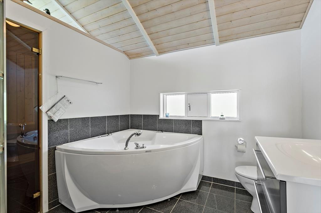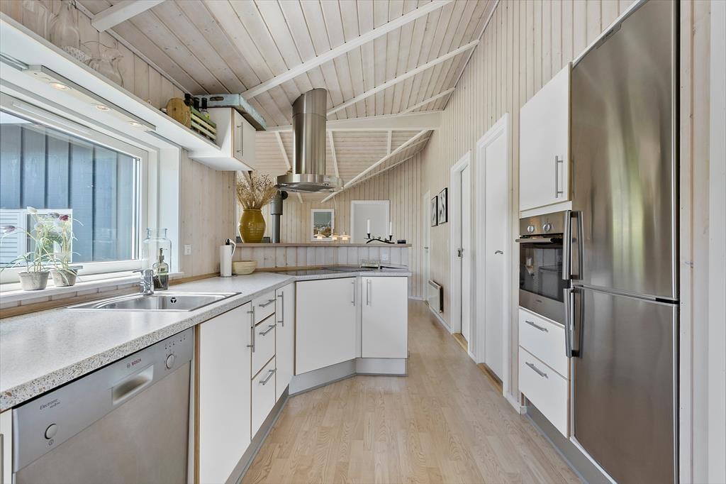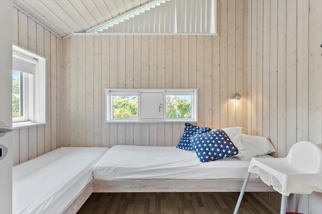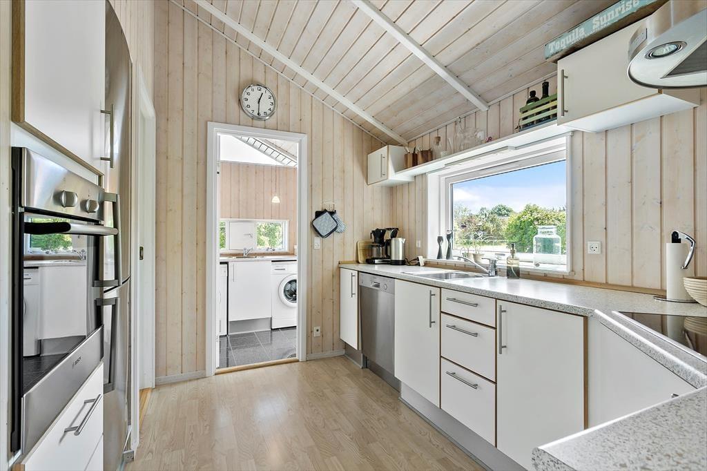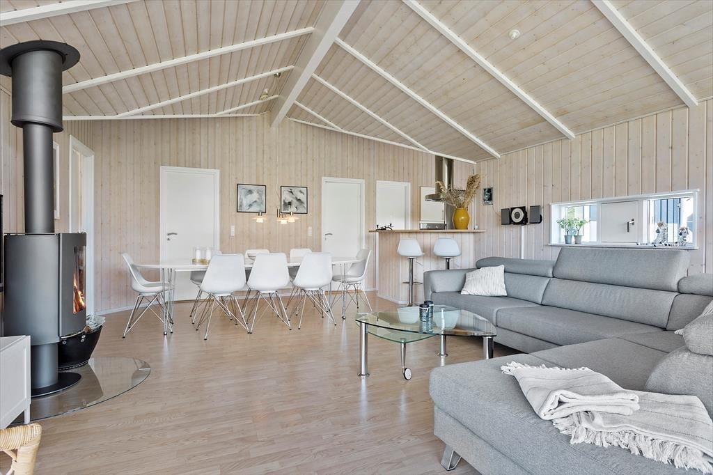 Når du træder indenfor i dette lyse og moderne sommerhus, kan du med det samme mærke, at skuldrene sænkes. Huset er indrettet med fire rummelige soveværelser og to moderne badeværelser, hvilket gør det nemt at finde plads til alle. Det ene badeværelse er udstyret med både spabad og sauna, så I kan forkæle jer selv med velvære efter en dag fyldt med aktiviteter. Det åbne opholdsrum er indrettet med store vinduer, som lukker masser af lys ind og giver udsigt til den grønne have. Her kan I samles om den hyggelige brændeovn, der spreder varme og skaber en stemningsfuld ramme om jeres aftener.