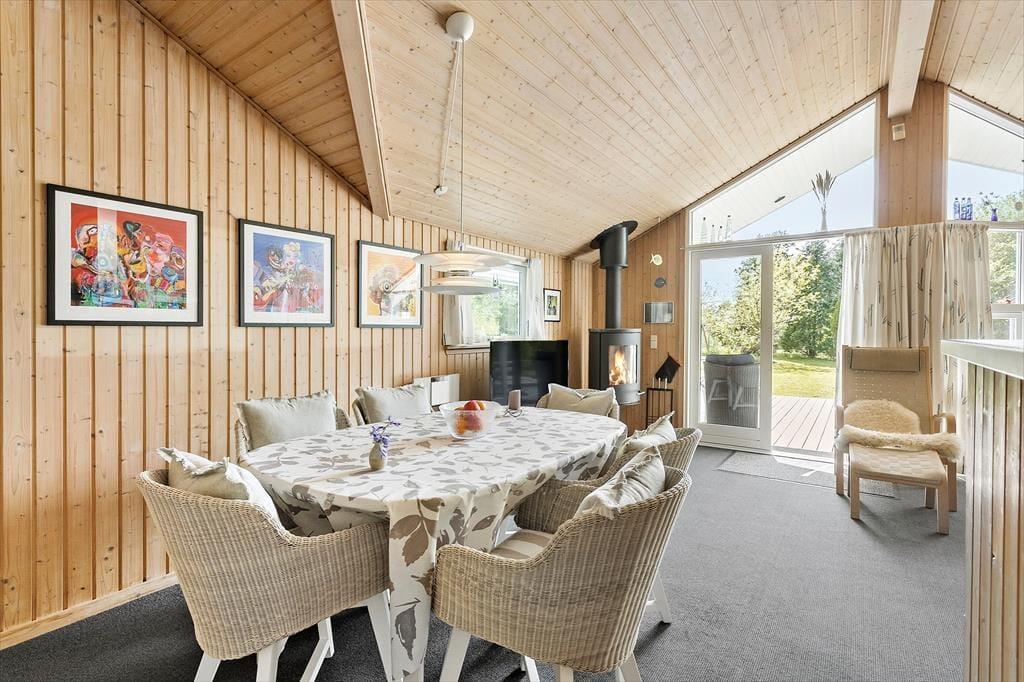 Sommerhuset byder dig velkommen med en indbydende og varm atmosfære. De tre soveværelser er fordelt med komfortable senge, som giver dig en god nats søvn efter en dag fuld af oplevelser. Stuen er hjertet af huset, hvor en brændeovn sørger for ekstra hygge på kølige aftener. Her kan du og din familie samles om brætspil, en god bog eller en spændende film, mens ilden knitrer i baggrunden. Det åbne køkken er veludstyret og ligger i forbindelse med stuen, hvilket gør det let at være sammen, selv når måltiderne skal tilberedes. Uanset om du nyder morgenkaffen eller en lækker middag, vil de lyse rum og den gennemførte sommerhusstil skabe en afslappet og behagelig feriestemning.