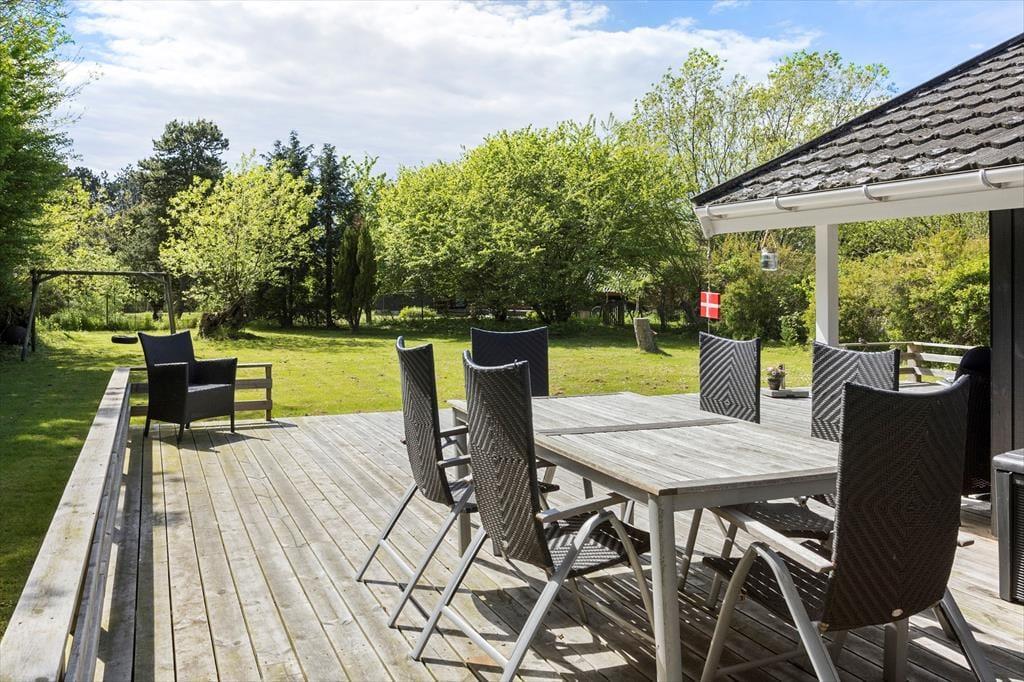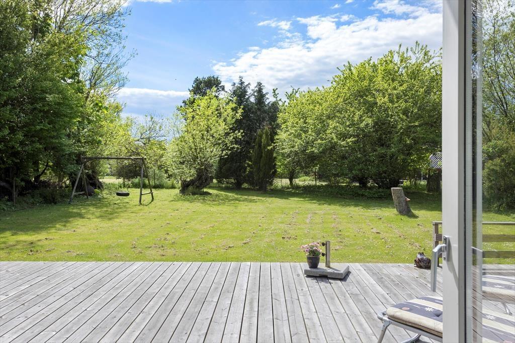 Terrassen ved sommerhuset er et skønt sted at tilbringe solrige dage. Her er masser af plads til både solbadning og hyggelige måltider under åben himmel. Du kan begynde dagen med morgenmad på terrassen, mens du lytter til fuglesang og nyder den friske luft. Senere kan du slappe af i solen, og når aftenen falder på, er grillen klar til at tilberede lækre måltider. Haven omkring huset er en grøn oase, hvor børnene kan lege, og de voksne kan finde en rolig krog til afslapning. Og med kun 400 meter til den dejlige Ristinge Strand, er det oplagt at tage en hurtig dukkert eller tilbringe hele dagen ved vandet.