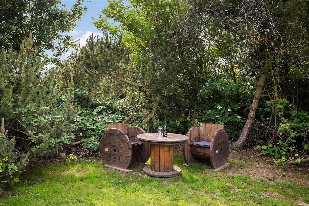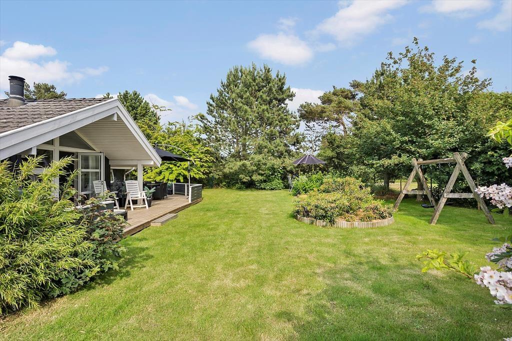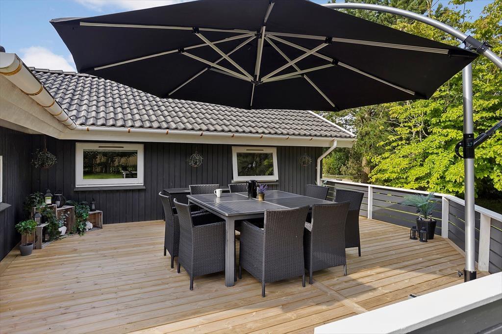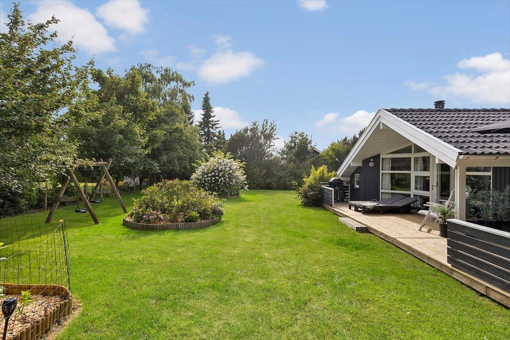 Udenfor venter en stor, hyggelig træterrasse, som er perfekt til at nyde solrige dage og lune aftener. Her kan I sidde i de komfortable havemøbler, tænde grillen og tilberede en lækker middag under åben himmel. Terrasseområdet er indrettet med tanke på afslapning og hygge, og det er nemt at forestille sig, hvordan dagen starter med morgenkaffe i solen og slutter med en god bog og et glas vin i den lune aftenluft. Den velholdte have indbyder til leg og afslapning, og der er god plads til både børn og voksne. Fuglesang og duften af blomster vil vække dine sanser, mens du slapper af i dette naturskønne område.