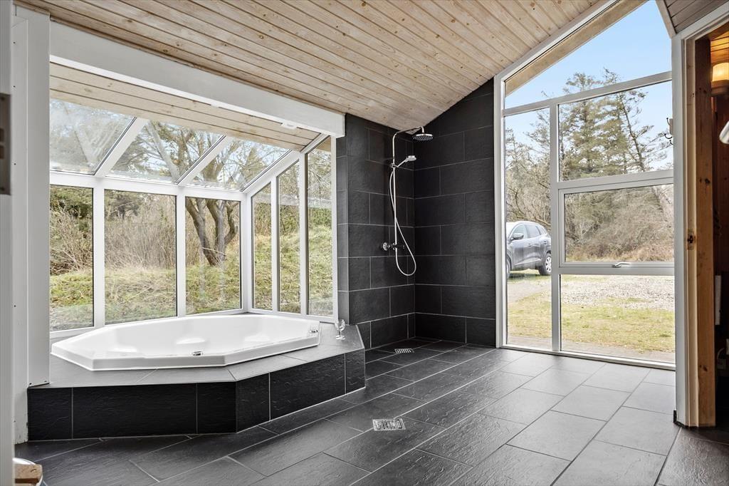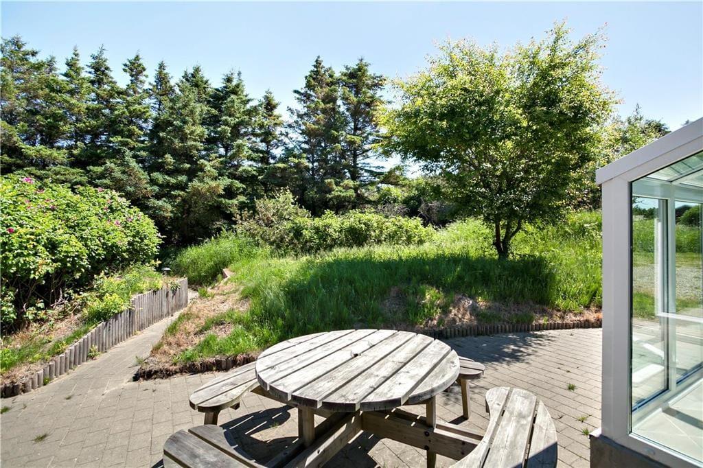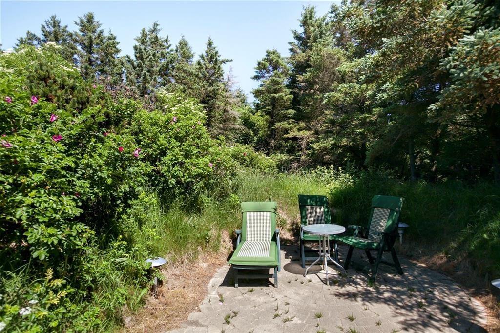 Sommerhuset ligger på en stor naturgrund, der skaber fred og privatliv takket være hybenbuskene og de høje træer, som skærmer af mod naboer og forbipasserende. Her er der plads til, at børnene kan lege og udforske, mens de voksne slapper af i en liggestol eller nyder måltider på terrassen. Når aftenen falder på, kan I grille og se solen gå ned over landskabet. Med kun 600 meter til Vesterhavet kan du starte dagen med en forfriskende dukkert eller afslutte den med en rolig gåtur langs kysten, mens den salte havluft fylder dine sanser med ro og velvære.