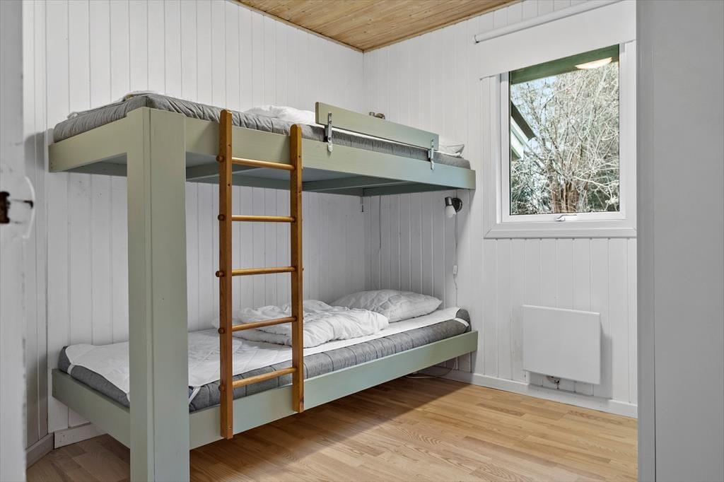 Sommerhuset er indrettet med fokus på lys og komfort, så her føler du dig straks hjemme. Planløsningen byder på fire gode værelser, et badeværelse med både spa og sauna samt et gæstetoilet – alt sammen med plads til, at familien kan trække sig tilbage og slappe af. Det pæne køkken er godt udstyret og åbner op mod spisepladsen og stuen, så I kan samles omkring madlavning og måltider uden at gå glip af hyggesnakken. I opholdsstuen skaber store vinduer et smukt lysindfald og udsigt til den frodige naturgrund, mens brændeovnen sørger for varme og hygge på de kølige aftener.