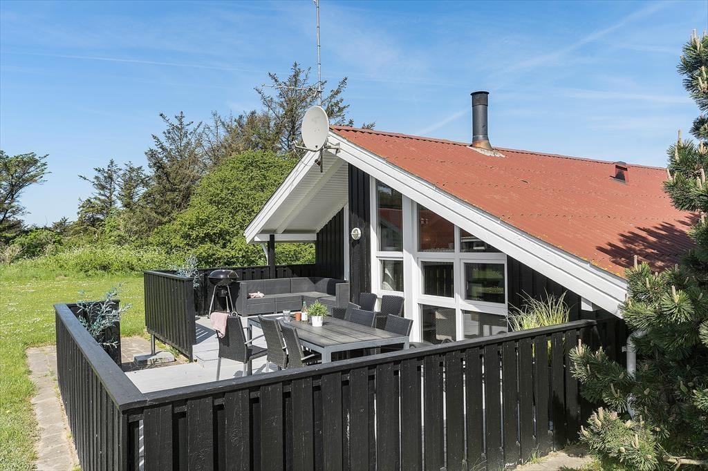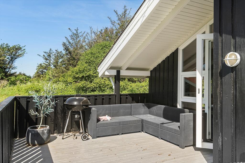 Udenfor kan du nyde den fredelige naturgrund, hvor du kan slappe af i solen eller tage på opdagelse i området. Den store terrasse er det perfekte sted til at nyde morgenkaffen, en god middag med familie og venner eller en stille stund med en god bog, mens du lader tankerne flyve. Den store grund giver god plads til både leg og afslapning, og det rolige område omkring sommerhuset gør det til en ideel base for ferie i naturen. Fra huset er det kun en kort tur til Lønstrup, hvor du kan finde hyggelige caféer, små butikker og den lokale stemning. En tur til den imponerende Rubjerg Knude, der ligger tæt på, er også en oplagt aktivitet, som du kan nyde under dit ophold.