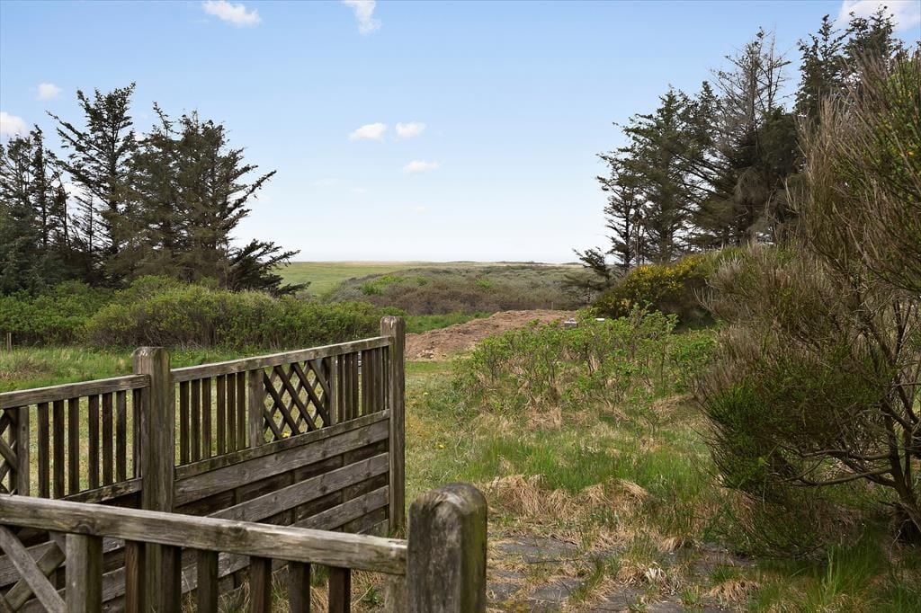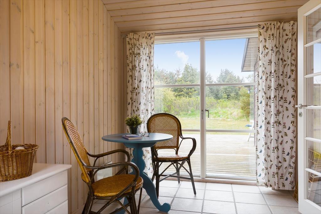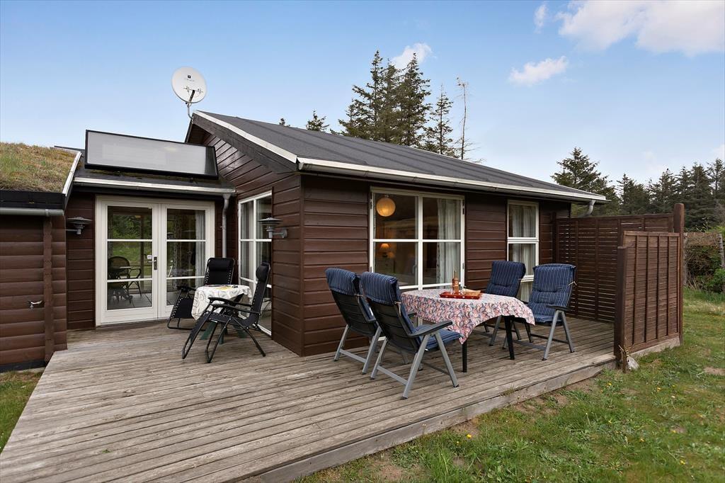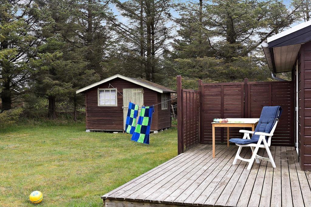 Sommerhuset ligger på en stor naturgrund kun få hundrede meter fra stranden og det brusende Vesterhav. Området fra huset og ned til stranden er fredet, så udsigten er helt uforstyrret. Der er på grunden fin mulighed for at sætte sig på en af de mange terrasser og nyde havudsigten. Huset rummer naturligvis også terrasser som skaber beskyttelse for vestenvinden så man kan altid finde en læ krog.