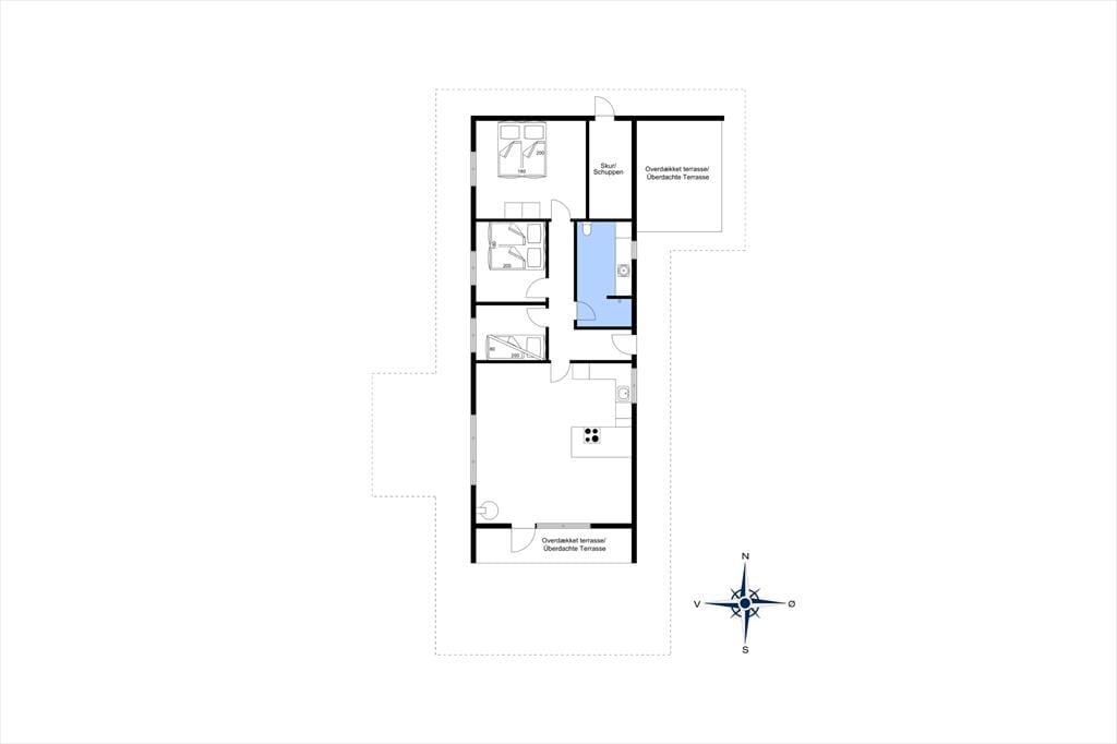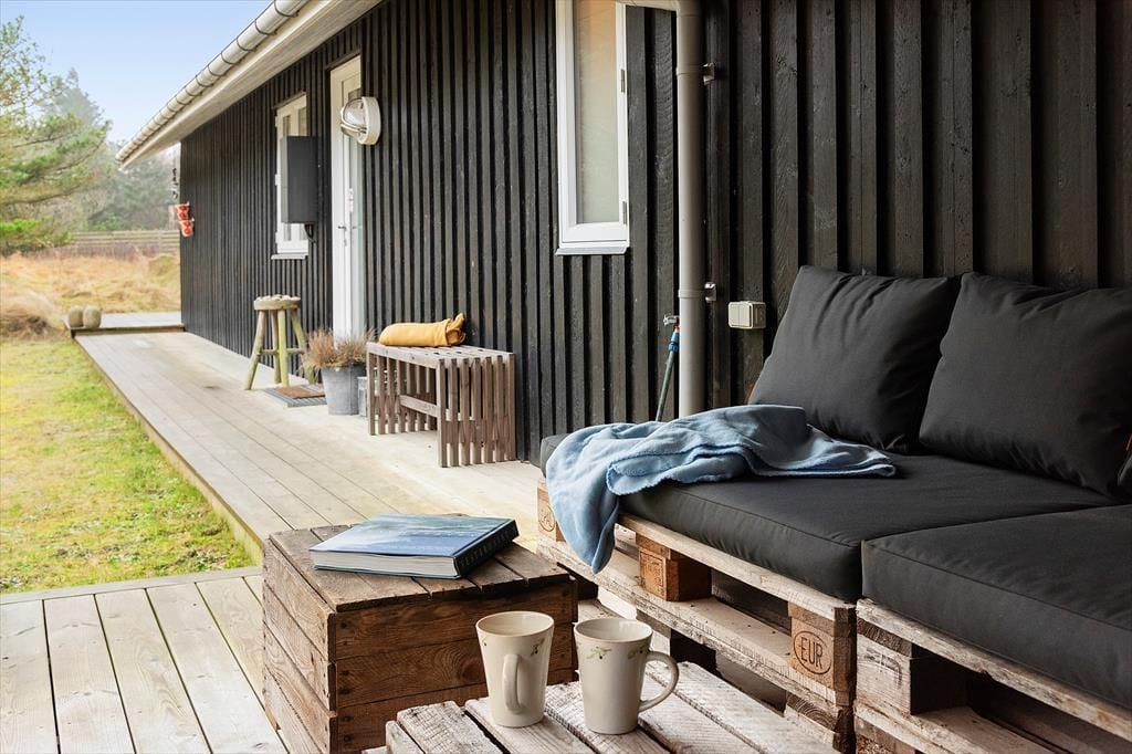 Rundt om sommerhuset er der flere terrasser at vælge imellem – inklusiv et overdækket område og en mindre vestvendt terrasse. Den sydvendte terrasse kan hurtigt blive udpeget som en af favoritterne, for her er der nemlig sol en stor del af dagen, og der er masser af plads til at læne sig tilbage i havemøbler og liggestole.