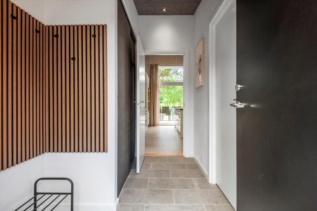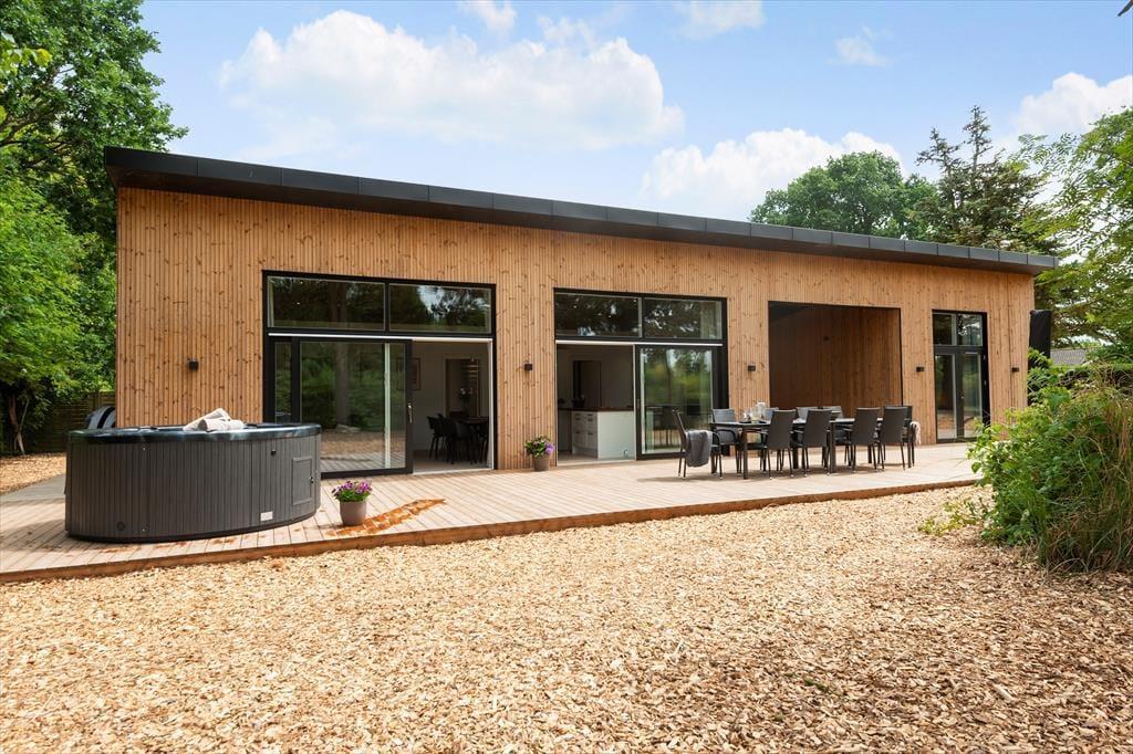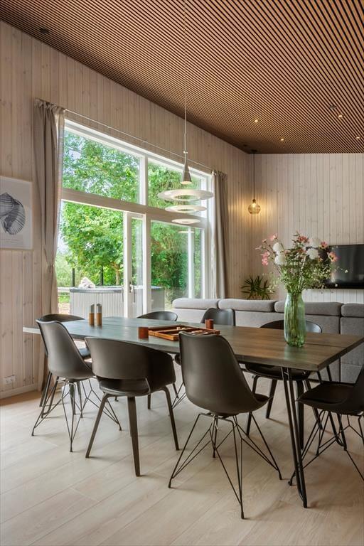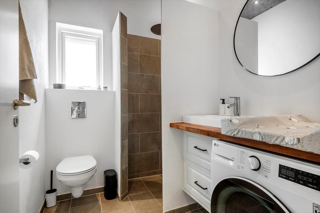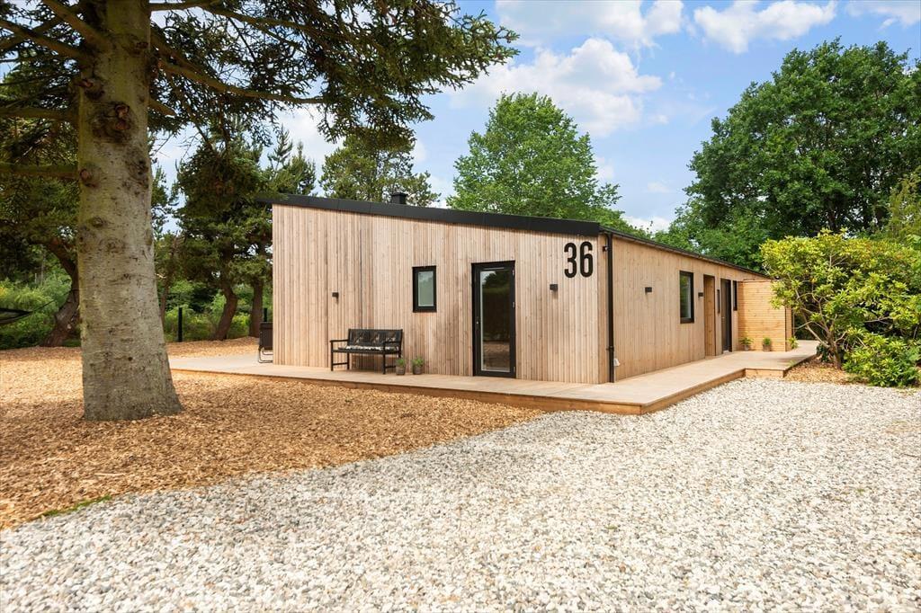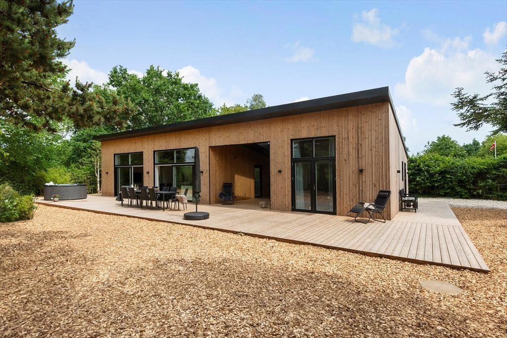 Udenfor åbner en stor, lækker træterrasse sig op som husets andet opholdsrum – og det er her, mange af feriens bedste øjeblikke vil opstå. Der er ikke græsplæne ved huset – men en flot, stor træterrasse på 185 m² og træflis rundt om huset, som gør udearealet både elegant og let at holde. Her kan du nyde morgenmaden i solen, tage et velfortjent hvil i liggestolen eller læne dig tilbage i det varme udespa og lade feriestemningen sætte sig helt ind under huden.