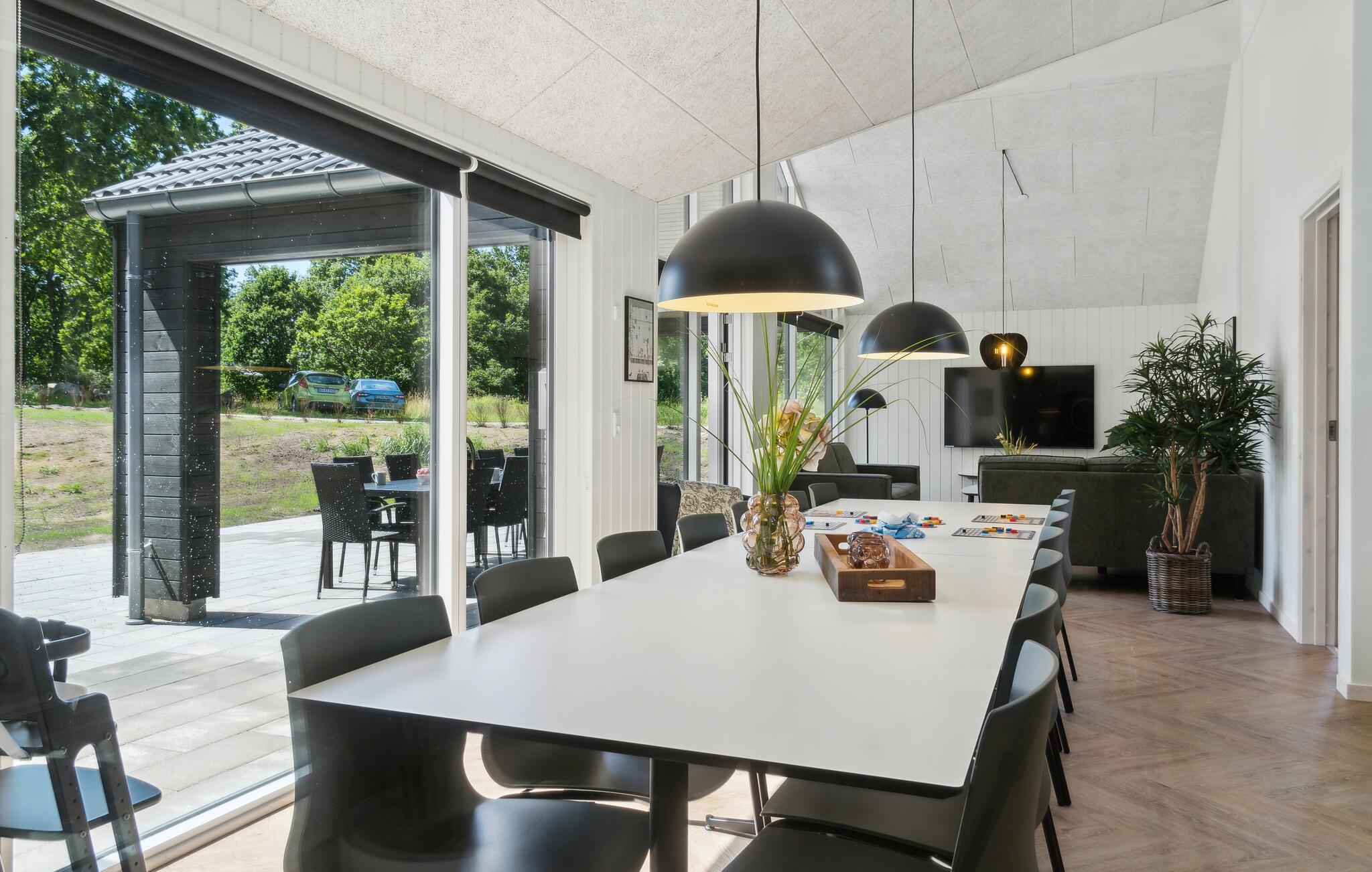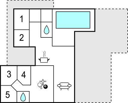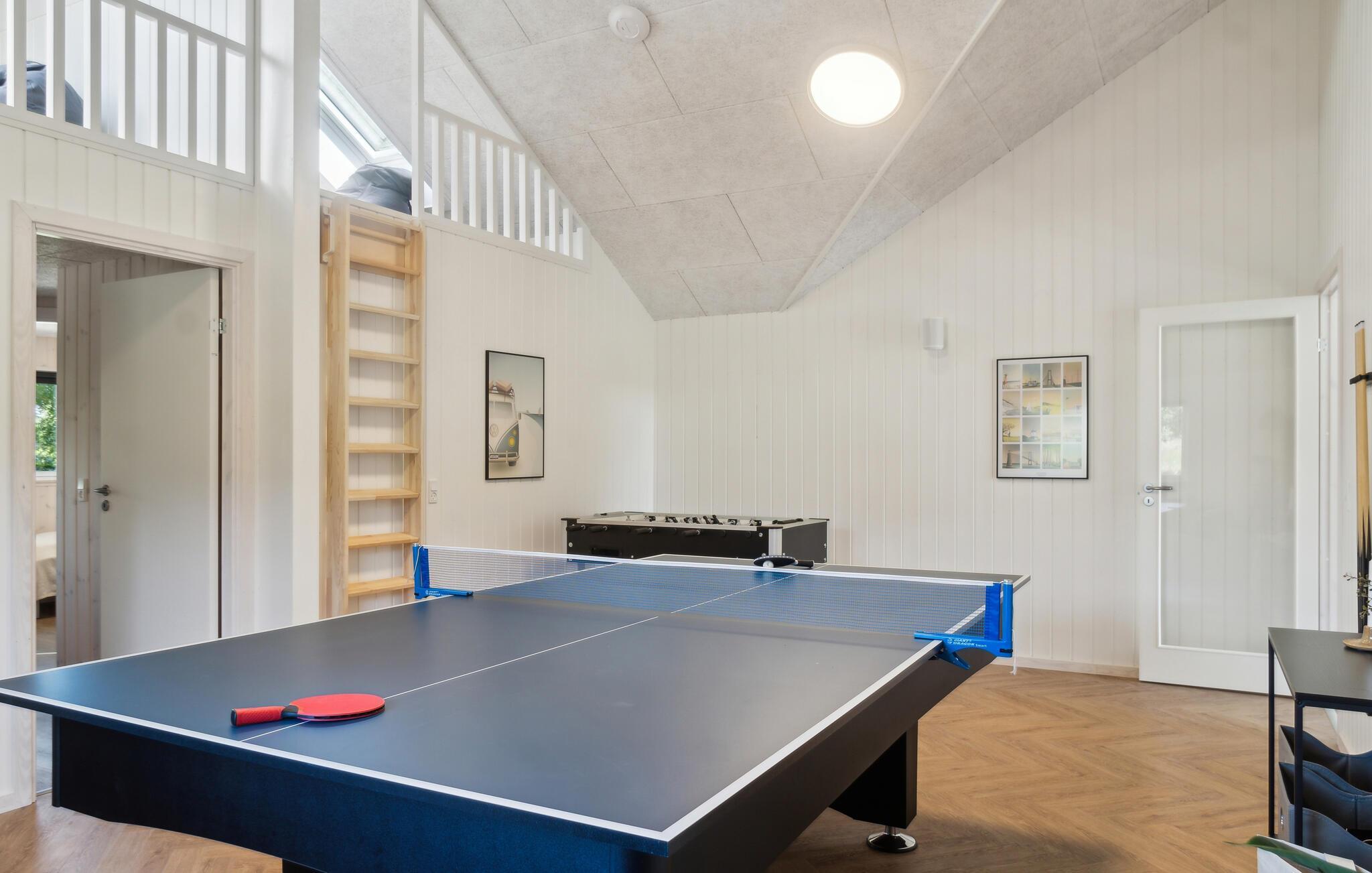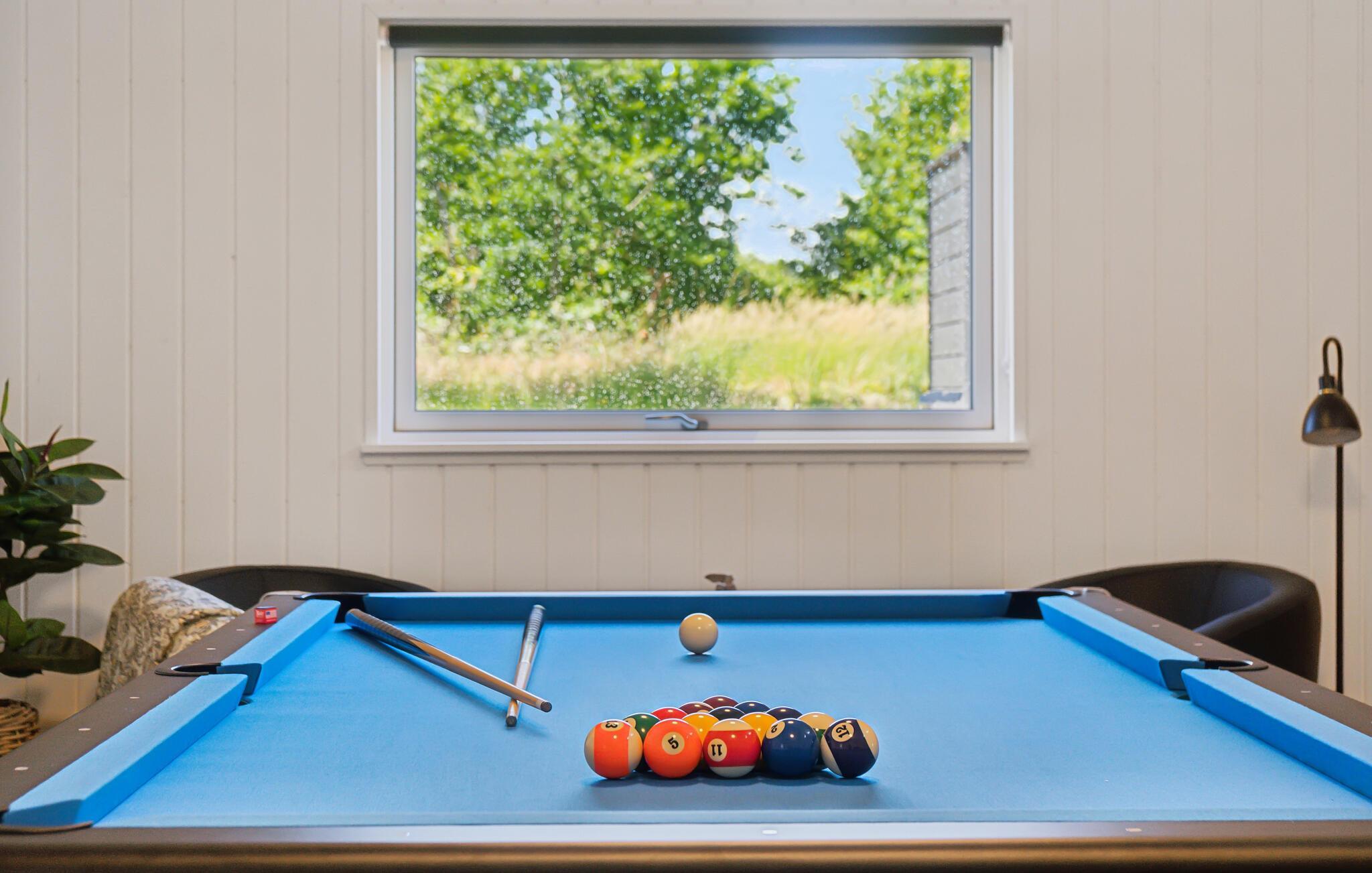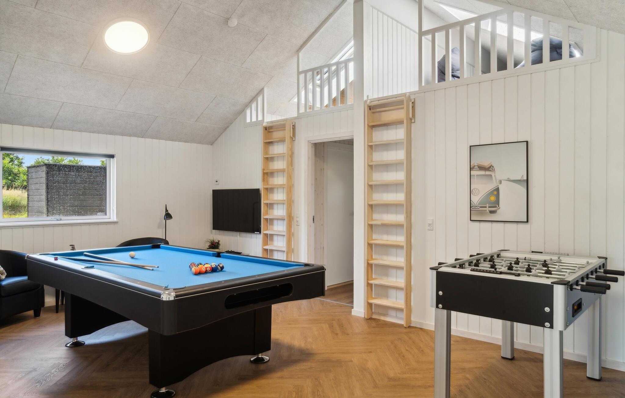 Hvis I er på udkig efter en rummelig og veludstyret feriebolig til den udvidede familie, og går I ikke af vejen for virkelig god komfort, er dette komfortable hus det helt rigtige valg for jer. Indretningen fremtræder flot og indbydende over hele linjen med materialer af højeste kvalitet, komfortable møbler og dejlige lysindfald og udsigt gennem den store vinduesfront. Prikken over i'et er pool-afdelingen, hvor børnene uanset vejret kan plaske rundt i poolen, mens de voksne tager den lidt med ro og sveder igennem i saunaen. Tilbered familiens livretter i det moderne og fuldt udstyrede køkken og dæk op ved spisebordet med plads til alle til et hyggeligt aftensmåltid. Senere kan I sætte jer godt til rette i sofaområdet eller duellere i et slag pool eller bordfoldbold, inden I går til køjs i de rolige soveværelser.