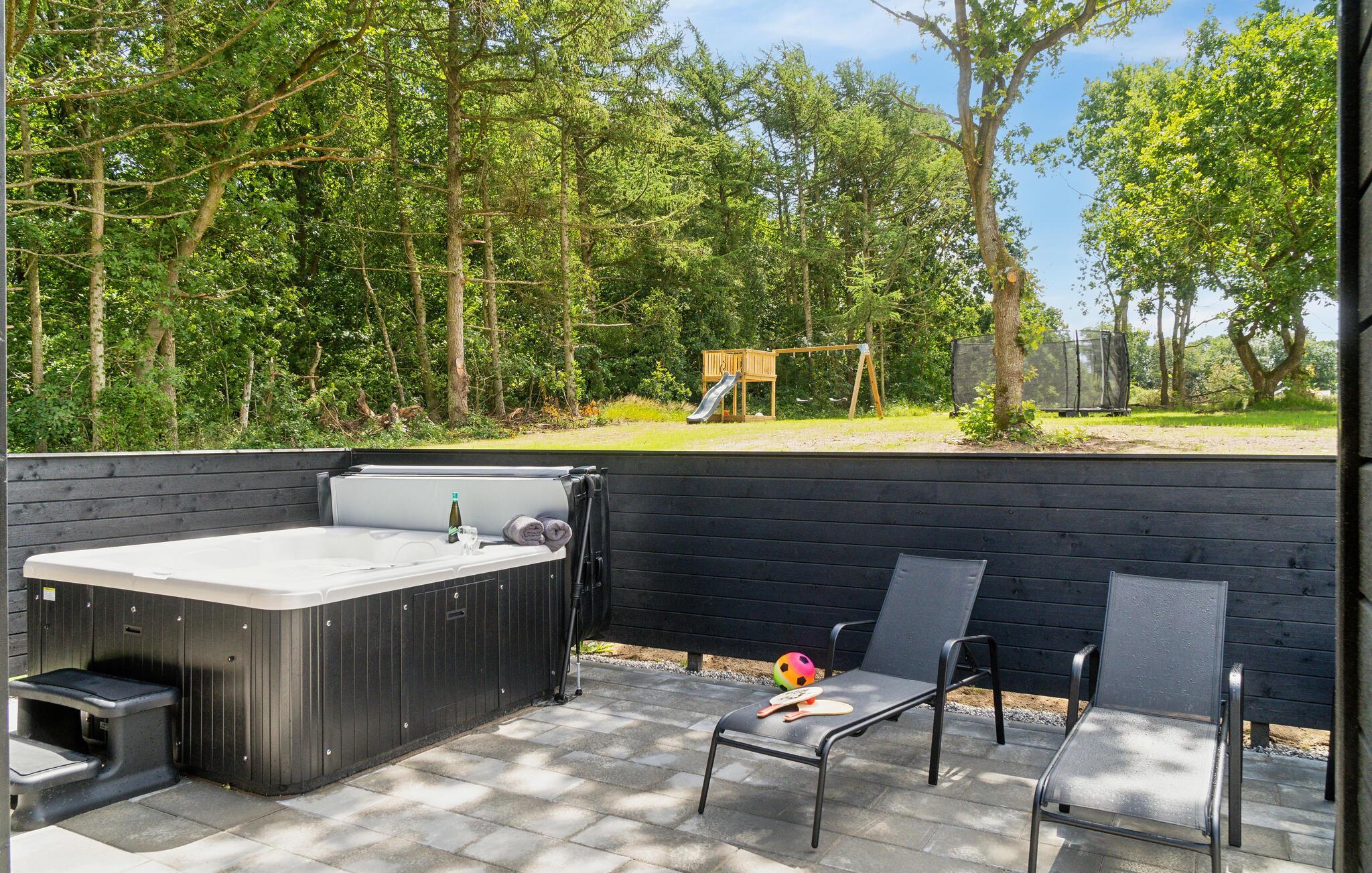 Udeområdet er tilsvarende dejligt. Her kan I spille petanque eller slappe af på terrassen og holde øje med børnene, der leger på deres helt egen legeplads i haven. Steg nogle saftige bøffer på grillen under aftensolen og rund aftenen af med en tur i det udendørs spabad, hvis I skal forkæle jer selv lidt ekstra efter en dejlig sommerdag.