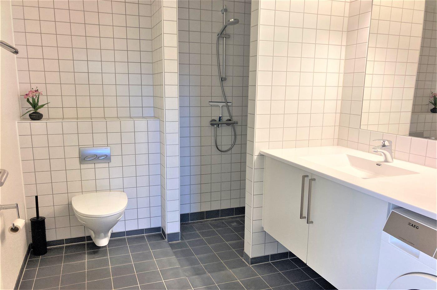 Der er 1 badeværelse med bruseniche og 1 toilet.. Der er gulvvarme på 1 badeværelse.