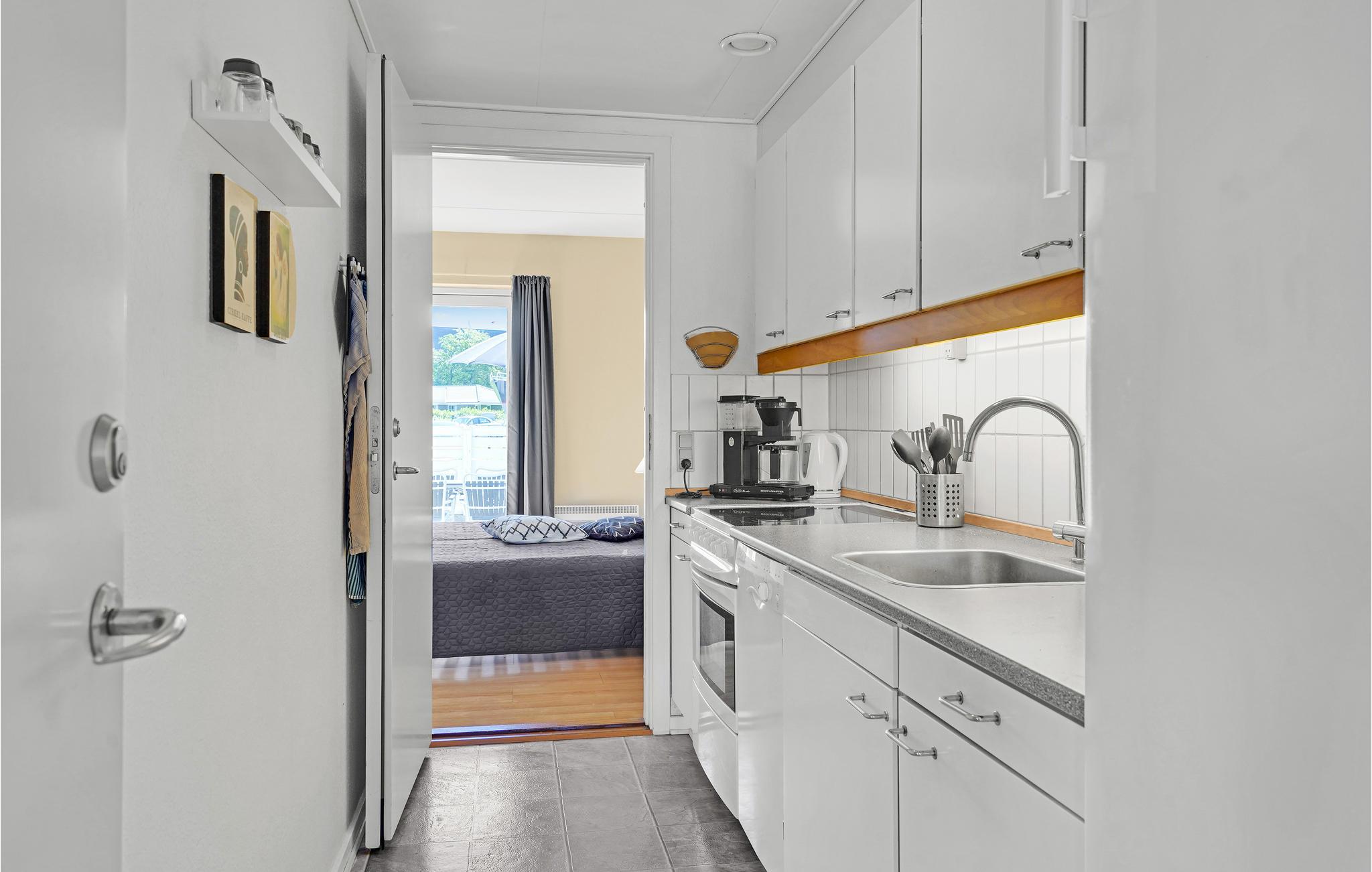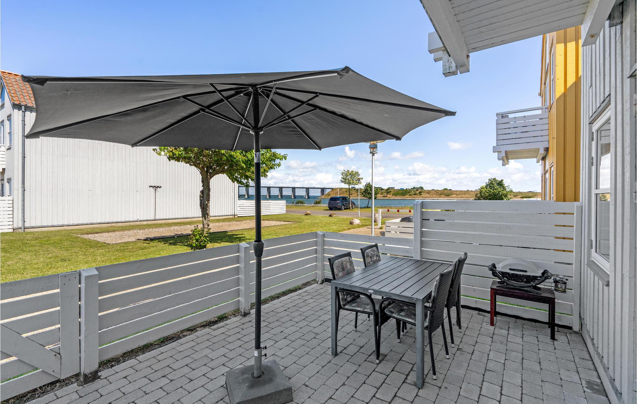 Velkommen indenfor i denne lyse og indbydende lejlighed i stueetagen. Lejlighedens praktiske og komfortable interiør, sikrer at I ikke kommer til at mangle noget. Nyd morgenkaffen på terrassen, mens I beundrer udsigten til havnen, og planlægger dagens udflugter. På varme sommerdage, kan I slå parasollen op, og sidde i skyggen med en kold forfriskning.