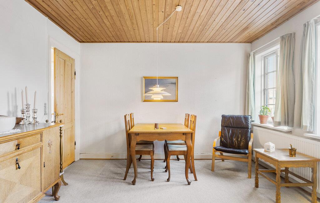 Her får I alt, hvad I behøver til en hyggelig, afslappende ferie langt væk fra hverdagen derhjemme. Fra husets første sal får I en vidunderlig udsigt over tagene og Strandbakken, der går helt ud til Bellevue Strand. I soveværelset på øverste etage kan I nyde den hyggelige indretning med åbne træbjælker og en masse plads.