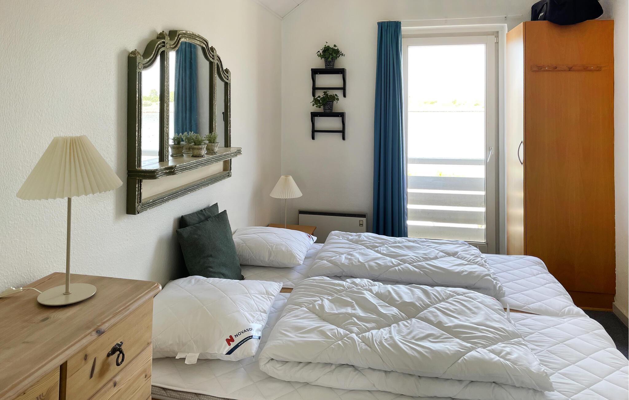 Glæd jer til denne lyse ferielejlighed med balkon lige ved lystbådehavnen.