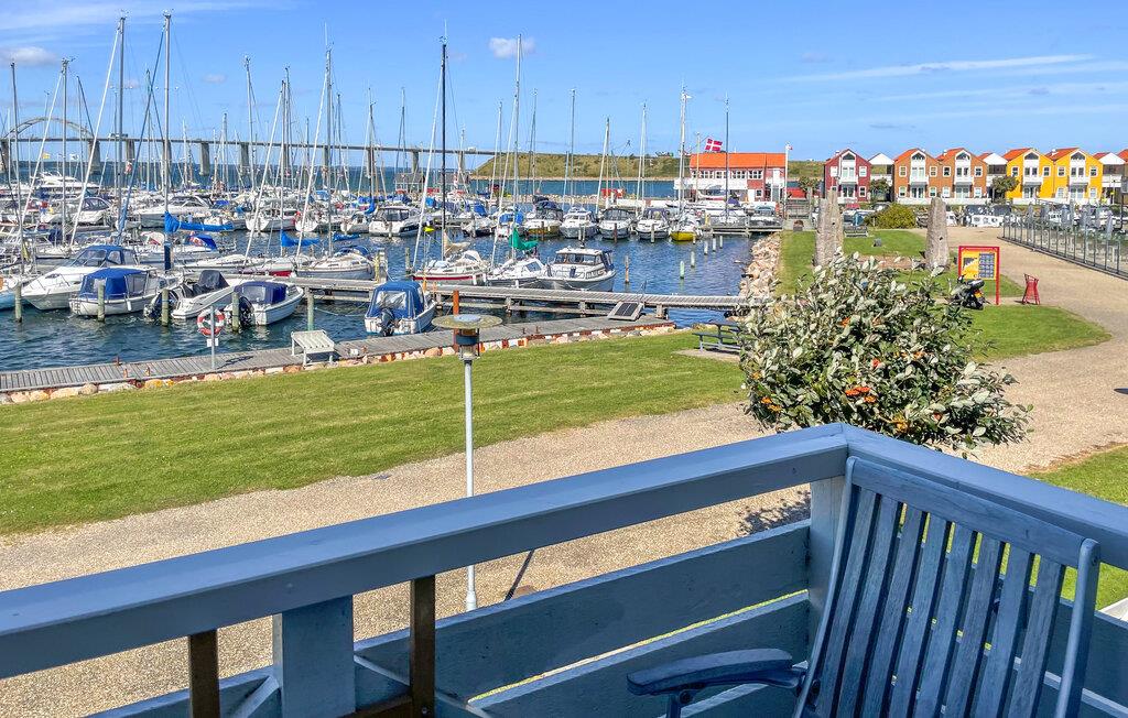 Lys ferielejlighed på første sal med balkon og panoramaudsigt over havnen i Rudkøbing.