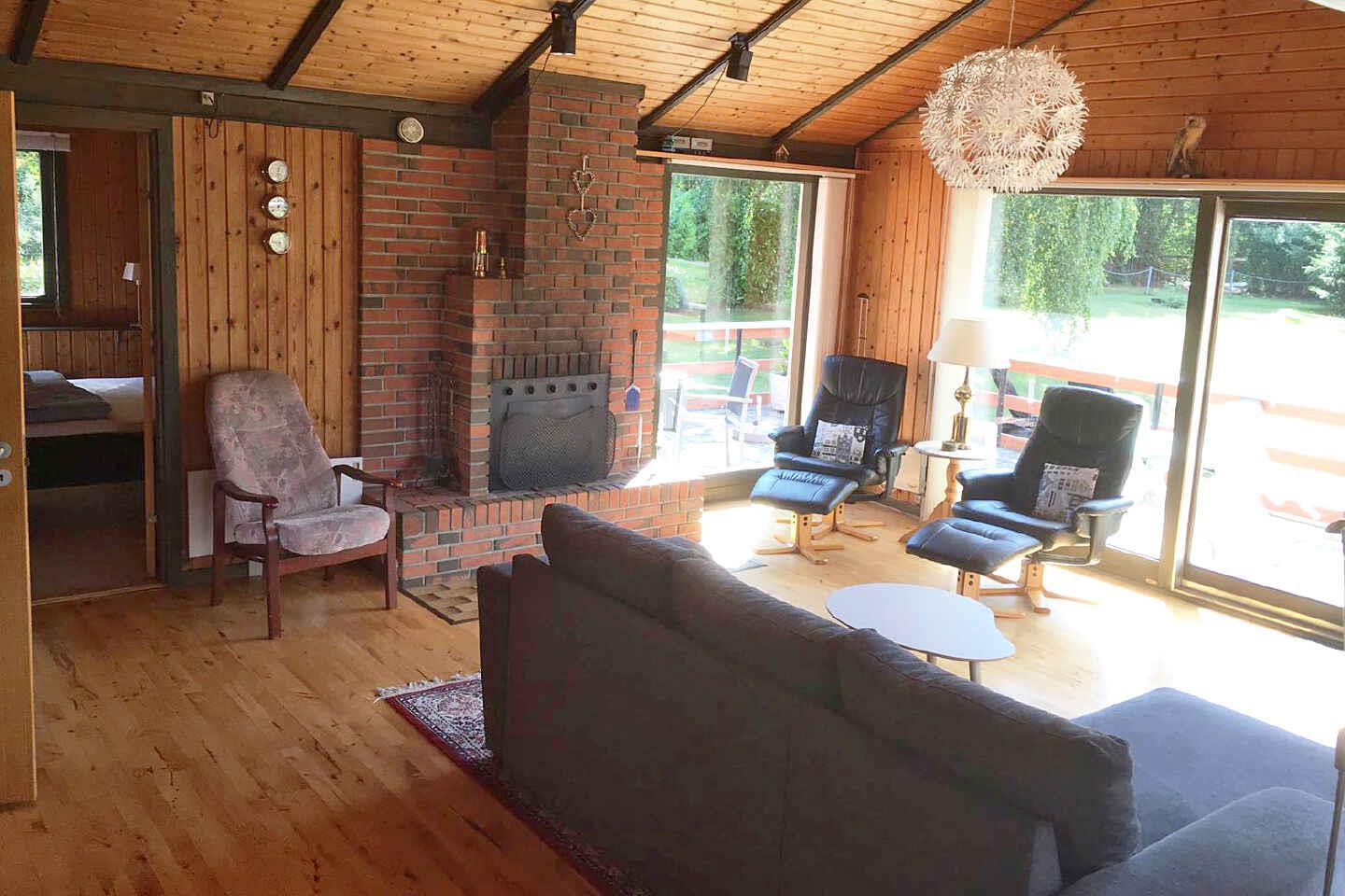 Hyggeligt træsommerhus på 1400 m² grund, kun 300 m fra stranden med brændeovn og veludstyret køkken.