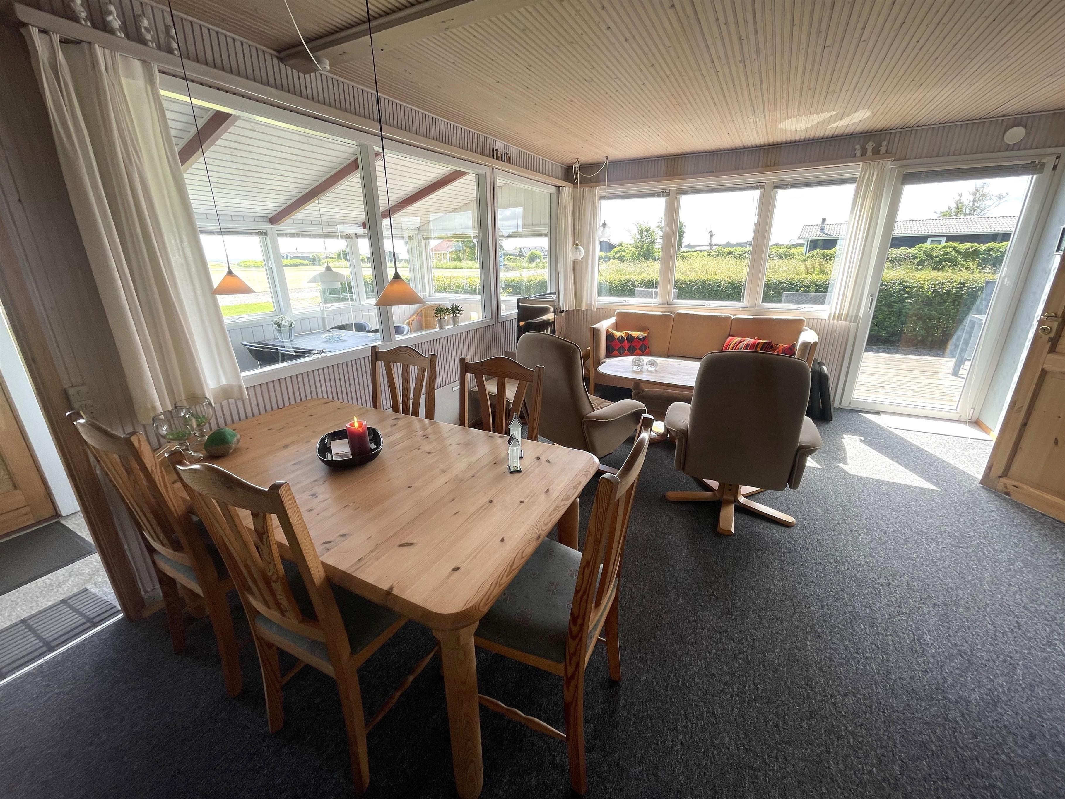 Huset er indrettet i en hyggelig sommerhusstil. Huset blev delvist moderniseret i 2020, og fra indgangspartiet træder du direkte ind i et hyggeligt og funktionelt køkken, som ligger i åben forbindelse med opholdrummet. Der er en stor stue med spiseplads og sofagruppe, som giver jer mulighed for at nyde hinandens nærvær. Fra stuen er der adgang til en indbydende udestue, hvorfra der er den smukkeste udsigt til havet ( solopgang ) og det grønne område både fra huset og fra terrasserne. På husets to terrasser kan udelivet også nydes med afslapning i liggestolene og også med mulighed for at grille.