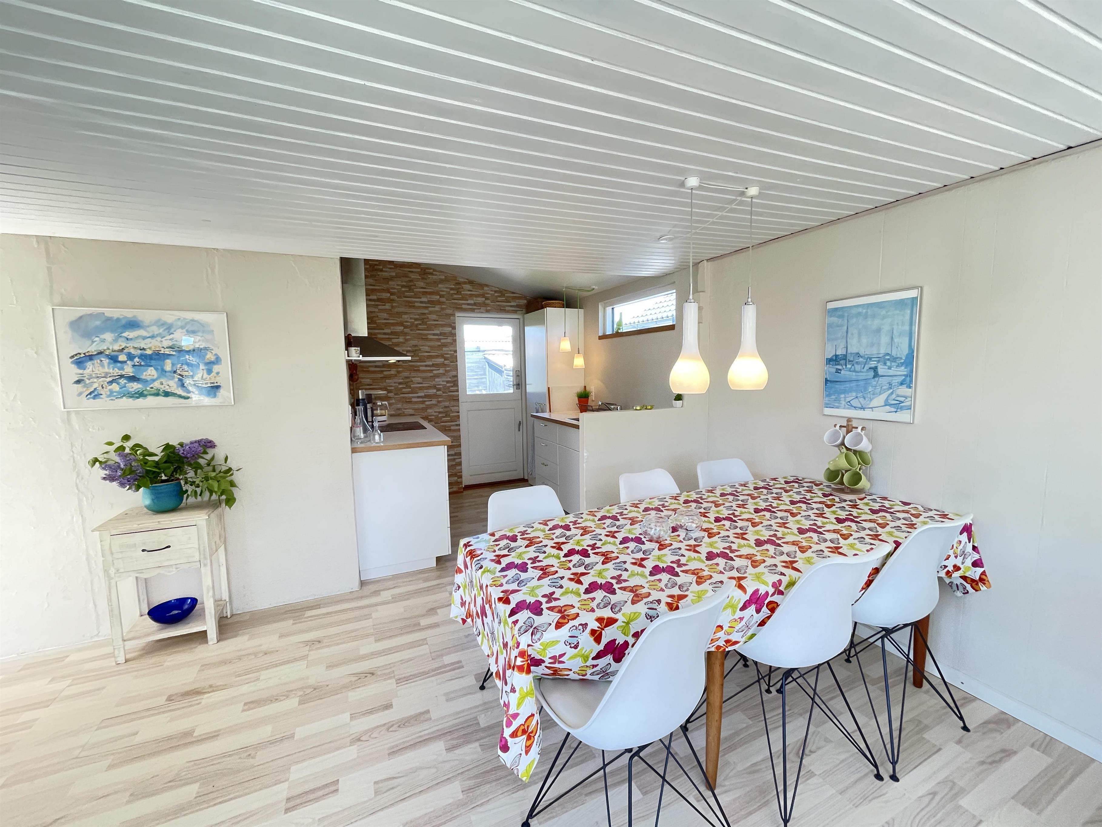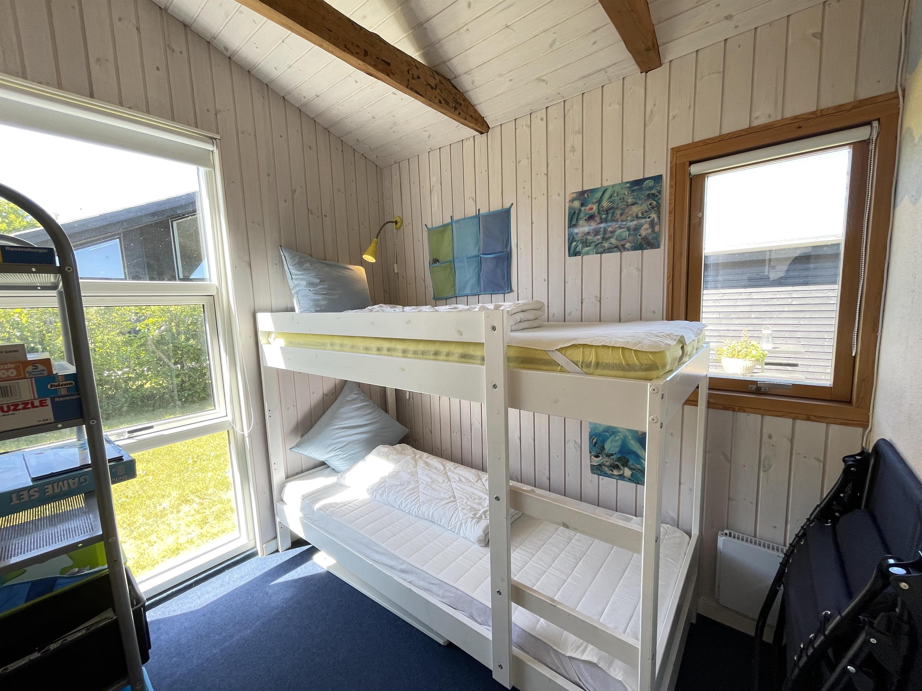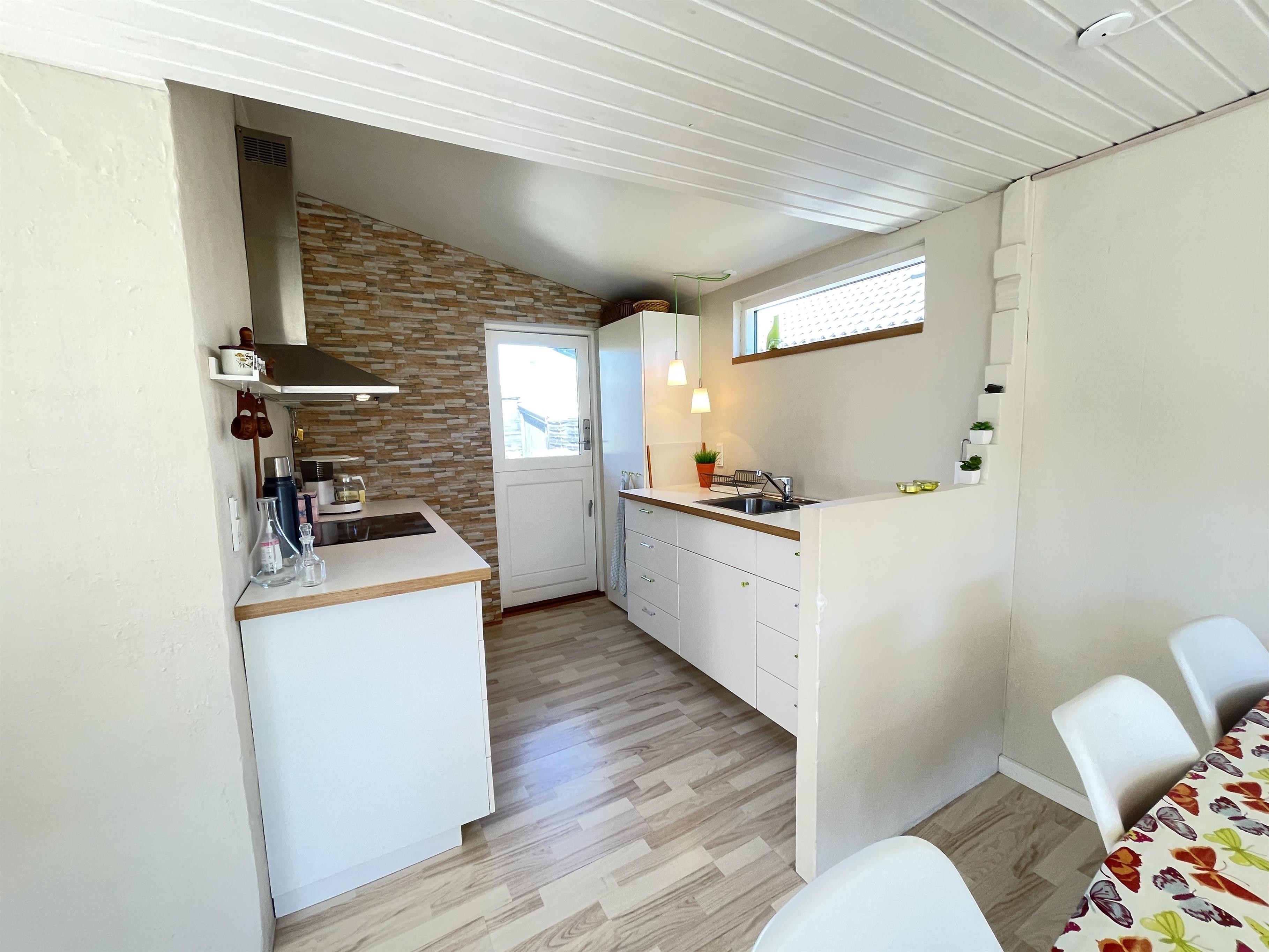 Huset er super funktionelt, med tre soveværelser, hvor sengepladserne er fordelt i 1xdobbeltseng, 1x3/4 seng og 1xkøjeseng. Køkken og stue går ud i et og i stuen er terrassedør og en lille karnap, som giver et dejligt kig ud til haven. Huset har et flot moderniseret badeværelse med bruseniche og har generelt en flot indretning og en god stemning med mange fine detaljer.