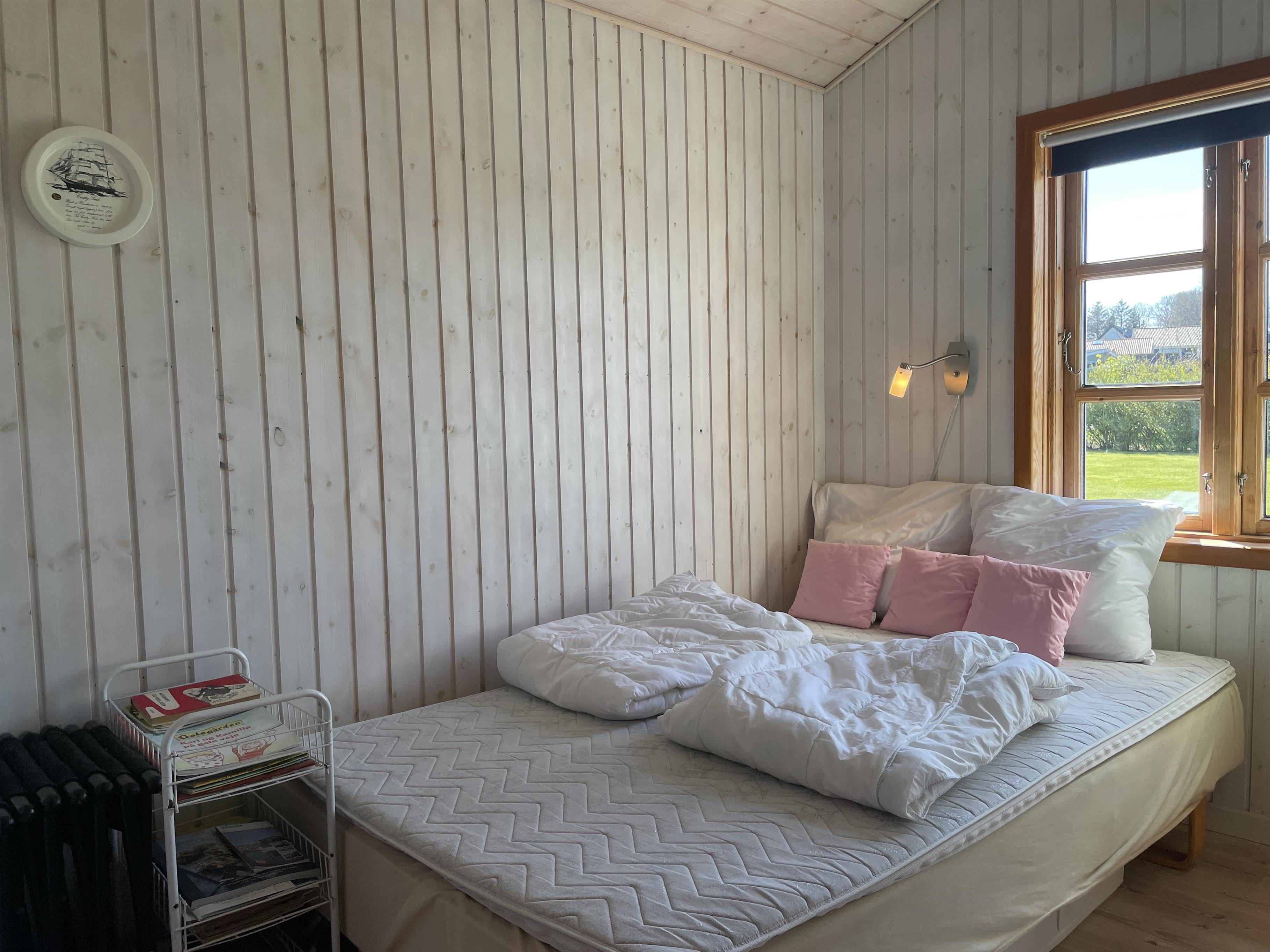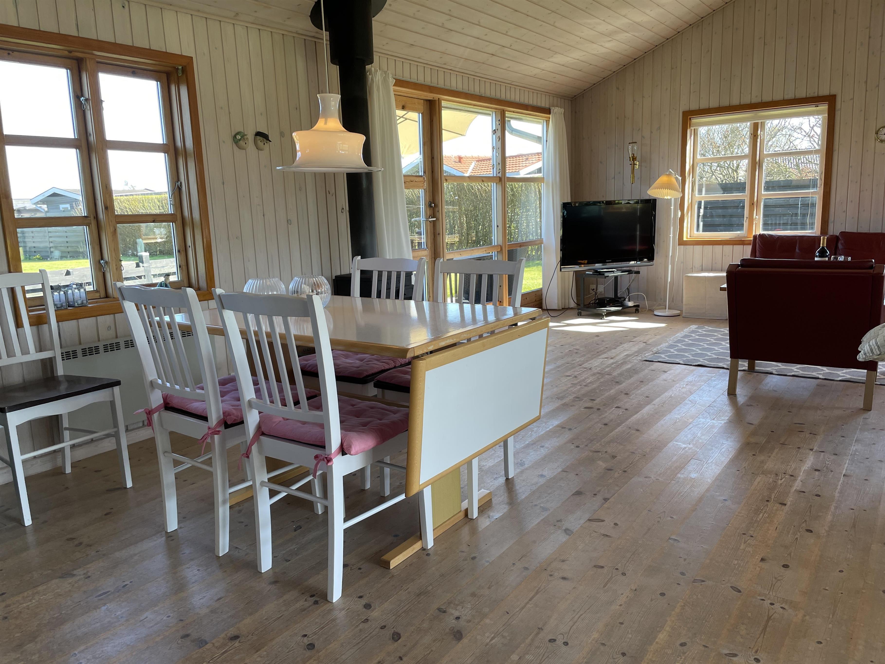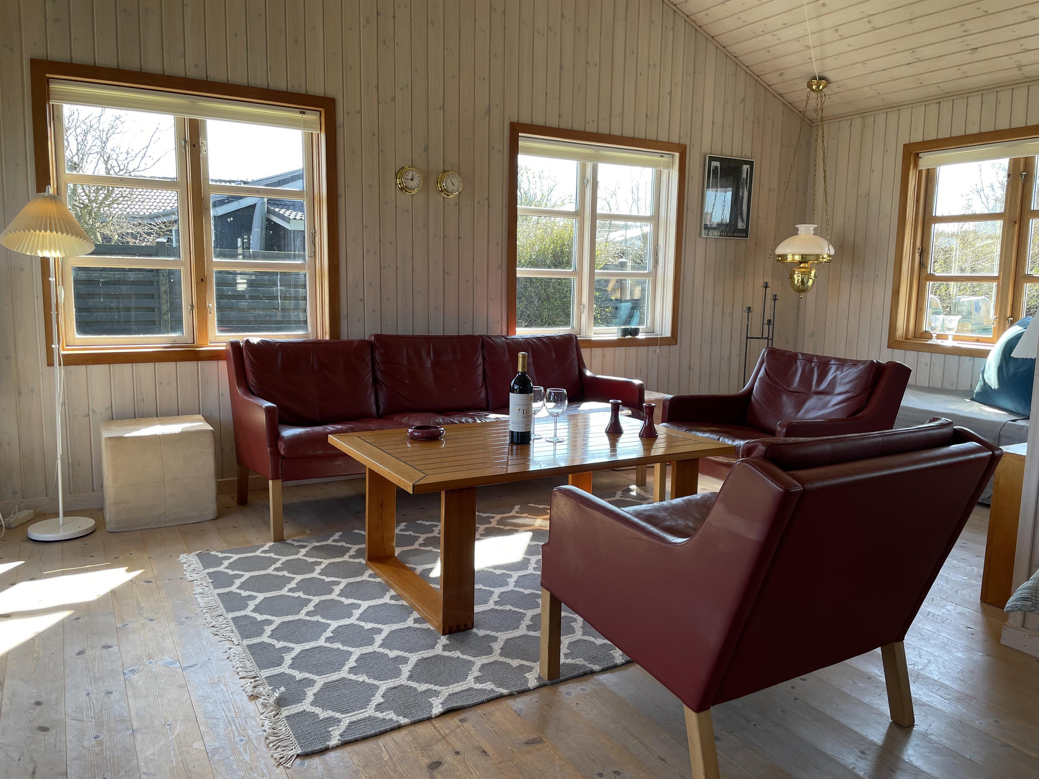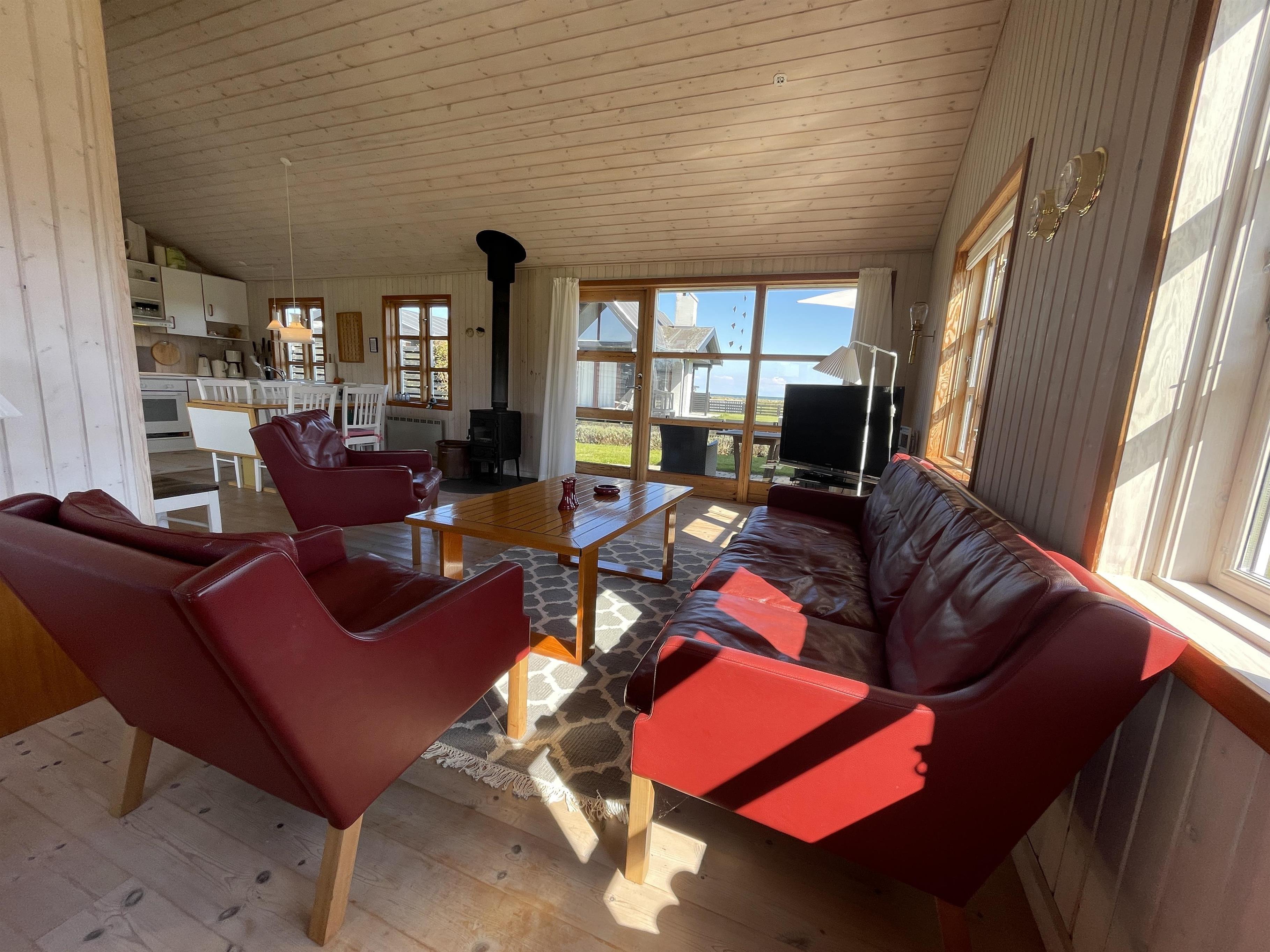 Inde i huset er der plads til 6 personer fordelt på tre hyggelige soveværelser, samt en køjeseng ved indgangen. Når du træder ind, mødes du af et rummeligt køkkenalrum, hvor loftet strækker sig højt op. Her kan du forberede lækre måltider til dine nærmeste, mens brændeovnen spreder varme og hygge efter en frisk gåtur langs stranden på en kølig efterårsdag. I forlængelse af køkkenet åbner et stort sofaområde sig op, indrettet med en charmerende 3-personers sofa, to bløde lænestole og et TV, der indbyder til afslapning og hygge.