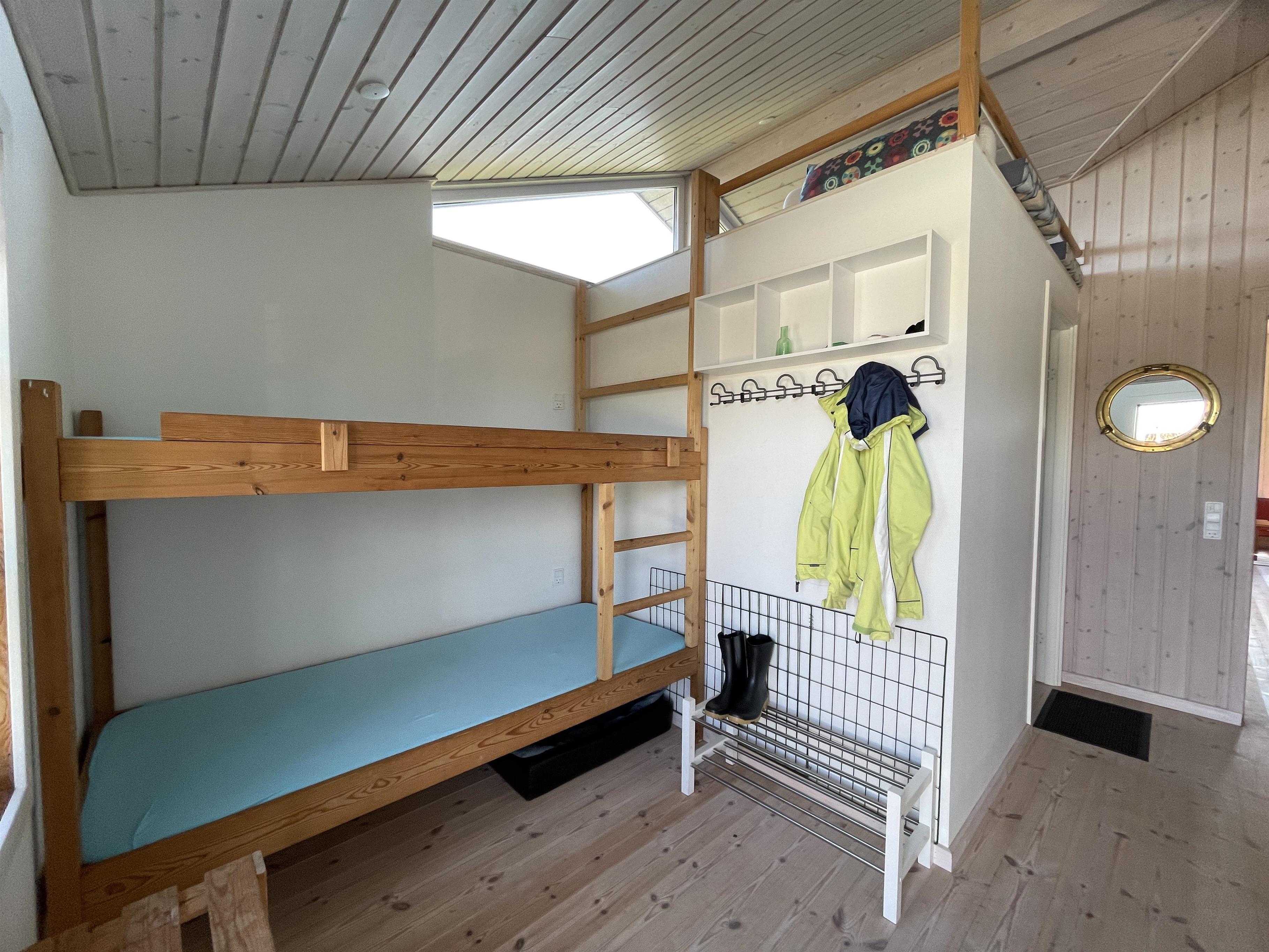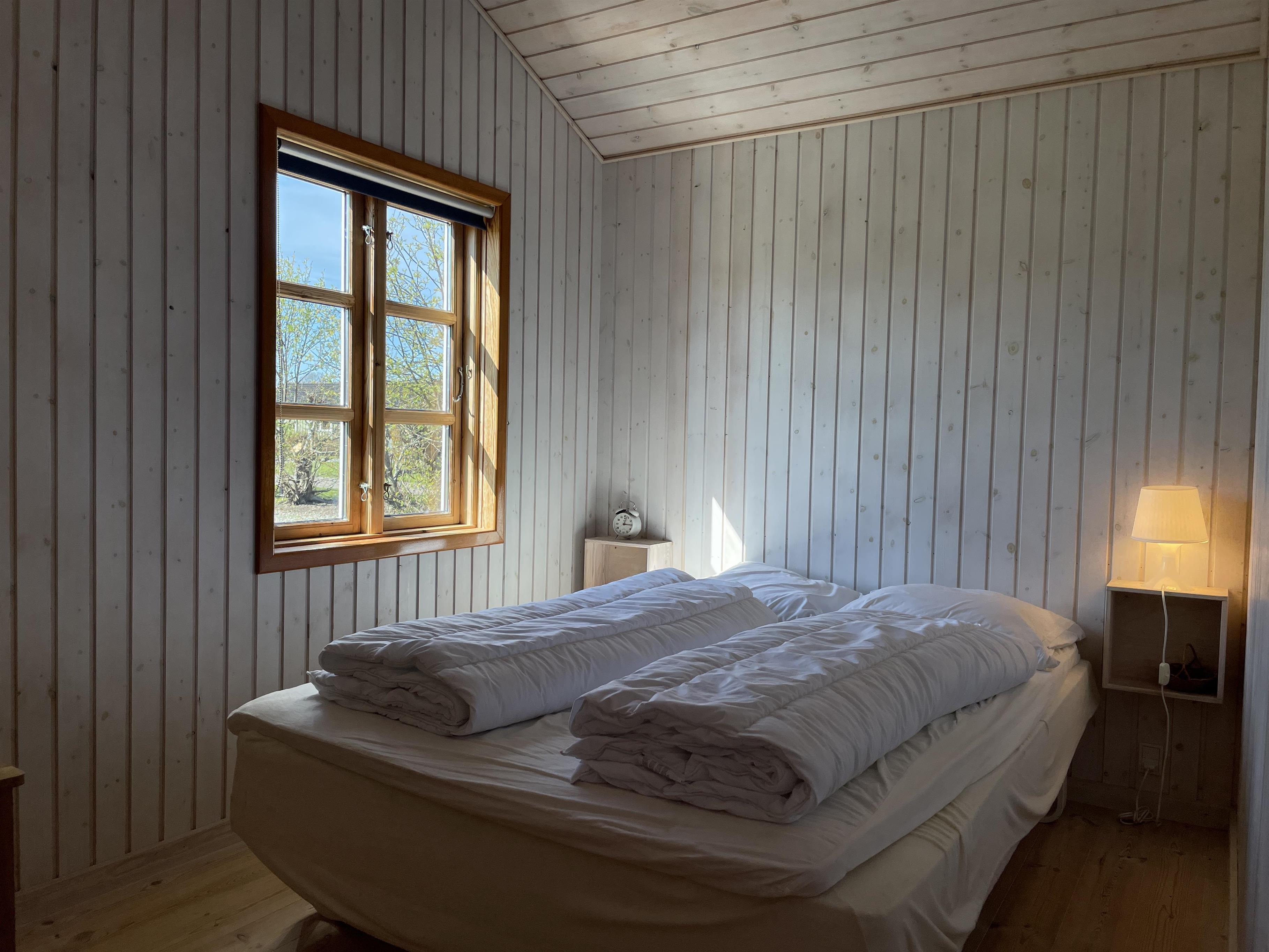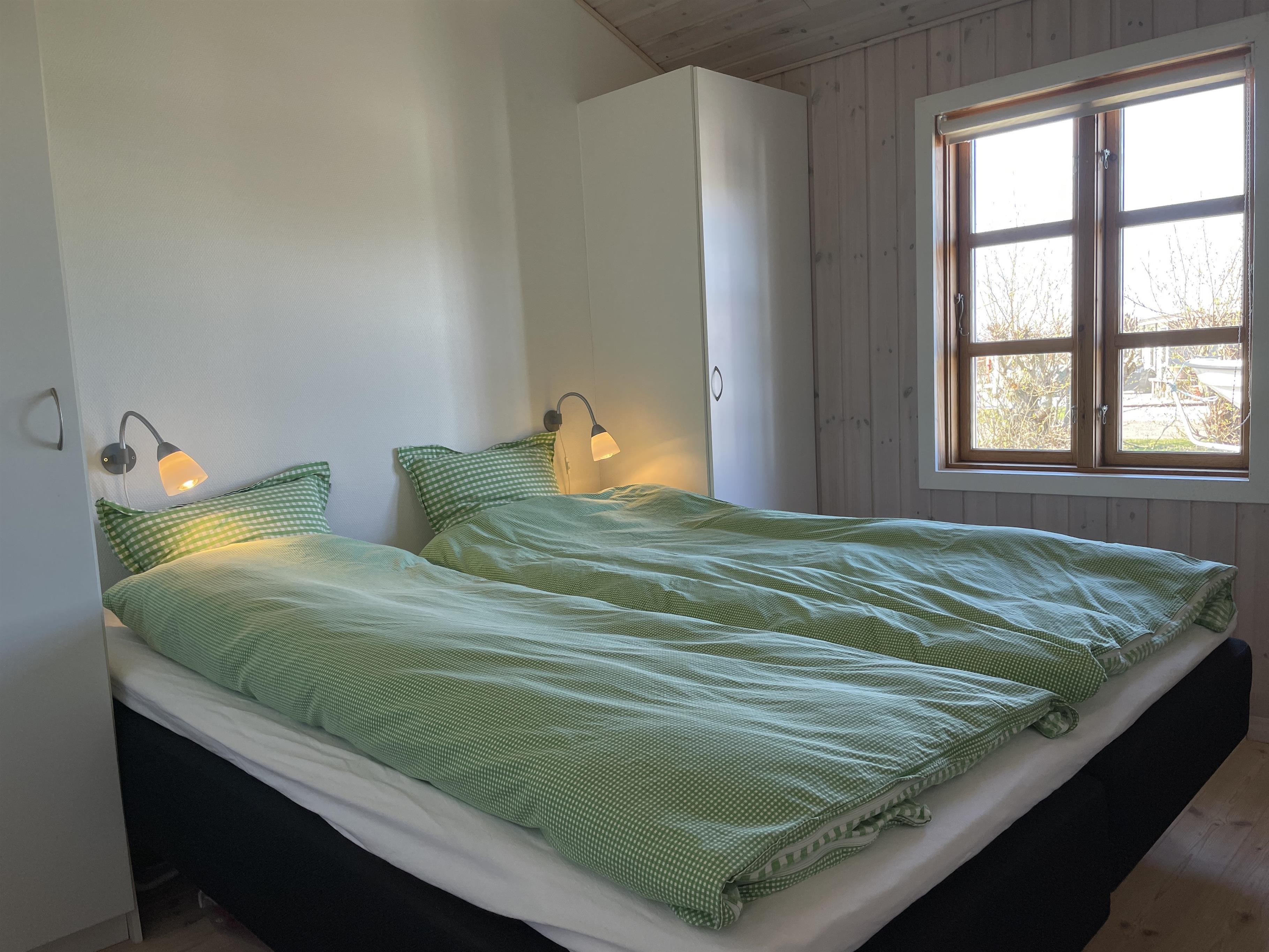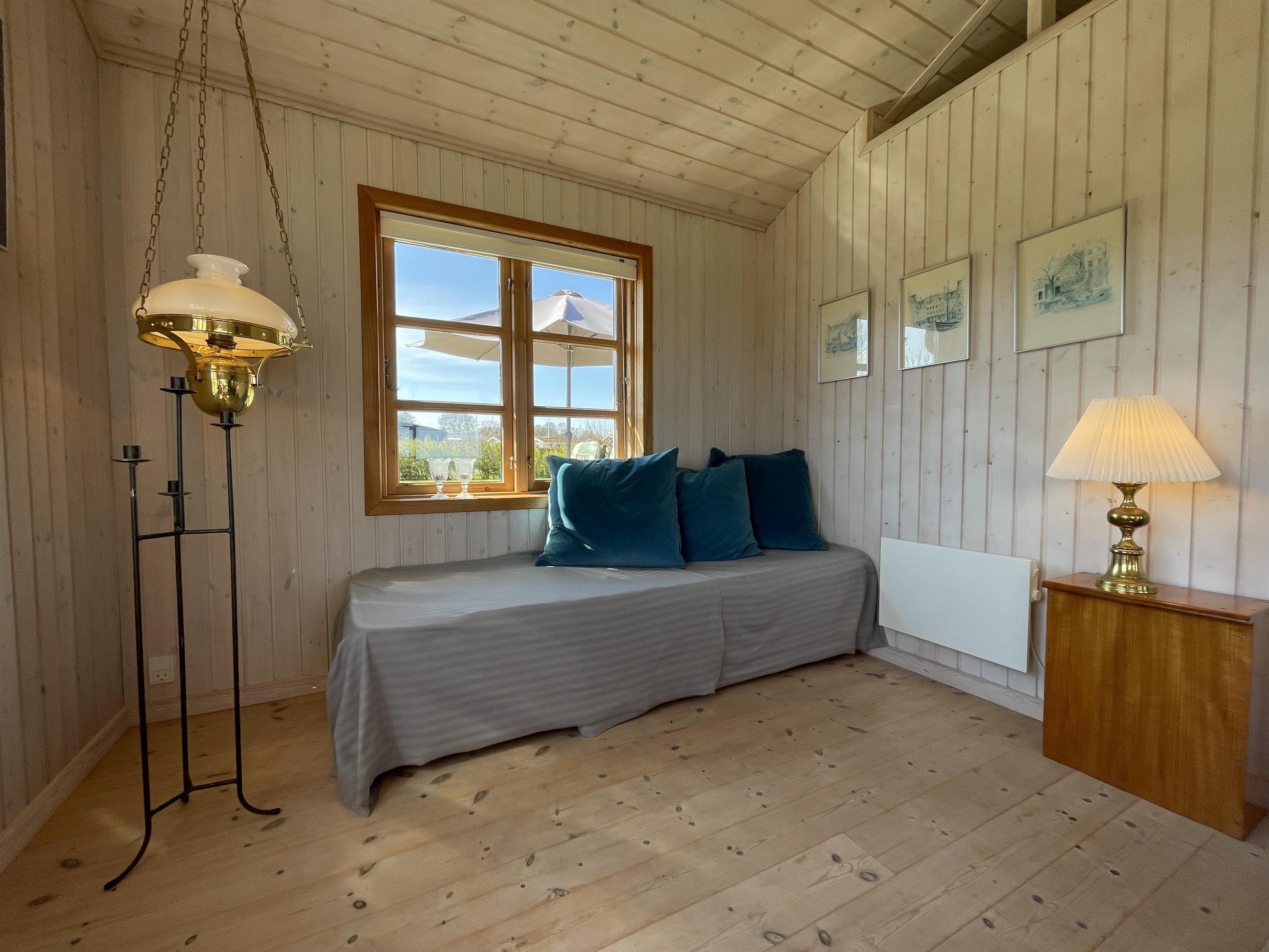 Inde i huset er der plads til 6 personer fordelt på tre hyggelige soveværelser, samt en køjeseng ved indgangen. Når du træder ind, mødes du af et rummeligt køkkenalrum, hvor loftet strækker sig højt op. Her kan du forberede lækre måltider til dine nærmeste, mens brændeovnen spreder varme og hygge efter en frisk gåtur langs stranden på en kølig efterårsdag. I forlængelse af køkkenet åbner et stort sofaområde sig op, indrettet med en charmerende 3-personers sofa, to bløde lænestole og et TV, der indbyder til afslapning og hygge.