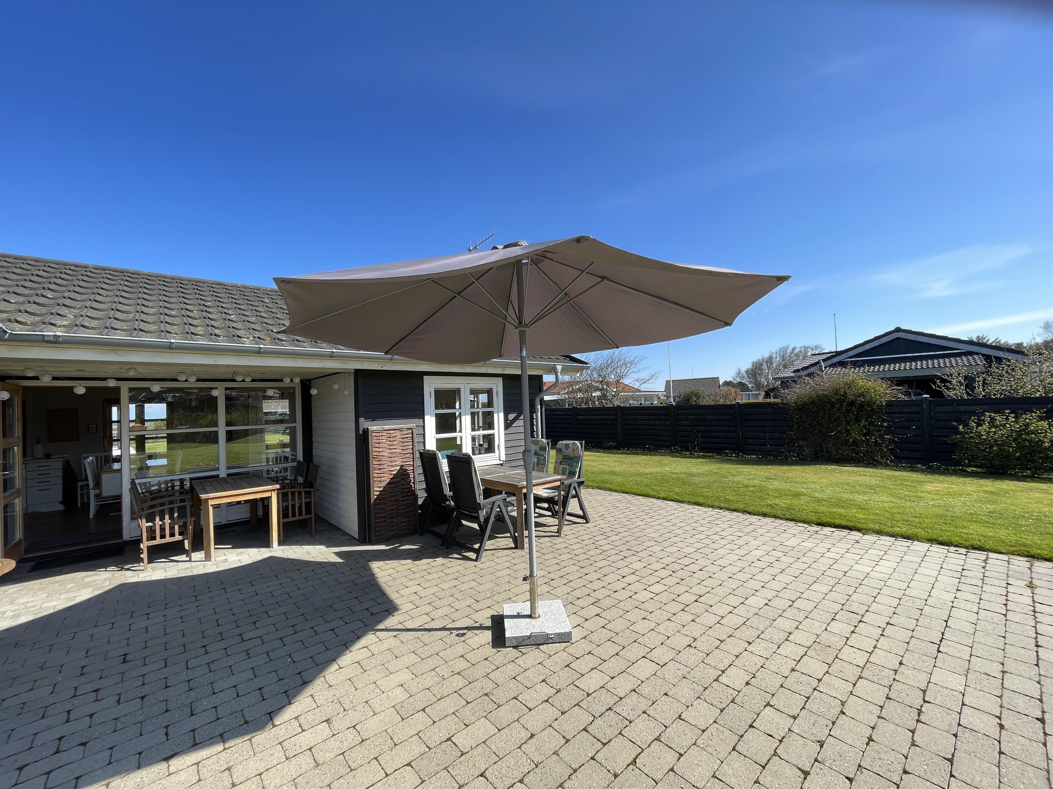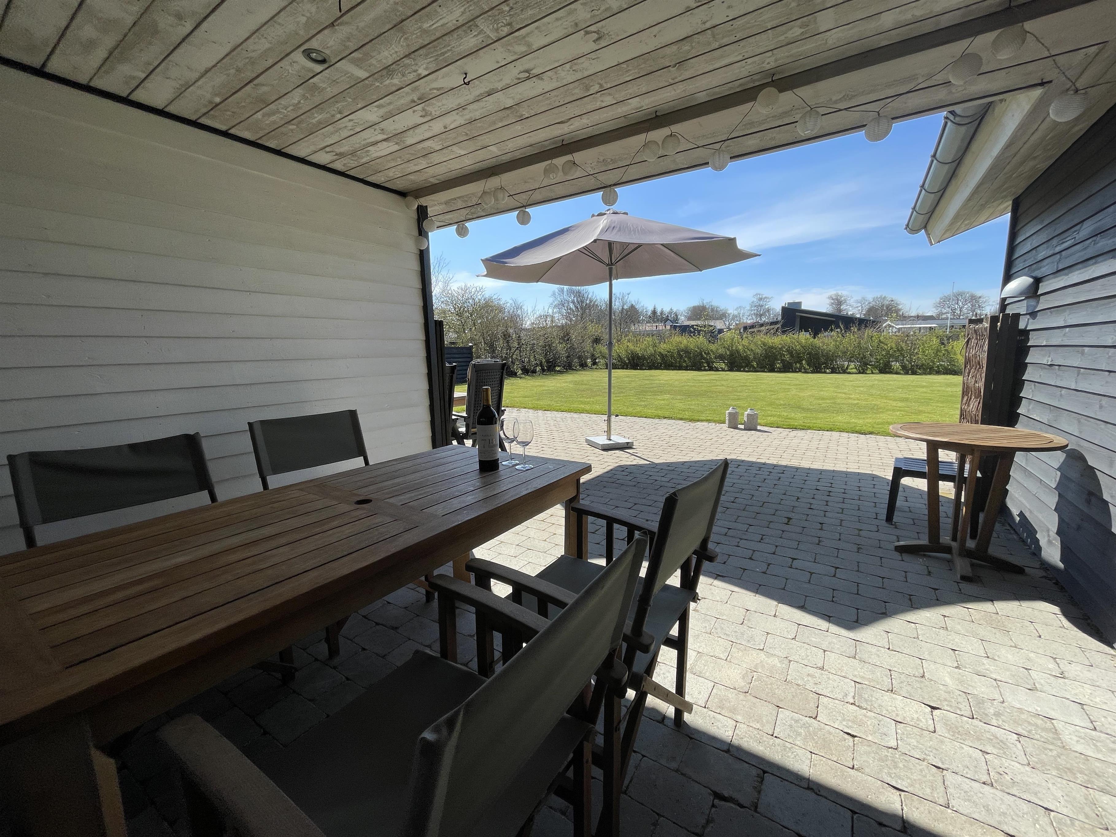 Udenfor byder både vest- og østvendte terrasser på muligheden for at nyde solens stråler, mens en overdækket terrasse giver læ og komfort, hvor et hyggeligt havebord og stole inviterer til lange snakke og måltider under åben himmel. Sommerhusområdet Haulund er et yndet sted, især blandt familier med børn, da den trygge strand er lige i nærheden, perfekt til leg og sjov i vandkanten.