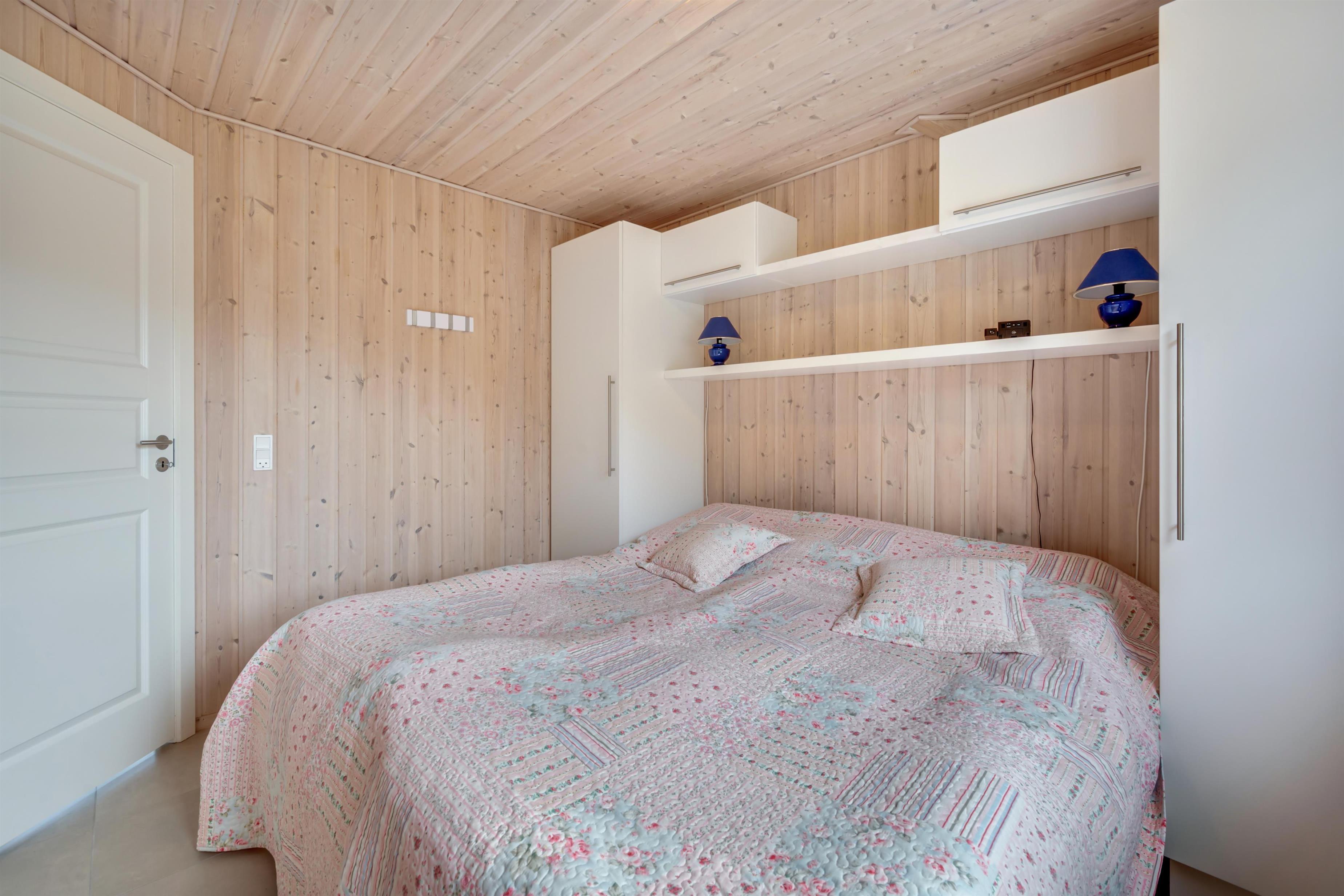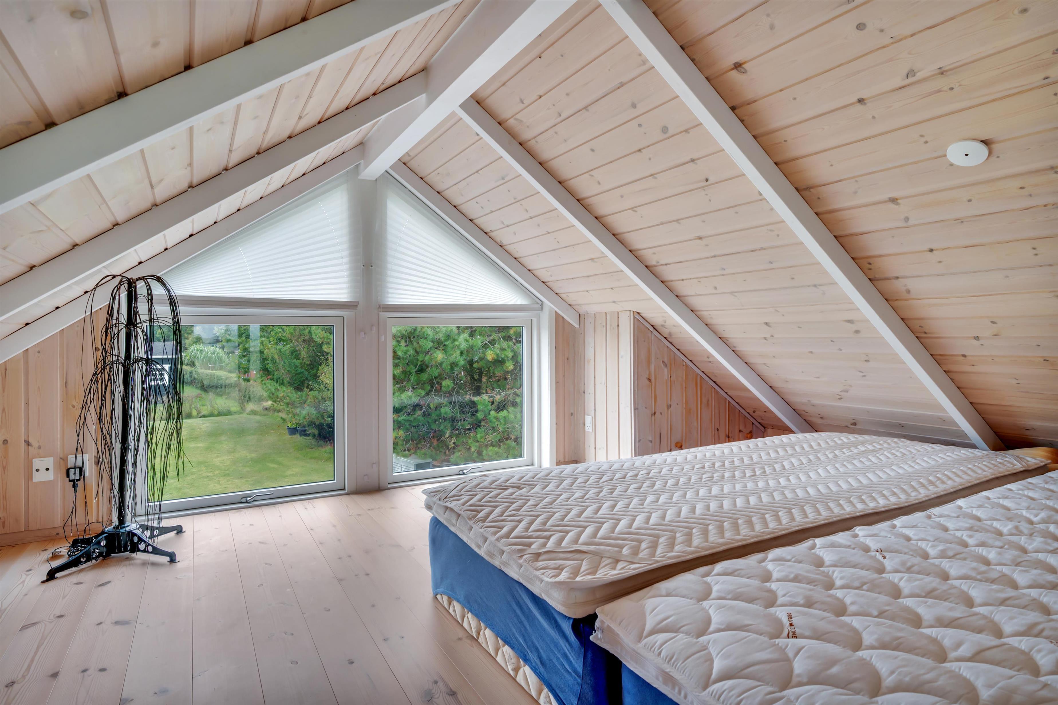 Fra alrummet er der adgang til et dejligt badeværelse samt to soveværelser. Det ene soveværelse rummer en dobbeltseng og det anden en ¾ seng samt udgang til terrassen.