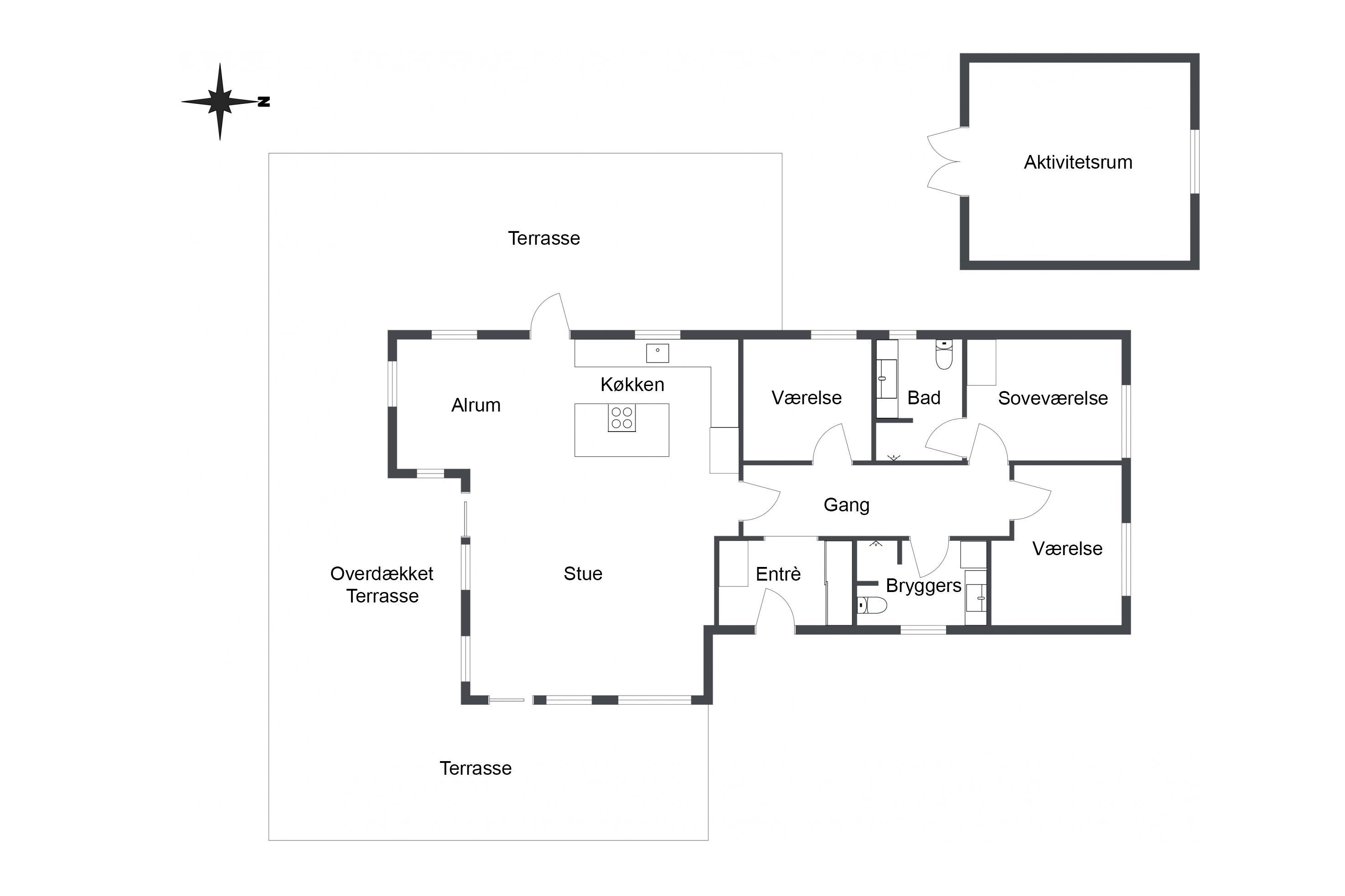Huset indbyder til samvær ude som inde, fra det store køkkenalrum er der direkte adgang til den store træterrasse hvor solen kan nydes. Derudover er der et aktivitetsrum med bordtennisbord.