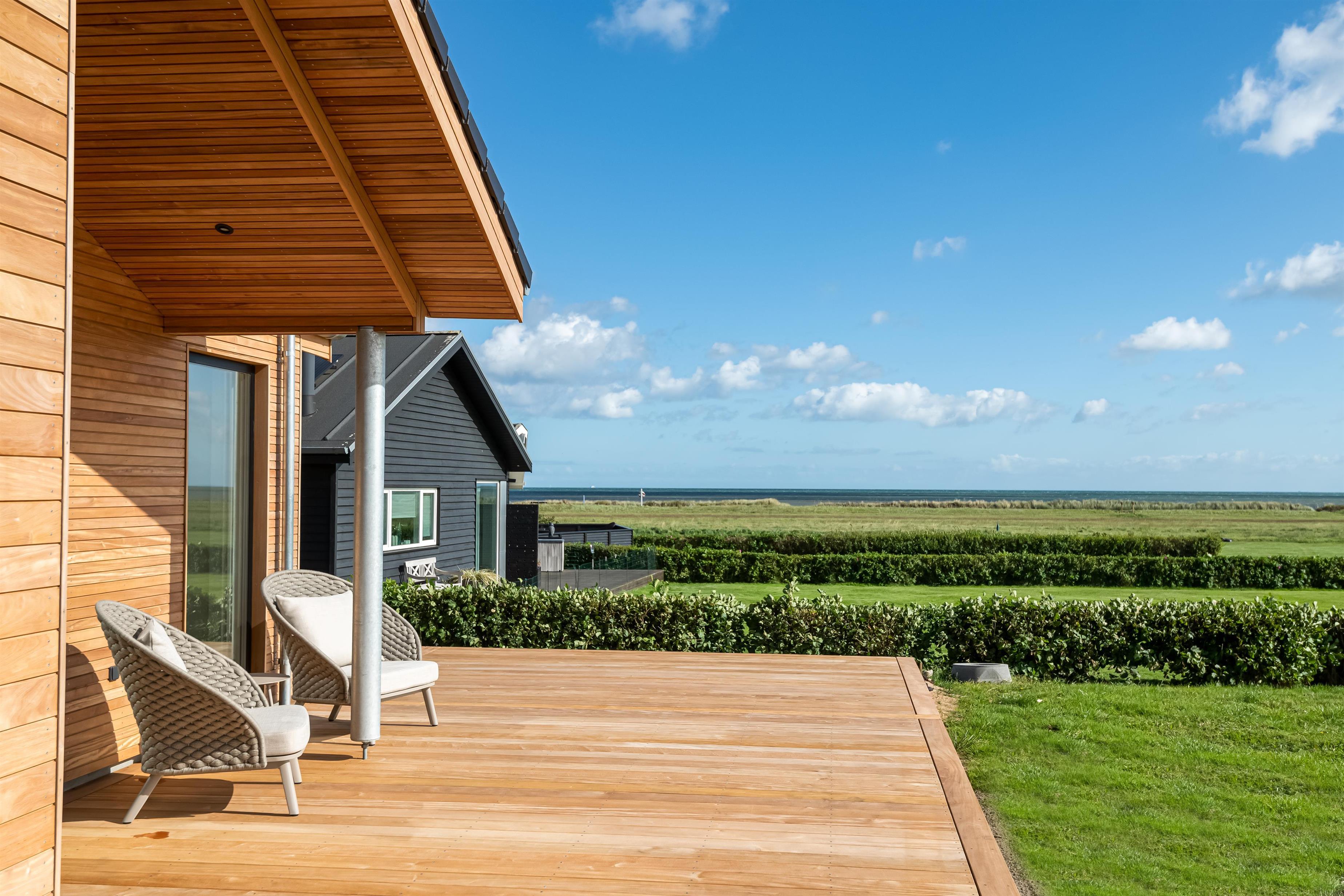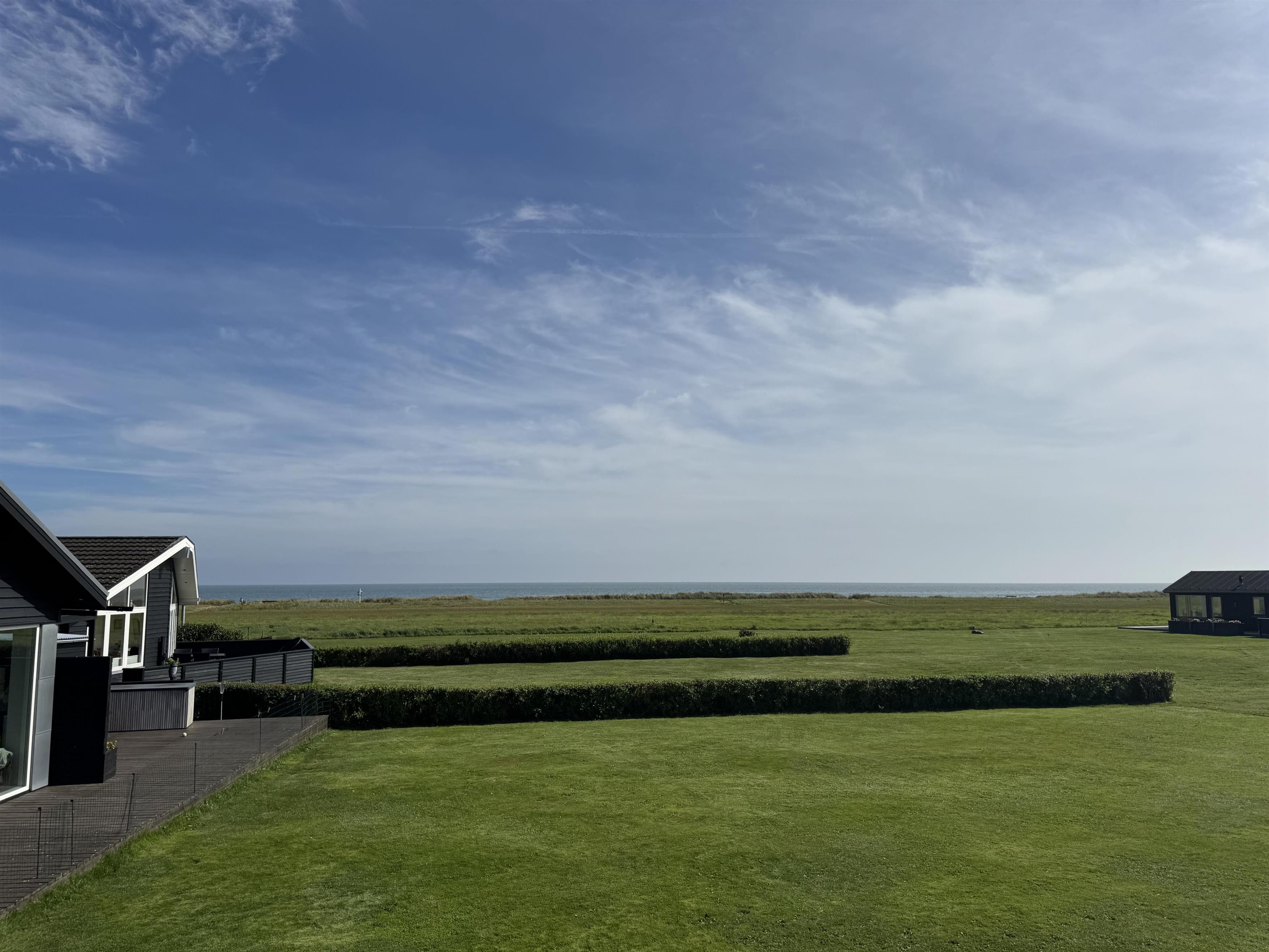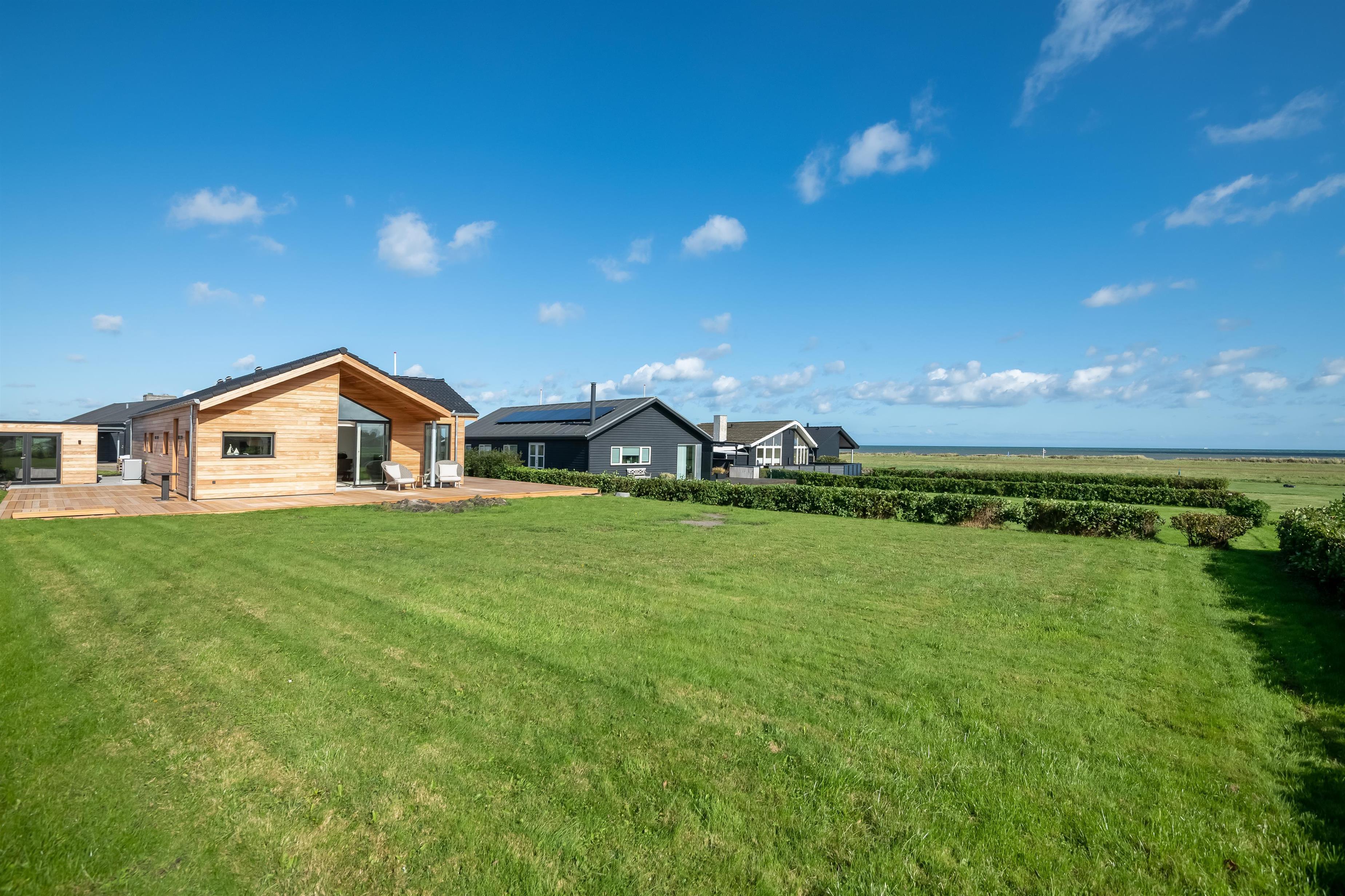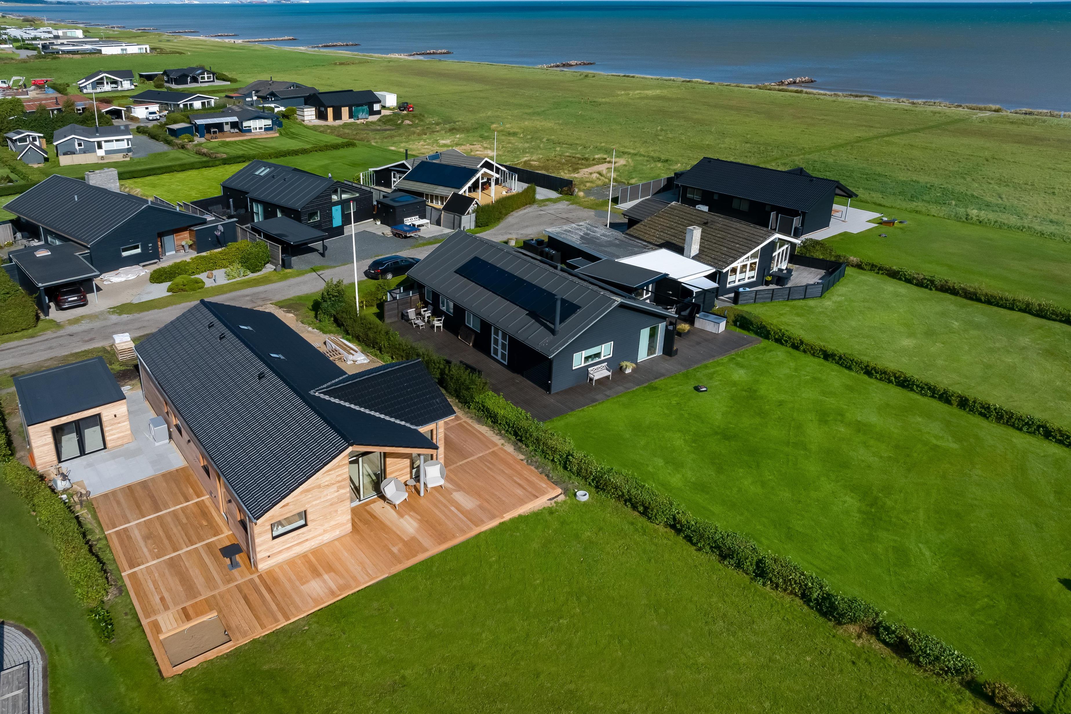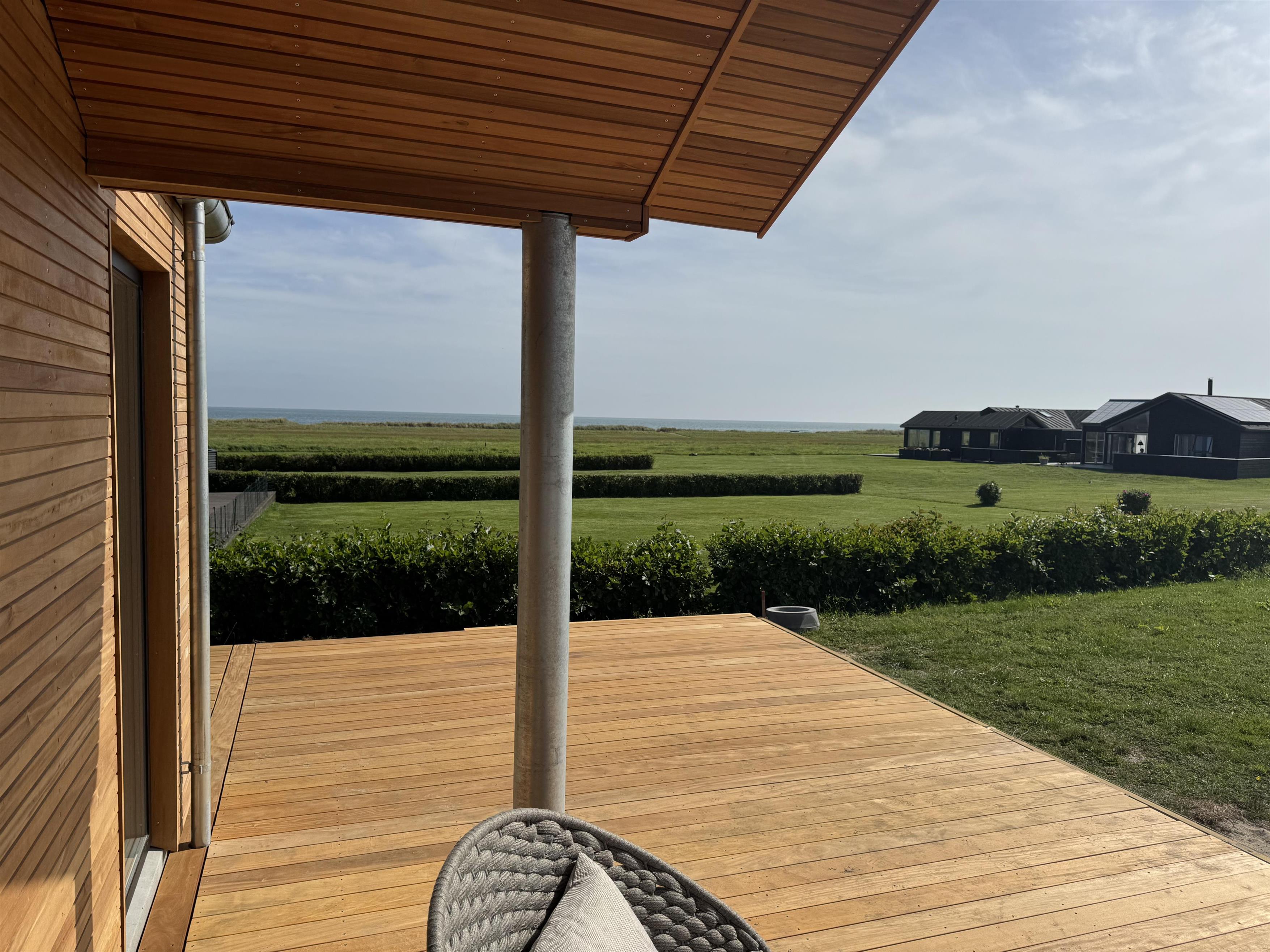 Dette dejlige træsommerhus er opført i 2025 og indeholder store lyse rum og udkig til havet, der blot ligger 150 meter væk.
