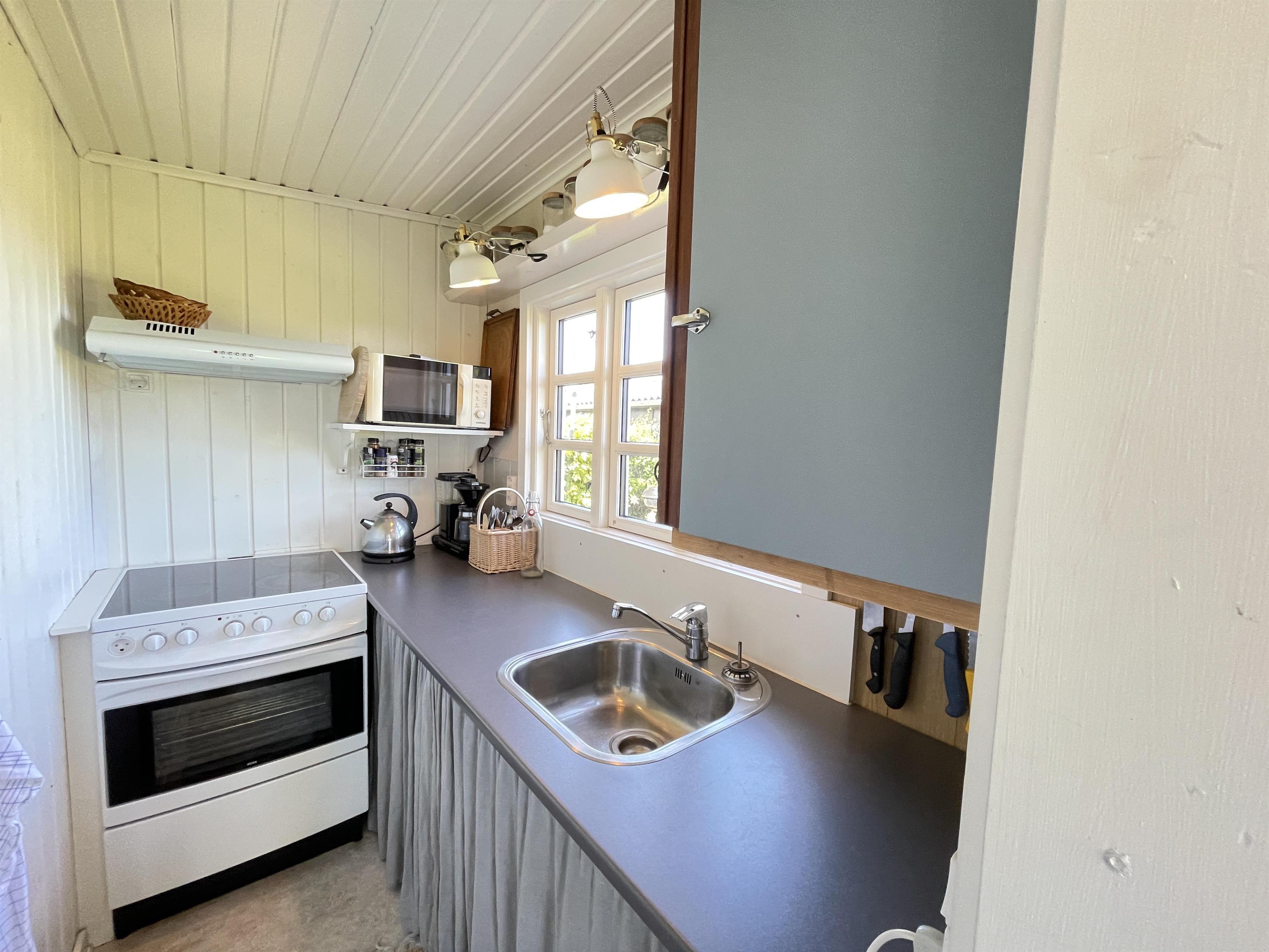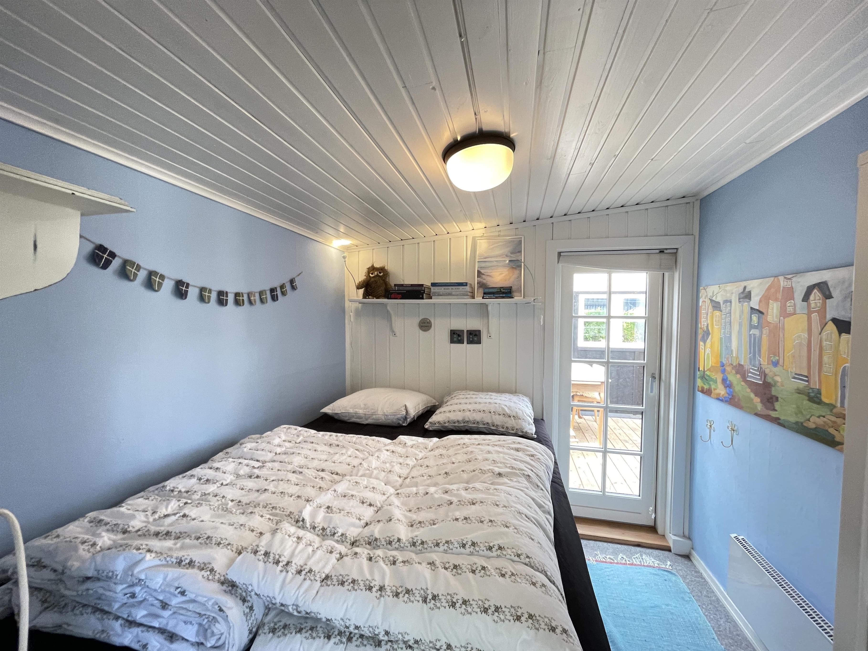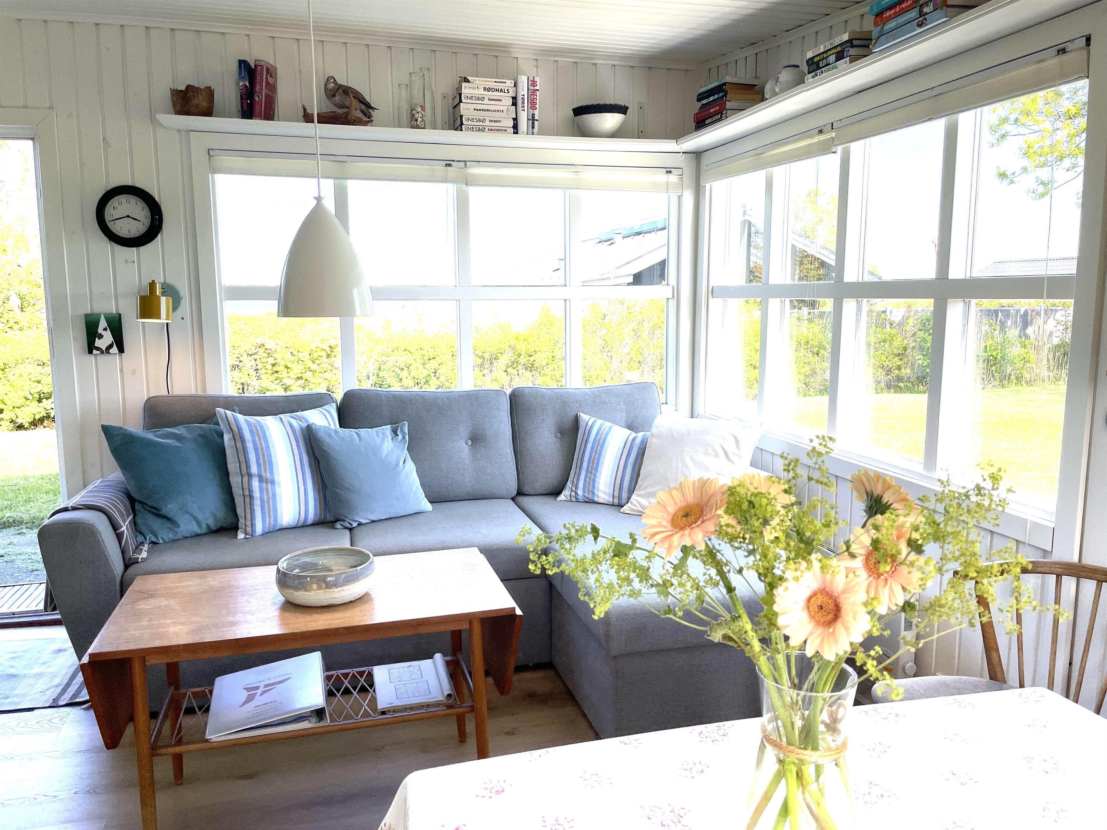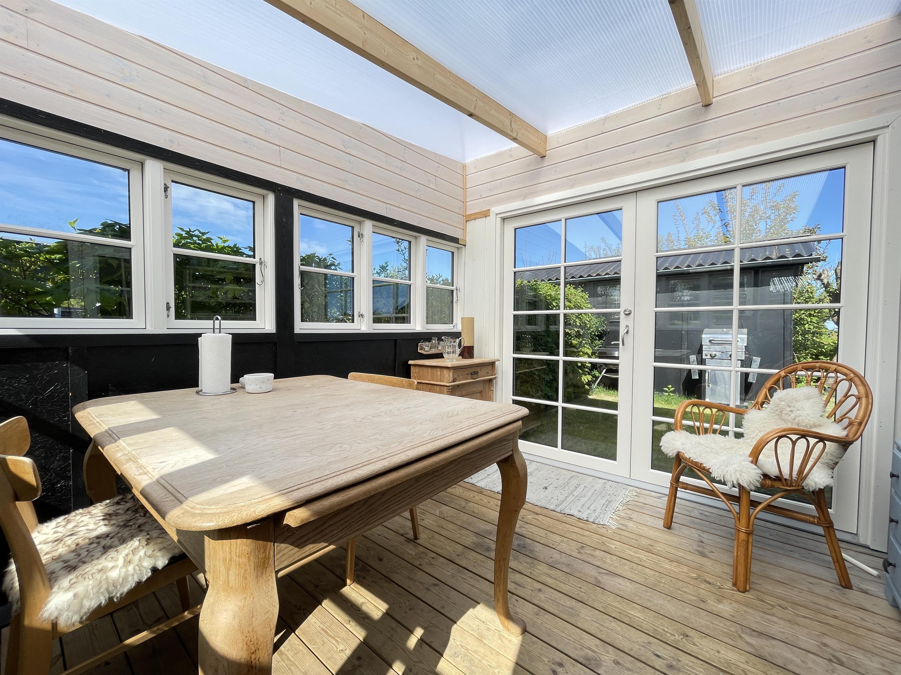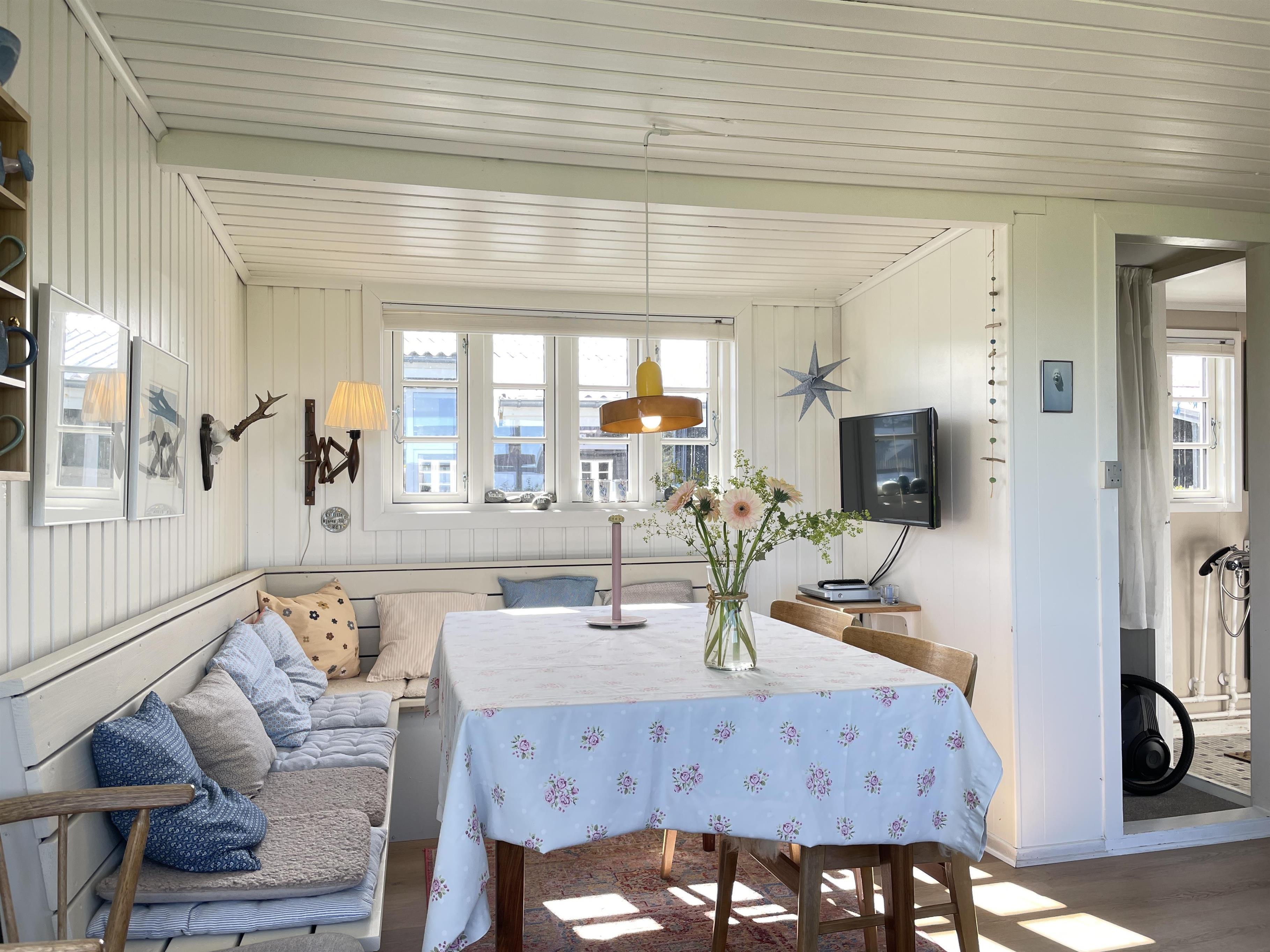 Husets opholdsrum er flot renoveret med nyt gulv og nye møbler. Her er en utrolig charme og behagelighed med spisekrog og dejlig sofa i vinduespartiet. Her fra kan du se ud på Kattegat, der kun ligger 200 meter fra huset og nyde den gode ro som naturen omkring huset giver. I forlængelse af huset er der den skønneste lille udestue. Ferieboligen har et lille soveværelse men med en god dobbeltseng og så er det muligt at slå sovesofaen ud til 2 pladser. Køkkenet er funktionelt og er indrettet med det der skal til for at lave feriens gode måltider, som kan nydes i husets spisekrog, i udestuen eller ude på terrassen.