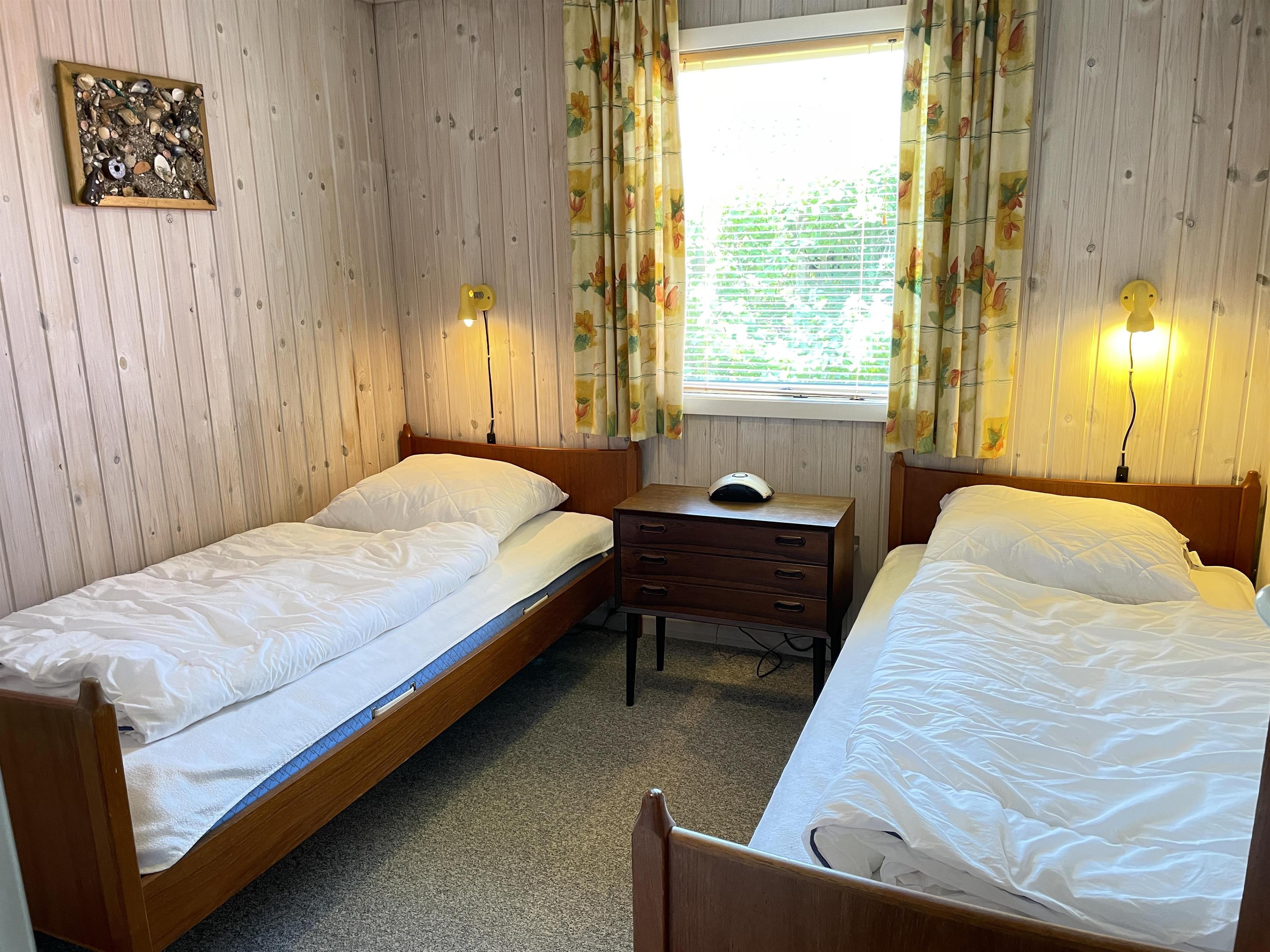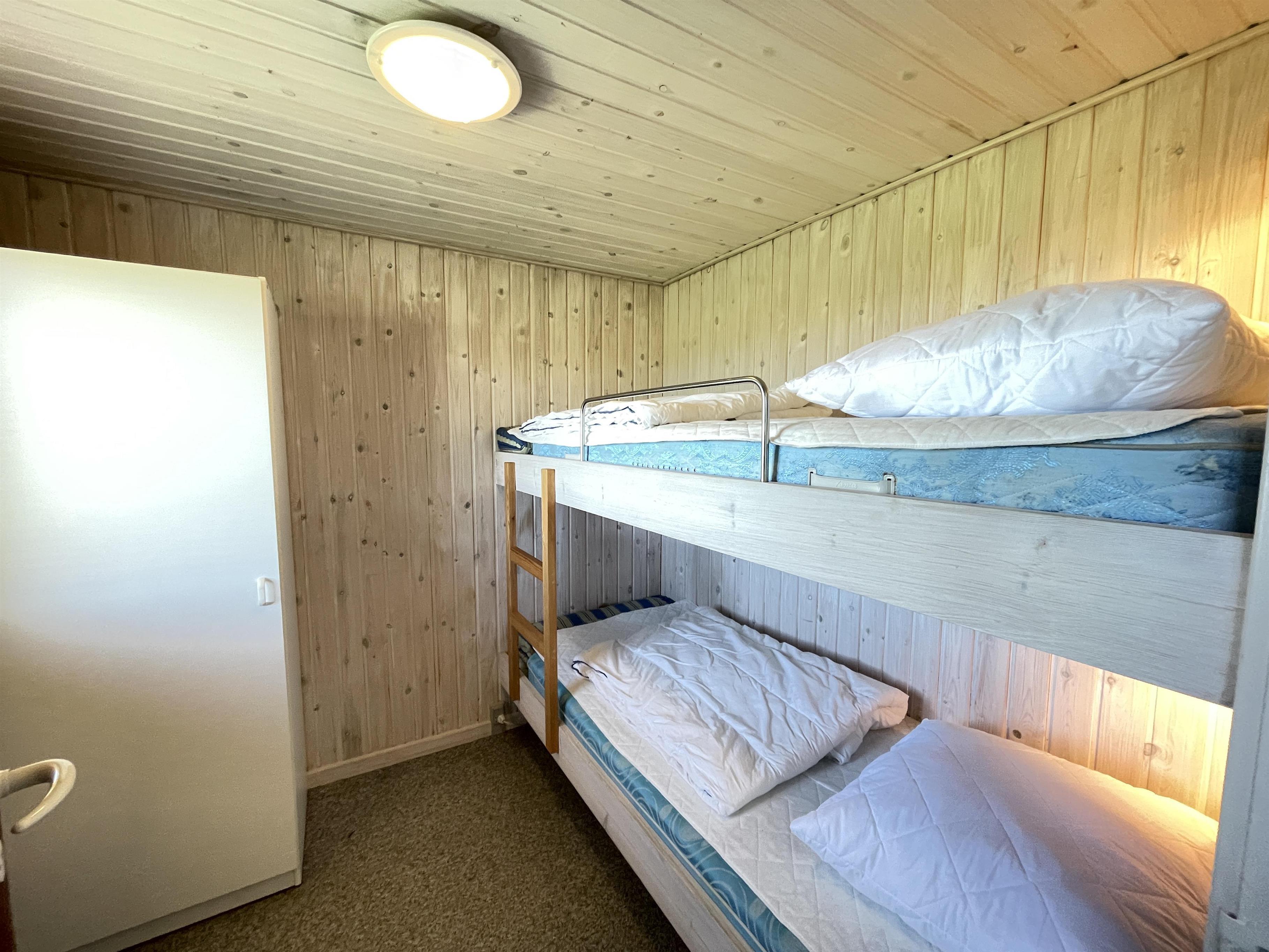 Stuen har en direkte udgang til en hyggelig overdækket terrasse, hvor du kan nyde morgenkaffen, mens du lytter til bølgernes beroligende lyd. Sommerhuset rummer tre velindrettede soveværelser, alle med rigelig skabsplads. Her finder du komfortable sovepladser til op til 6 personer, fordelt på en dobbeltseng, to enkeltsenge og en køjeseng (80 cm x 210 cm).
