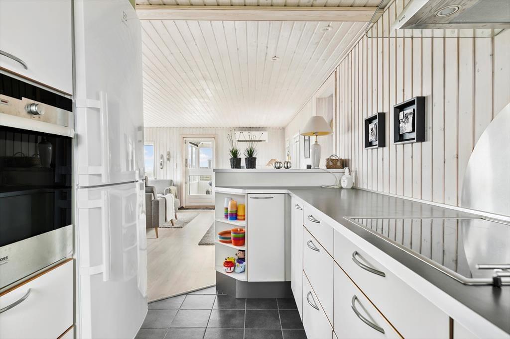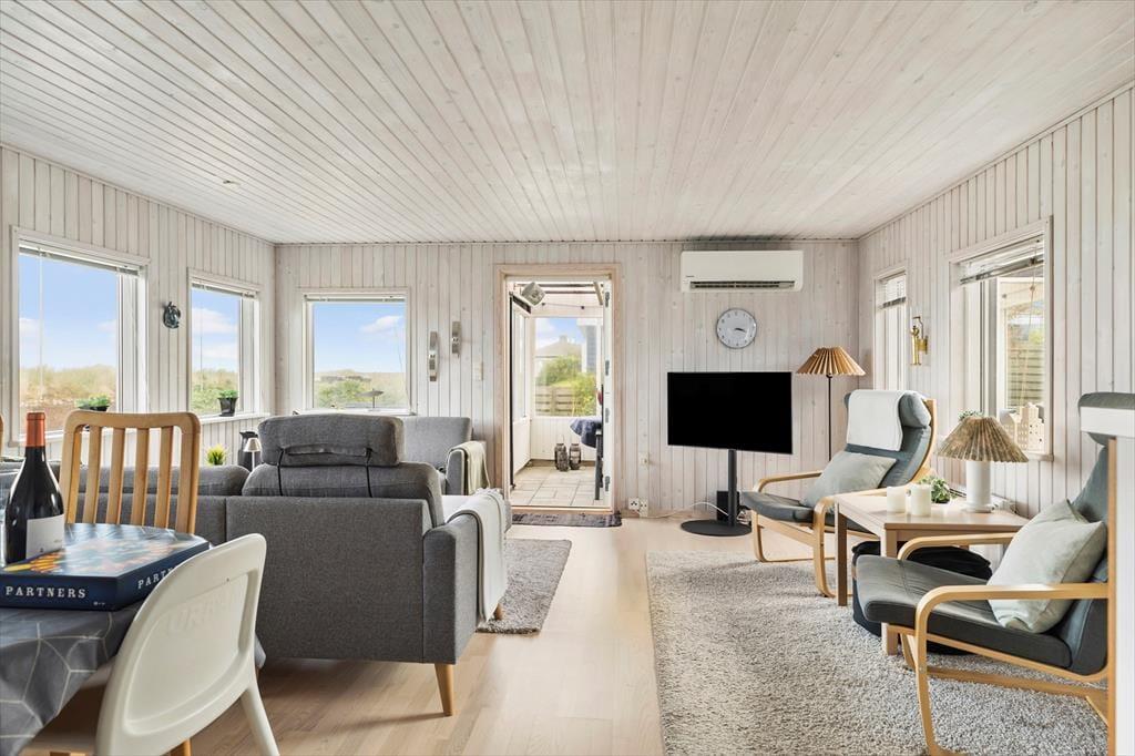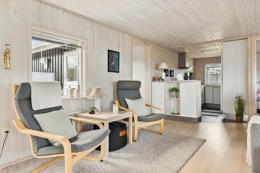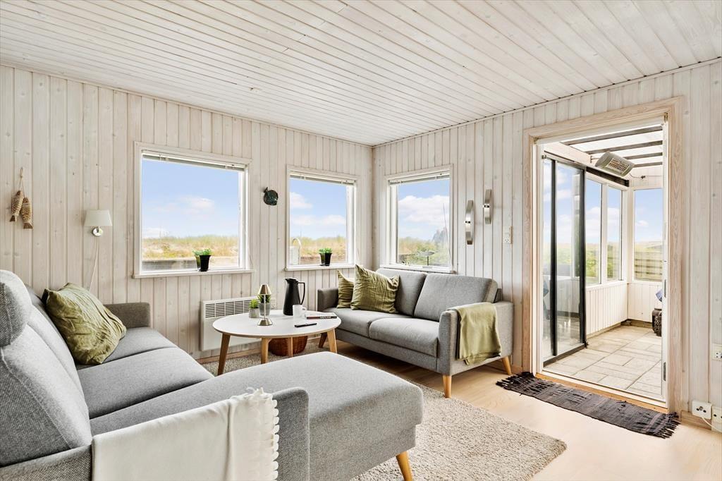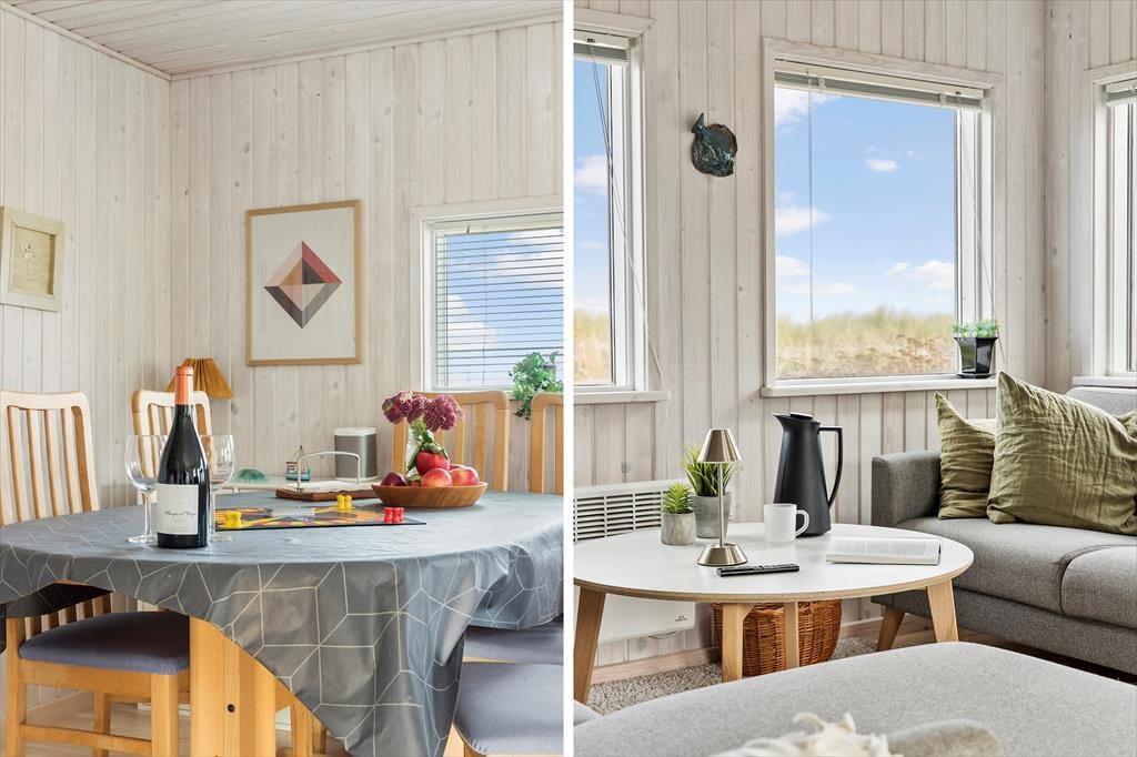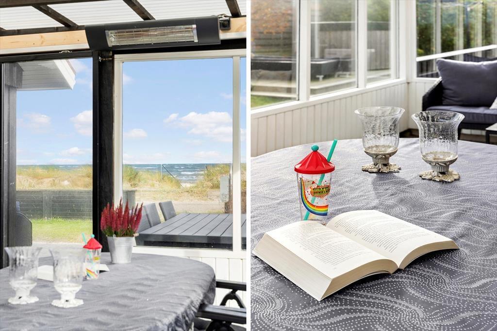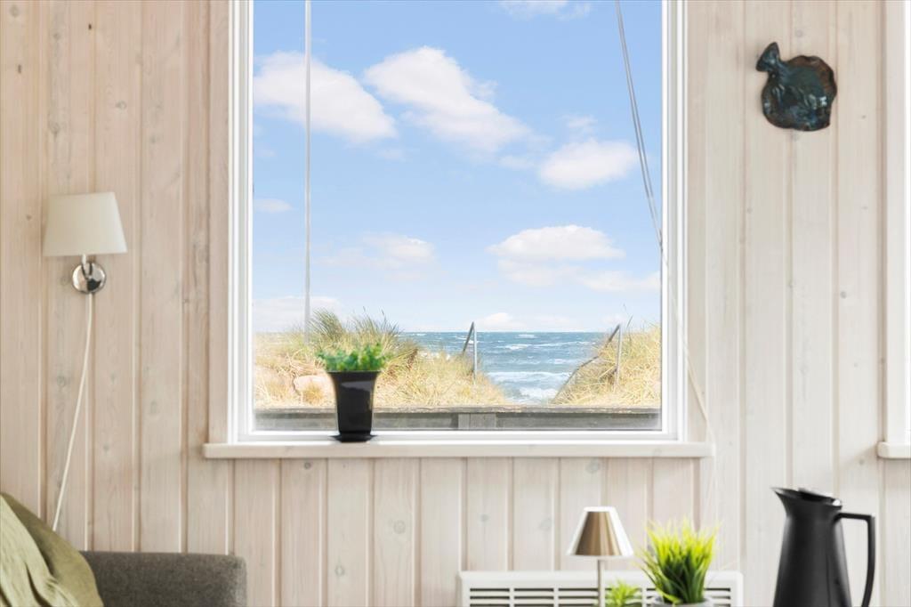 Sommerhuset er lyst og smagfuldt indrettet med øje for både komfort og æstetik. De store vinduespartier lader dagslyset strømme ind og giver en betagende udsigt over havet, så du aldrig er langt fra naturen. Du vil hurtigt føle dig hjemme i den hyggelige stue, der er kombineret med et veludstyret køkken. I udestuen kan du slappe af med en god bog eller blot nyde roen, mens du har udsyn til havets skiftende nuancer. Det indbydende sommerhus rummer gode siddepladser, hvor du kan samles med familie og venner, og om aftenen kan du lade en stille brise fra Kattegat strømme ind, mens I nyder et glas vin eller en film på fladskærms-tv’et.